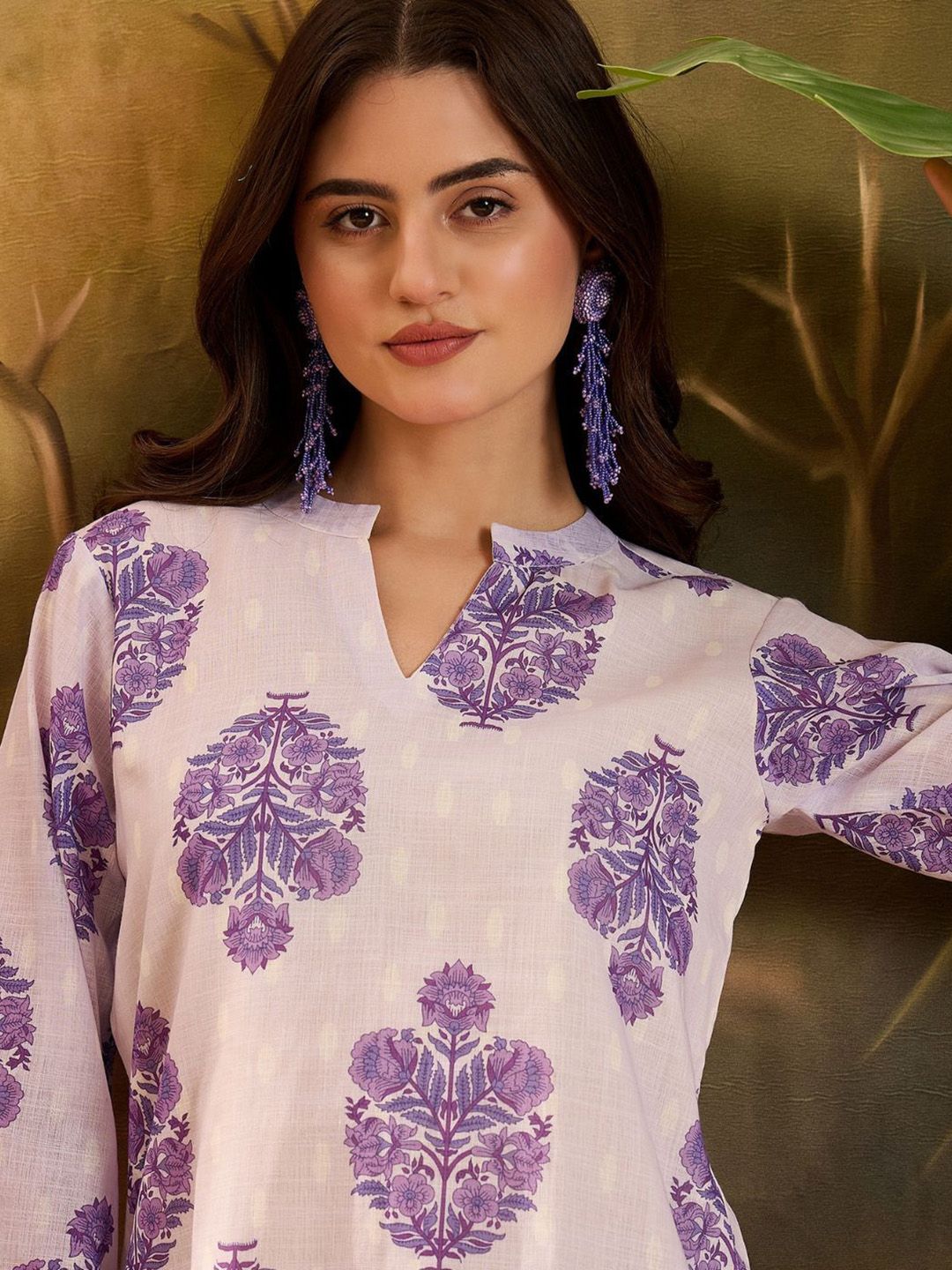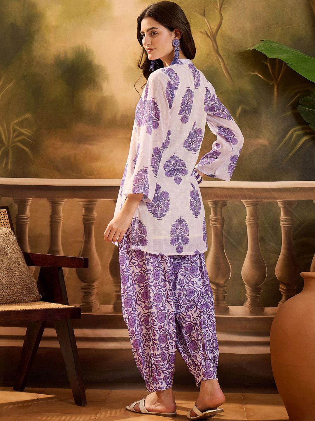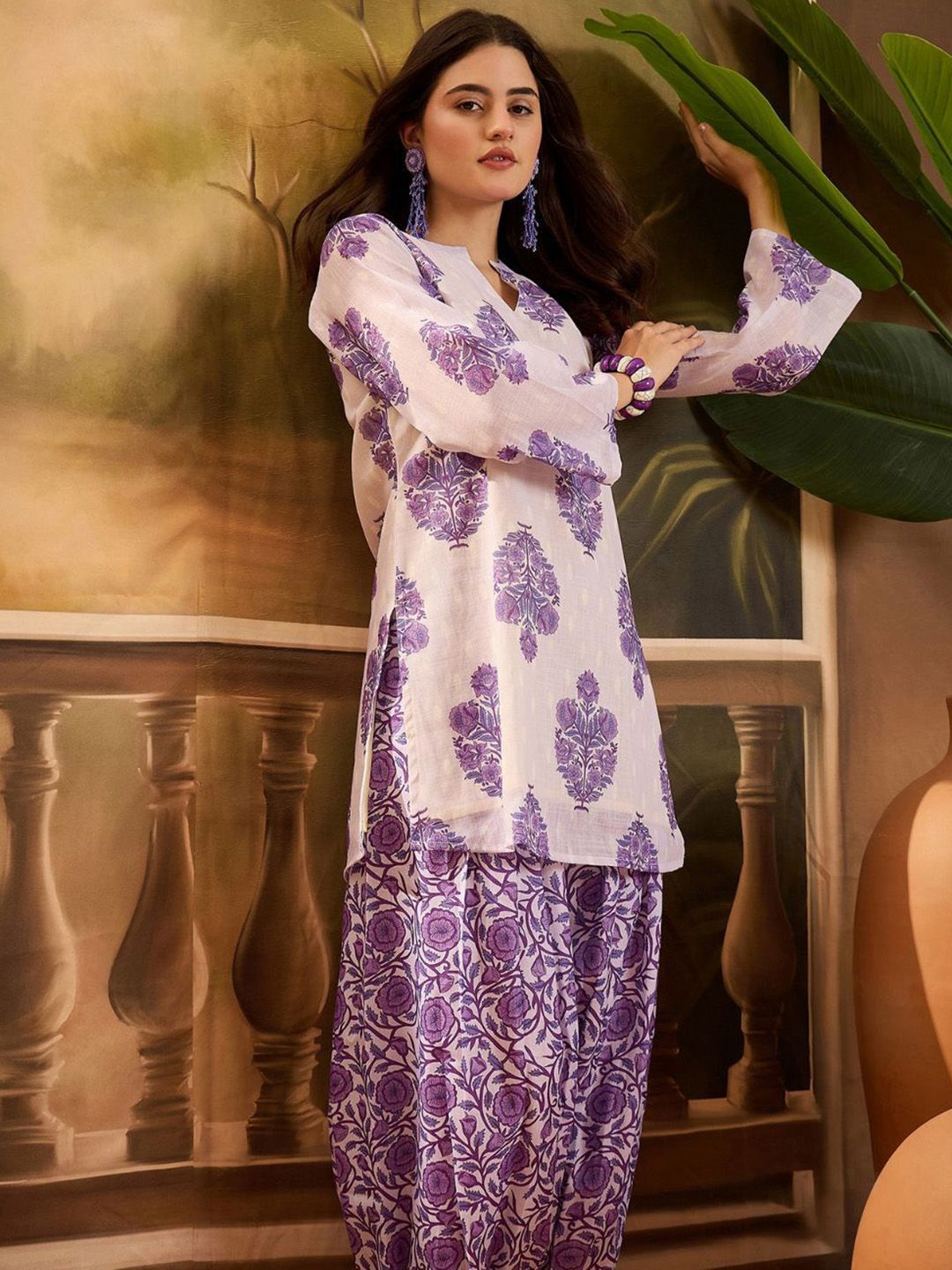 Sangria Women Floral Printed Linen Kurta with Salwar