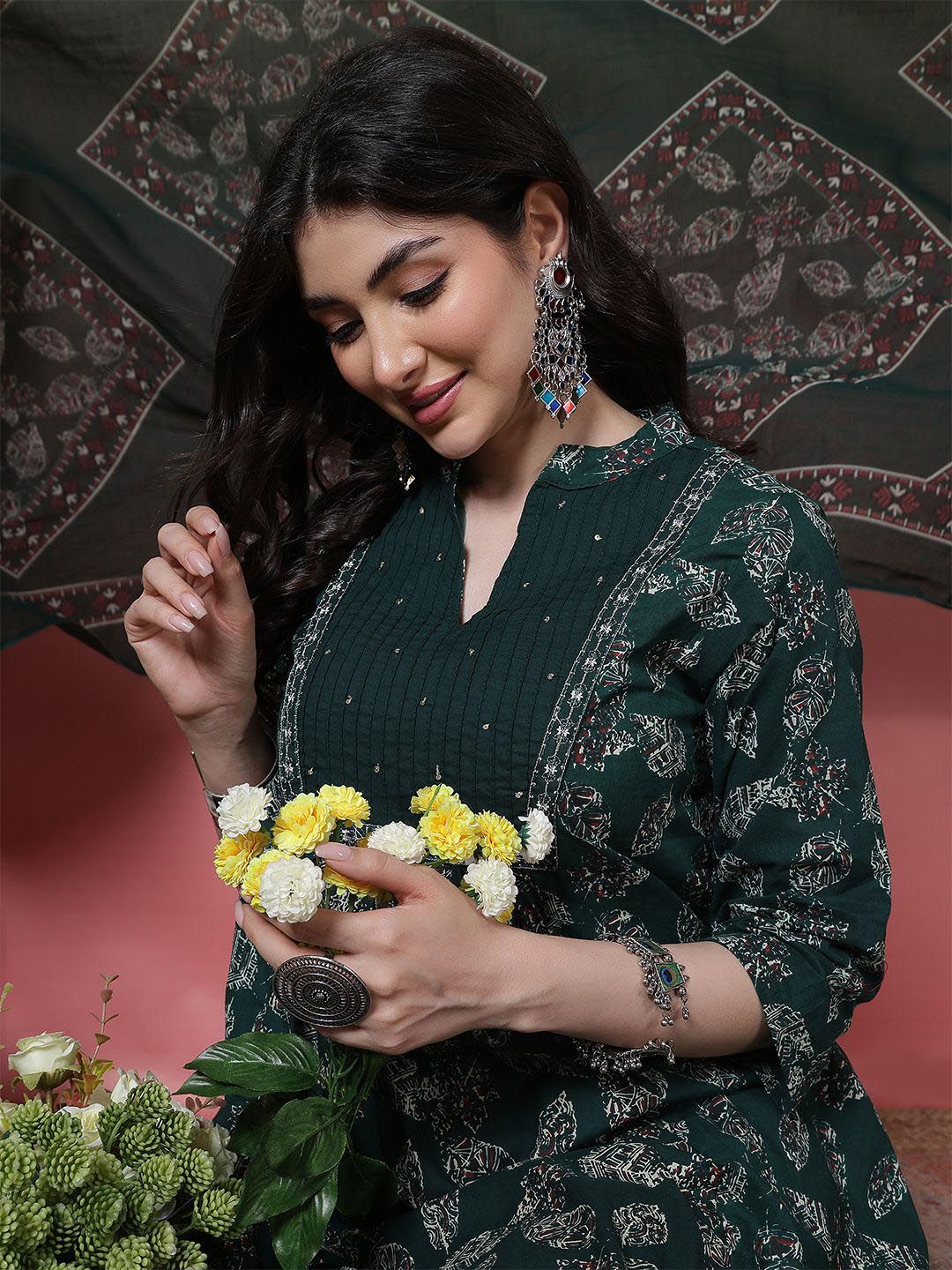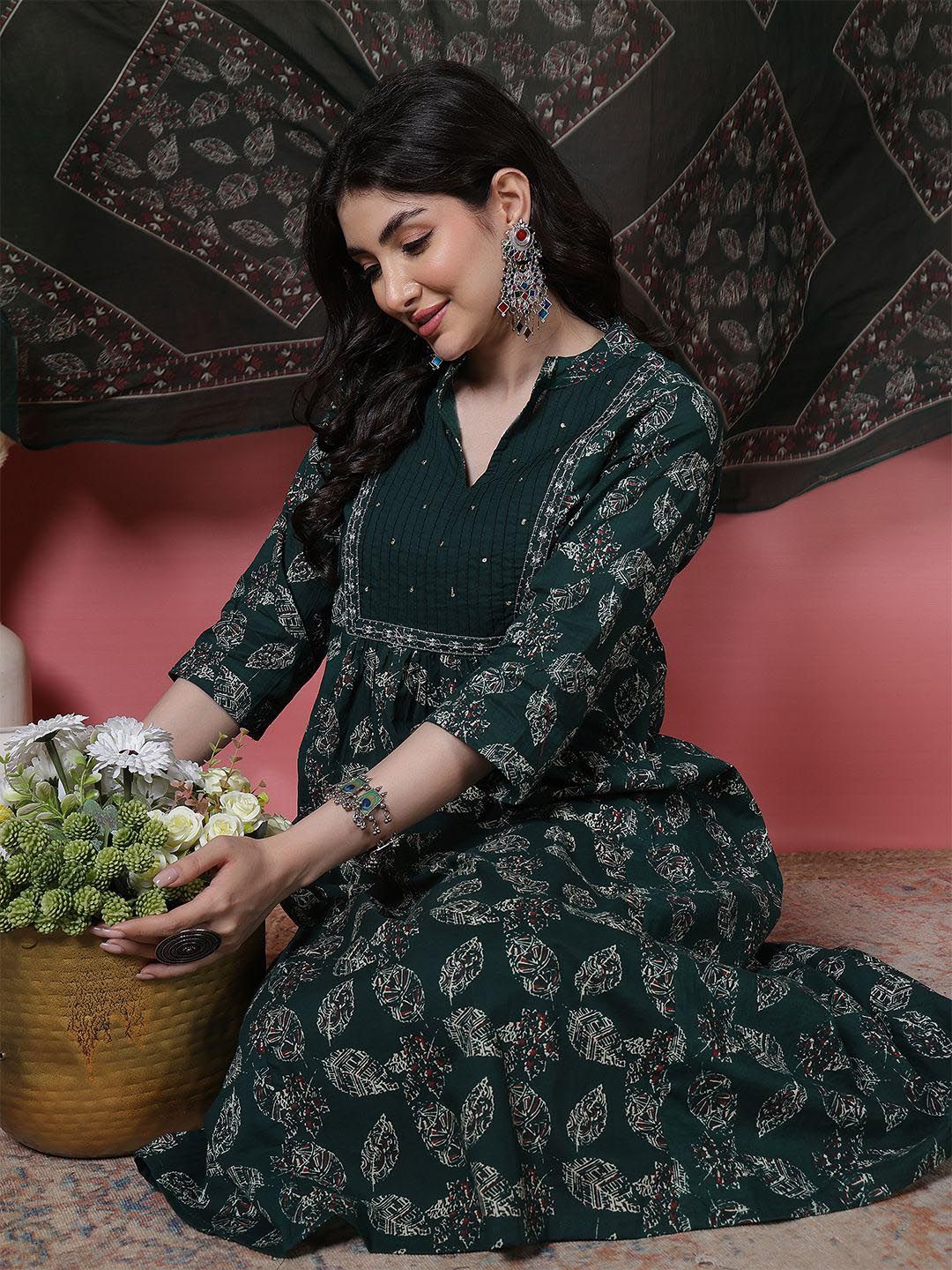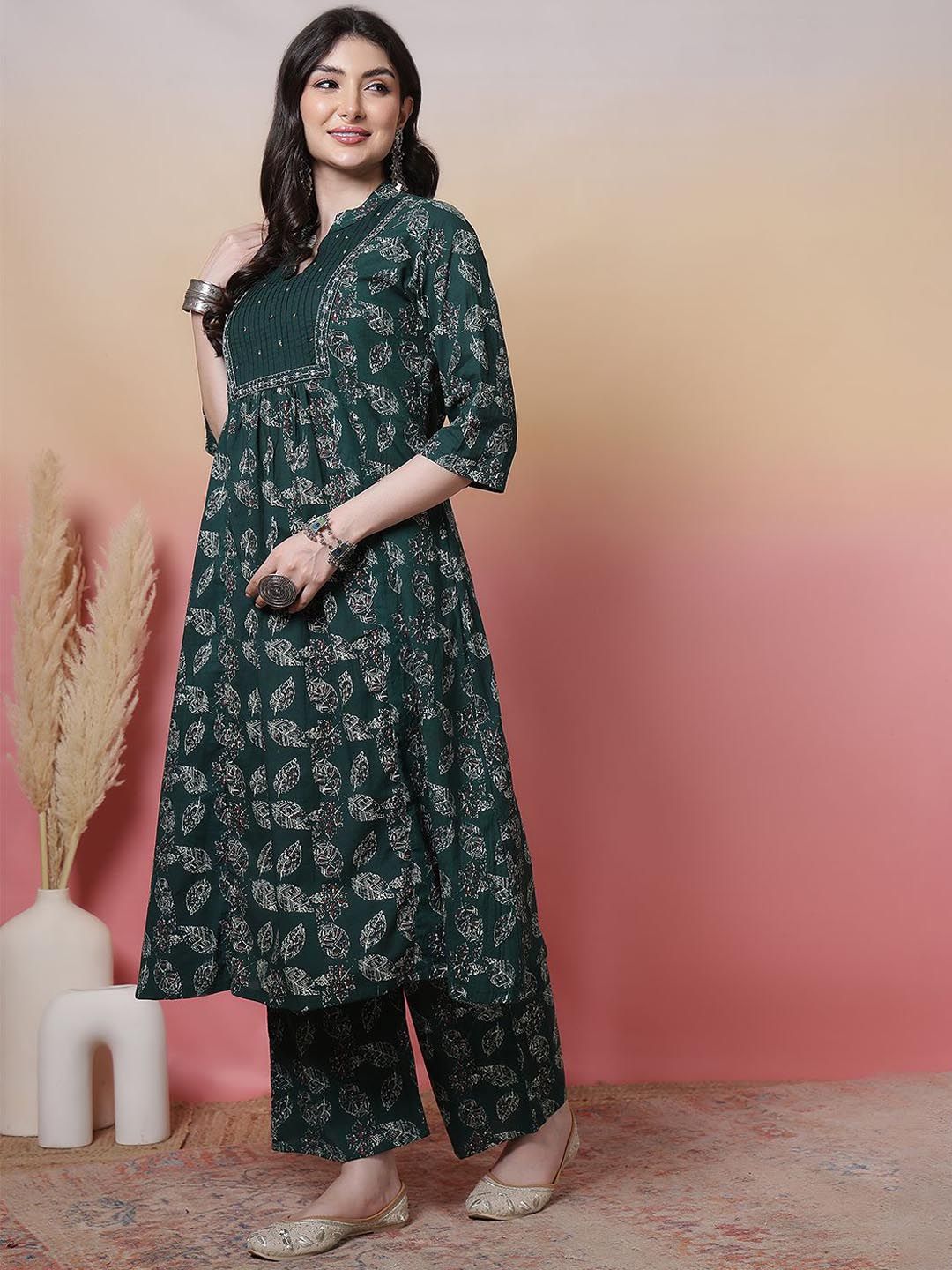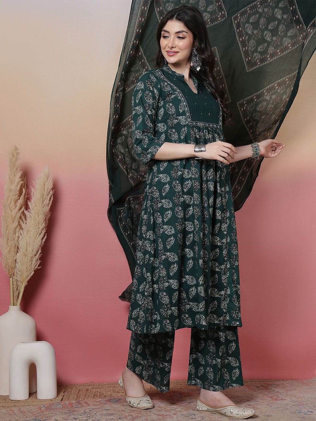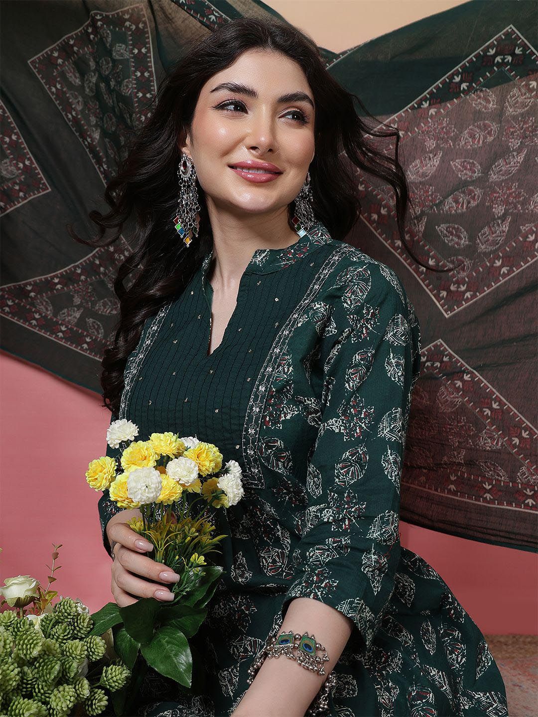 Sangria Women Floral Printed Pure Cotton Anarkali Kurta With Trouser & Dupatta