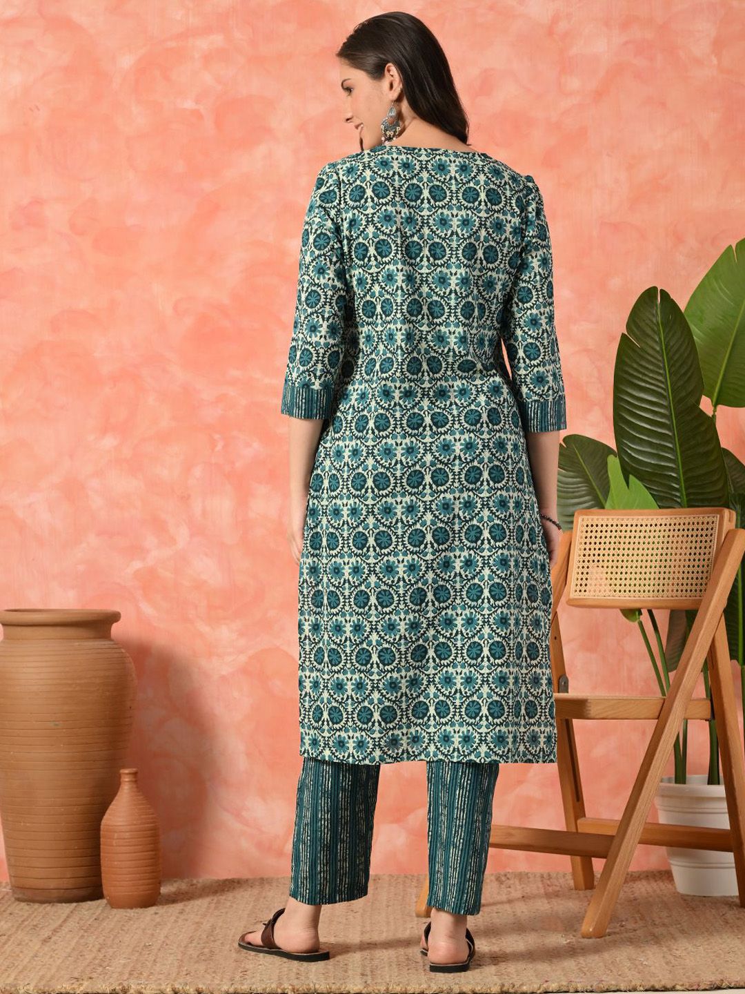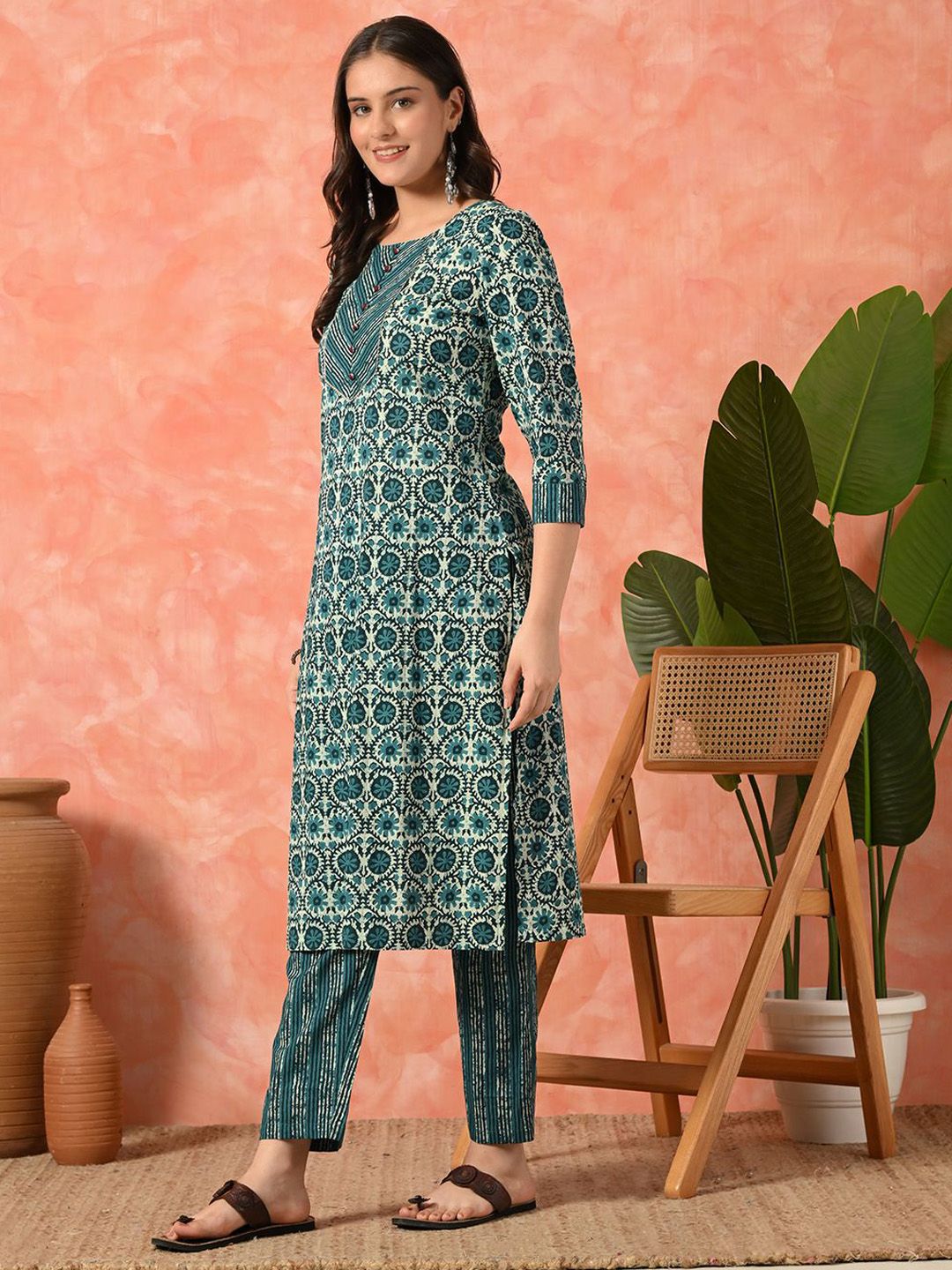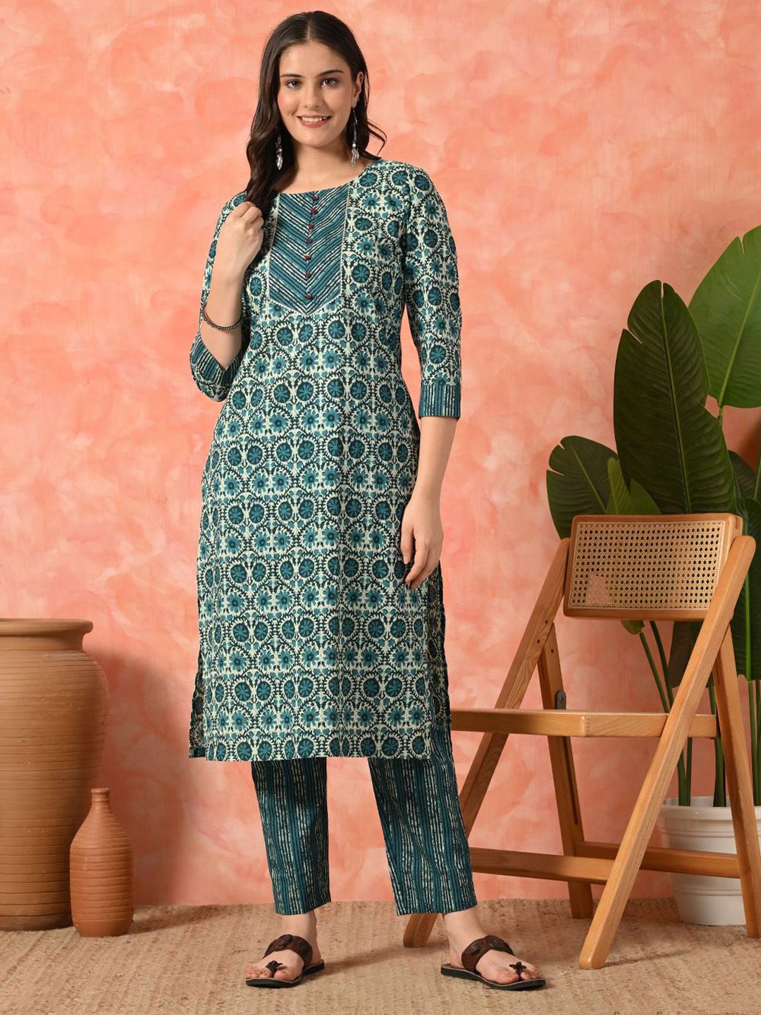 Sangria Women Floral Printed Pure Cotton Kurta With Trousers Set