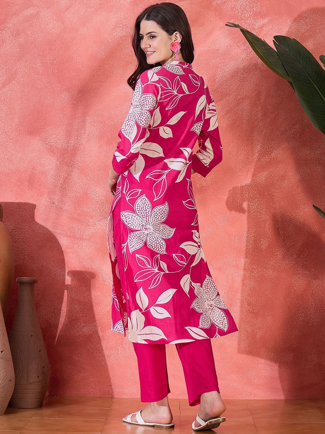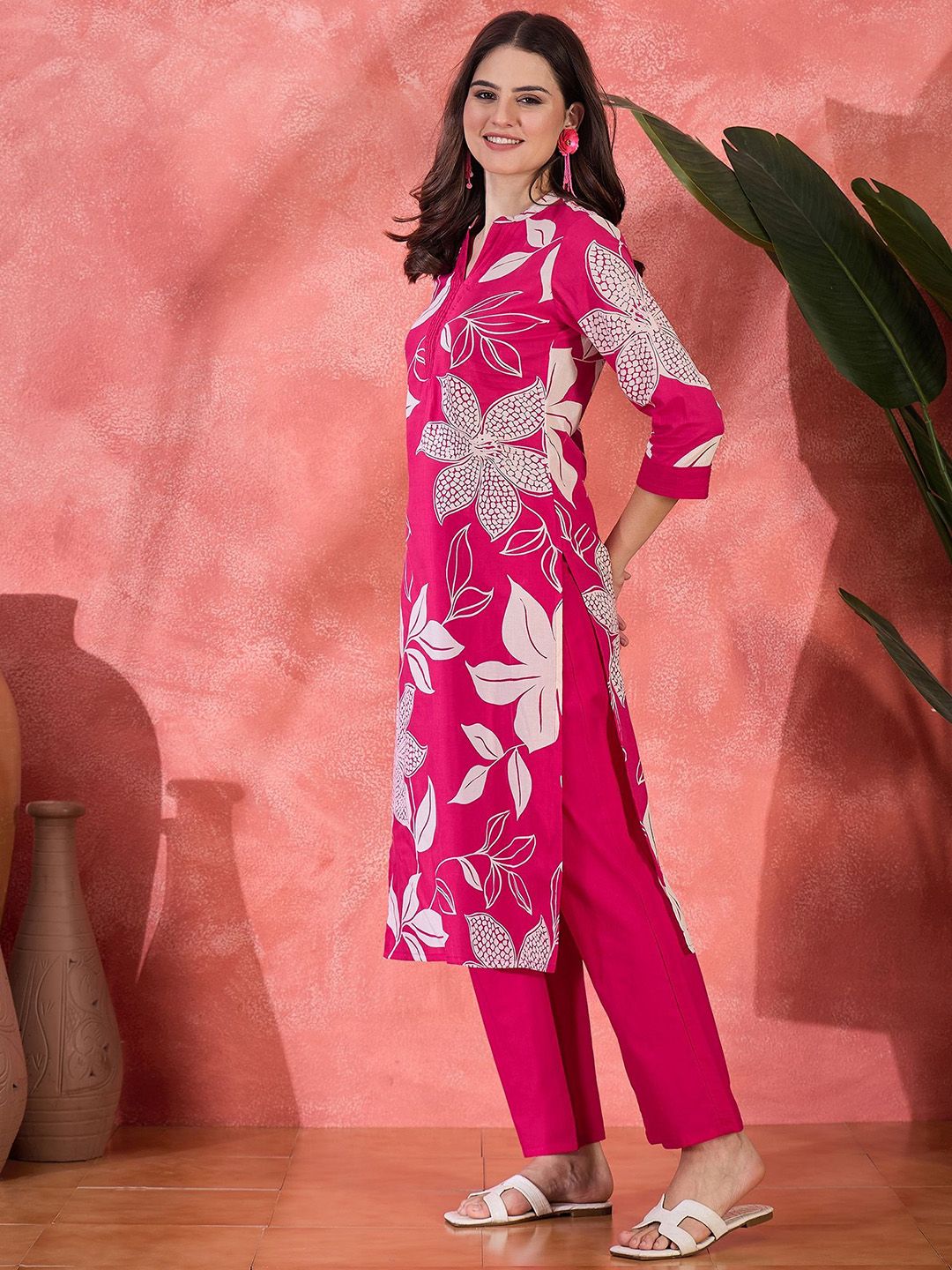 Sangria Women Floral Printed Pure Cotton Straight Kurta & Trousers