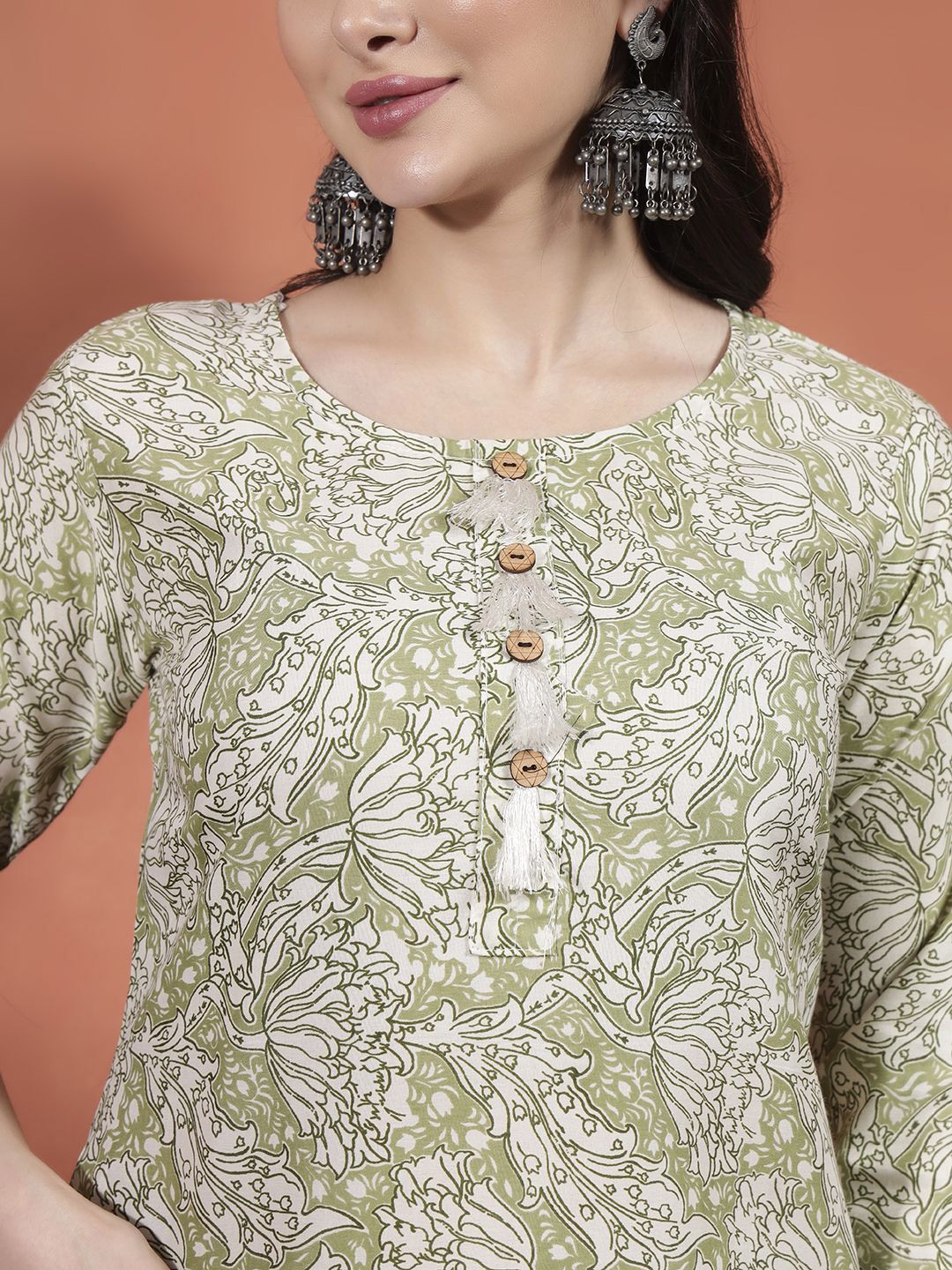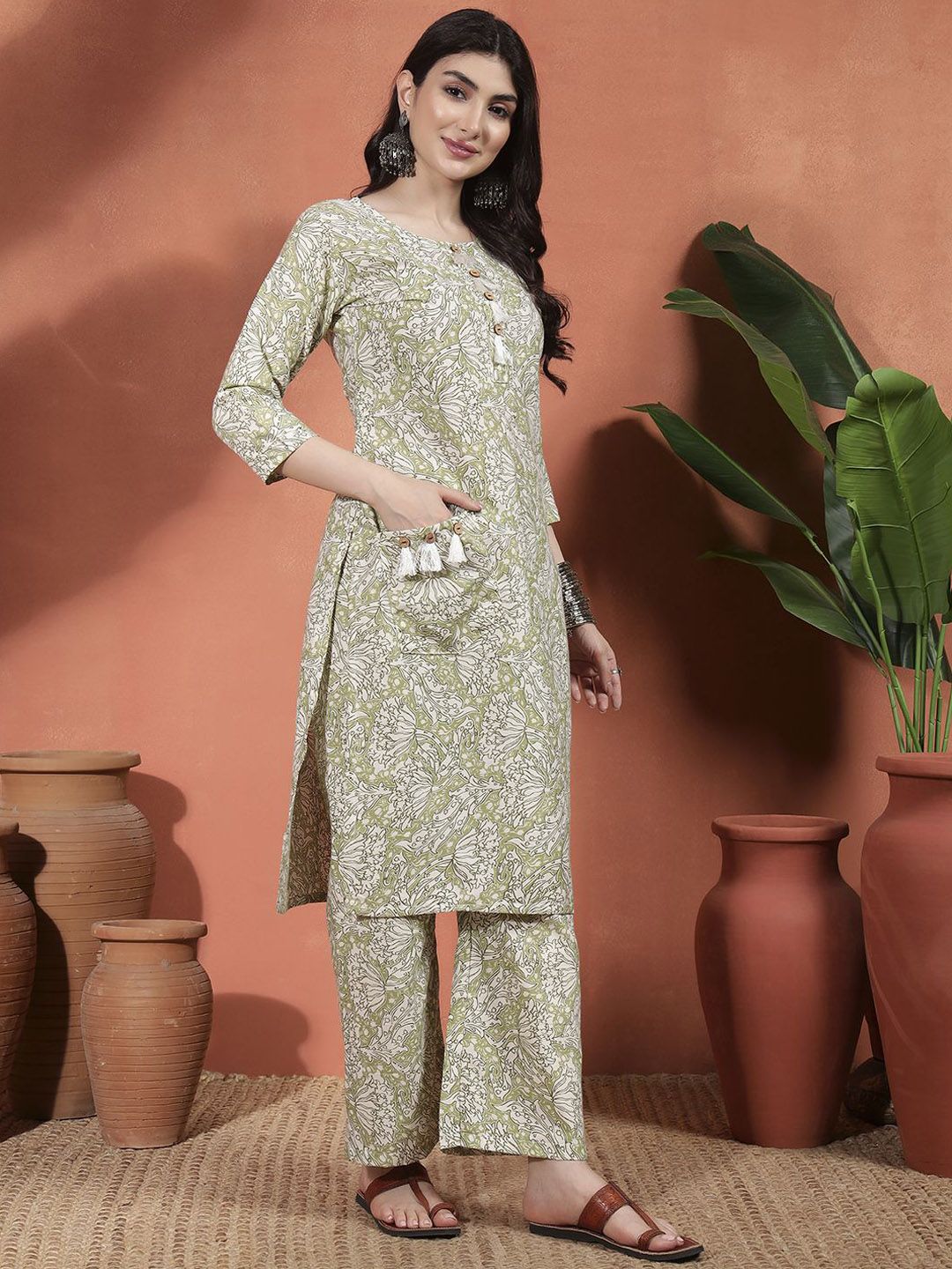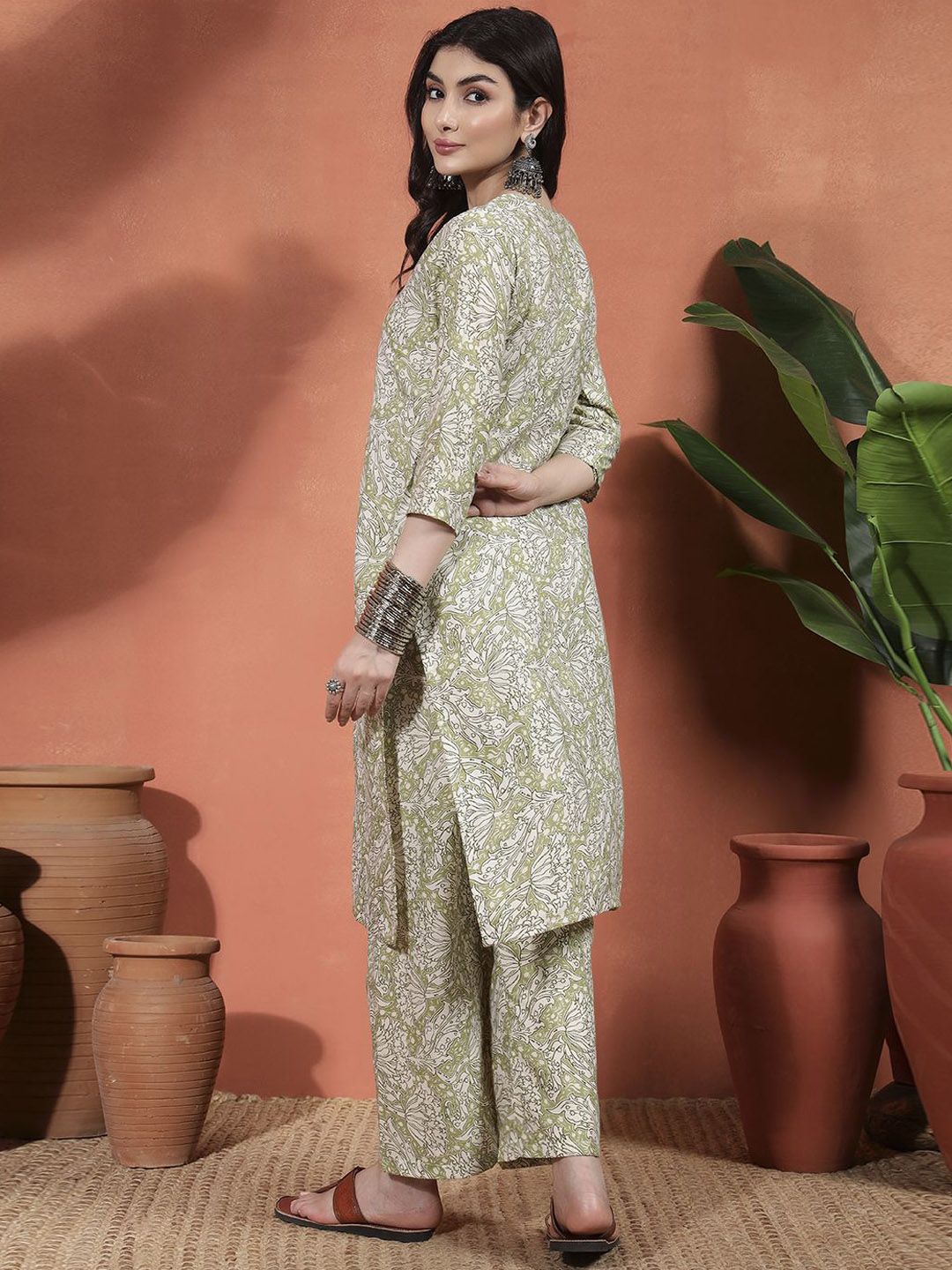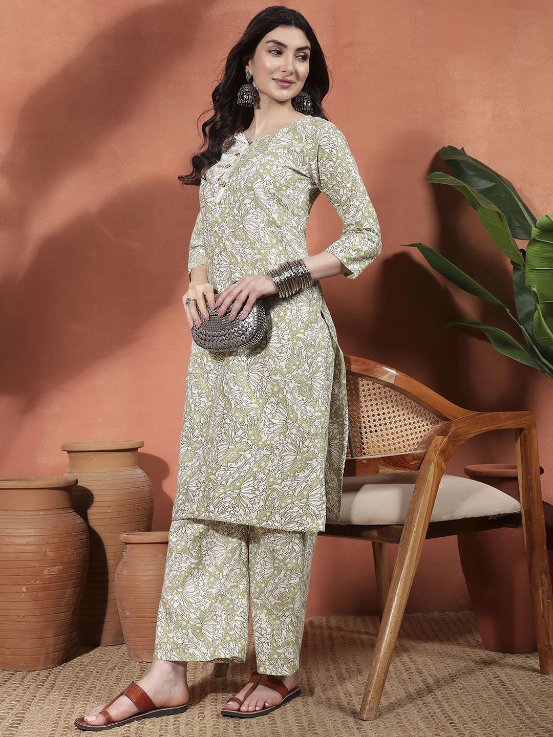 Sangria Women Floral Printed Pure Cotton Straight Kurta & Trousers