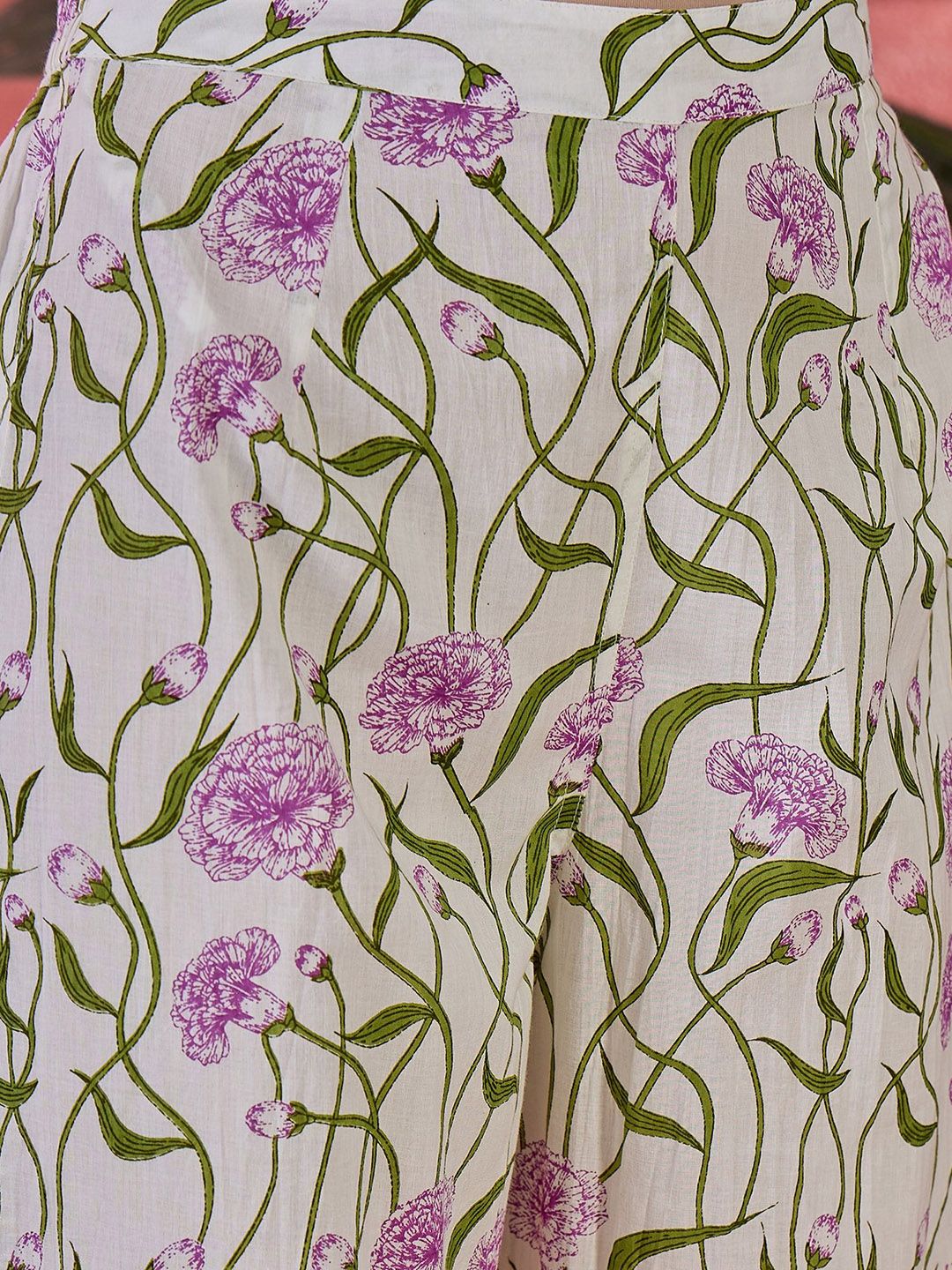 Sangria Women Floral Printed Regular Beads and Stones Pure Cotton Kurta with Trousers