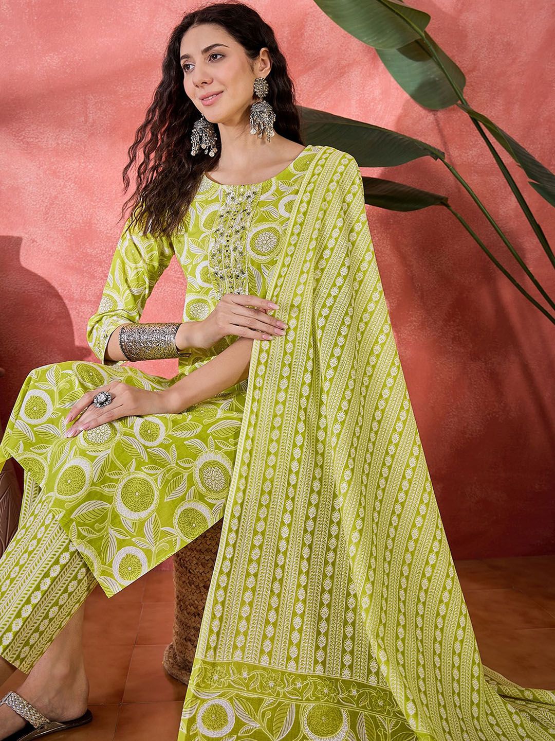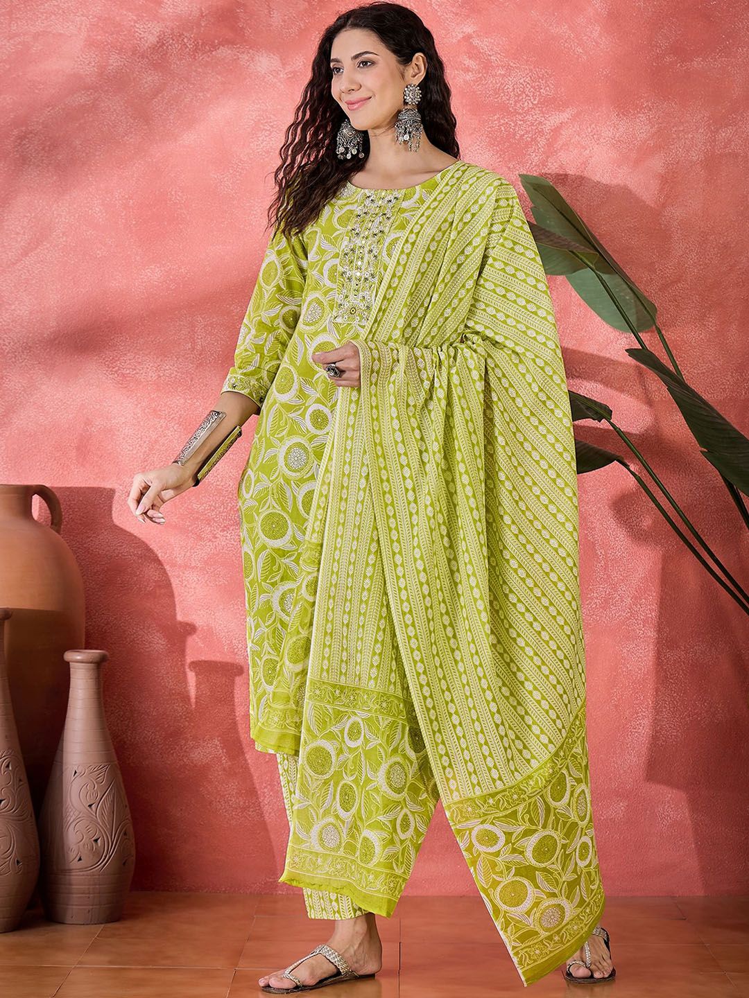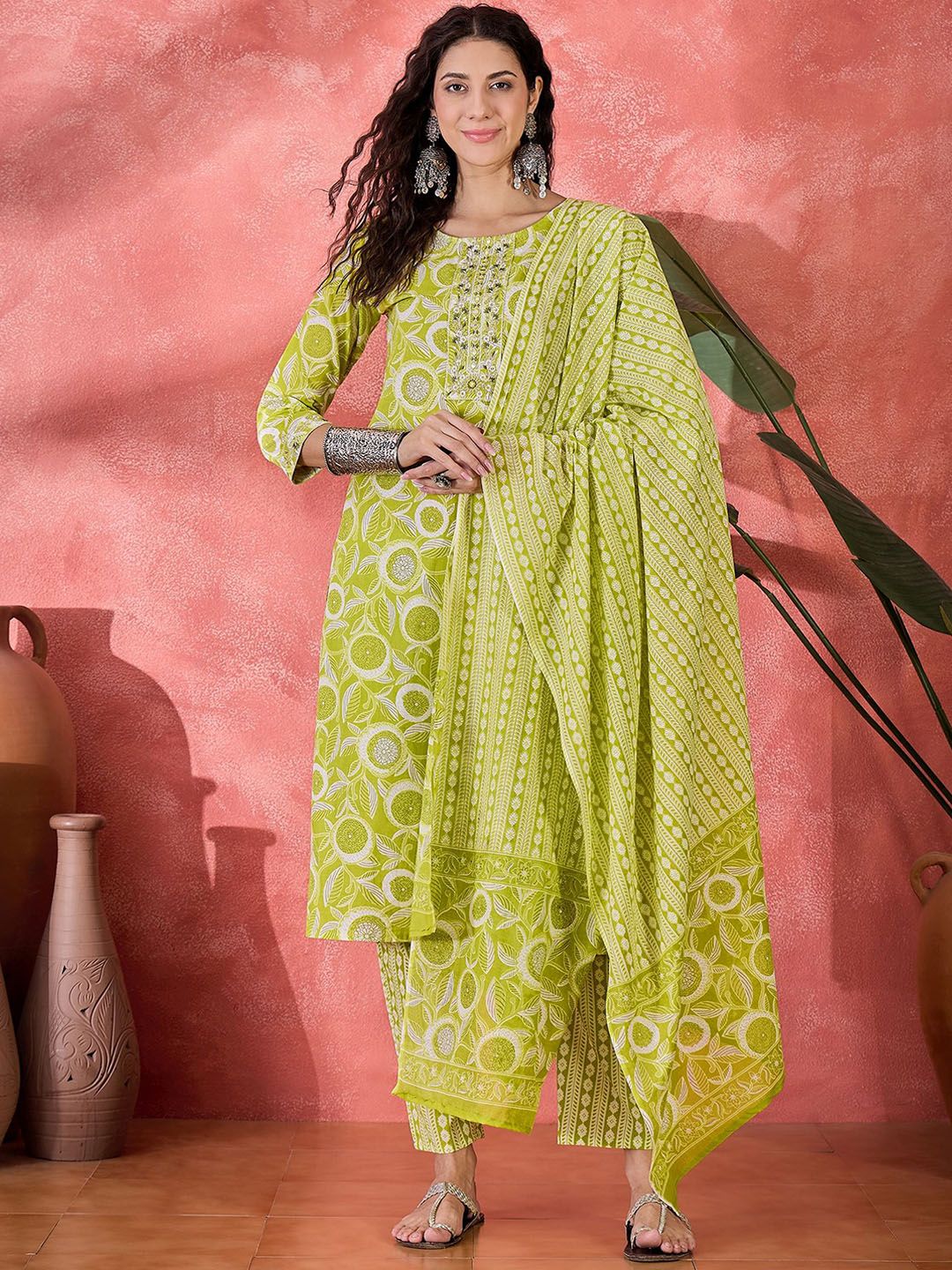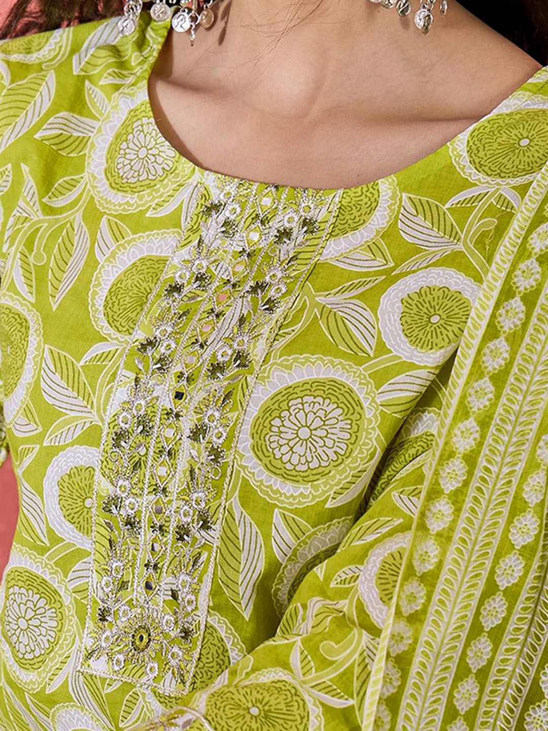 Sangria Women Floral Printed Regular Pure Cotton Kurta with Trousers & Dupatta