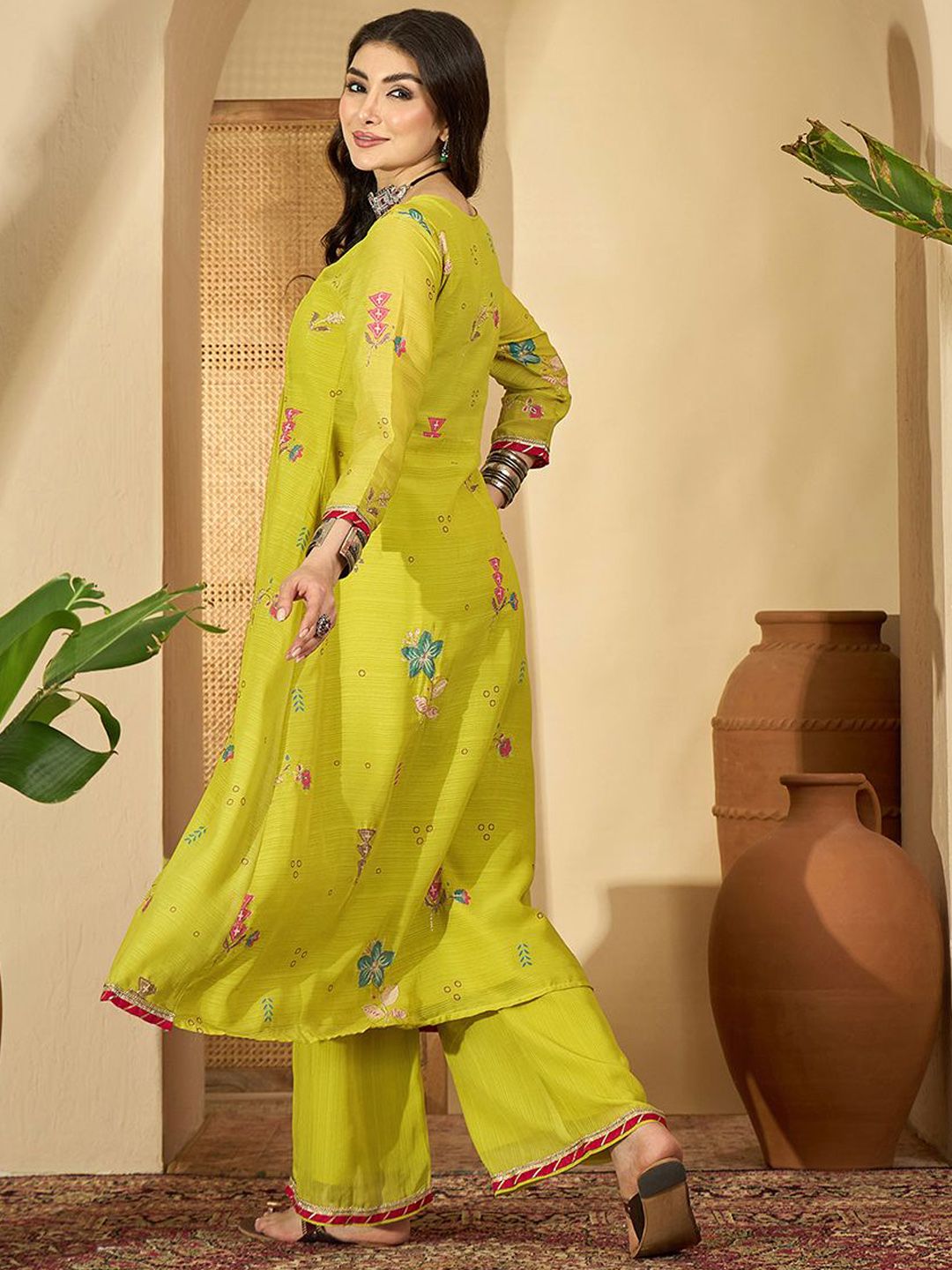 Sangria Women Floral Woven Design Zari Anarakli Kurta With Trousers & Dupatta