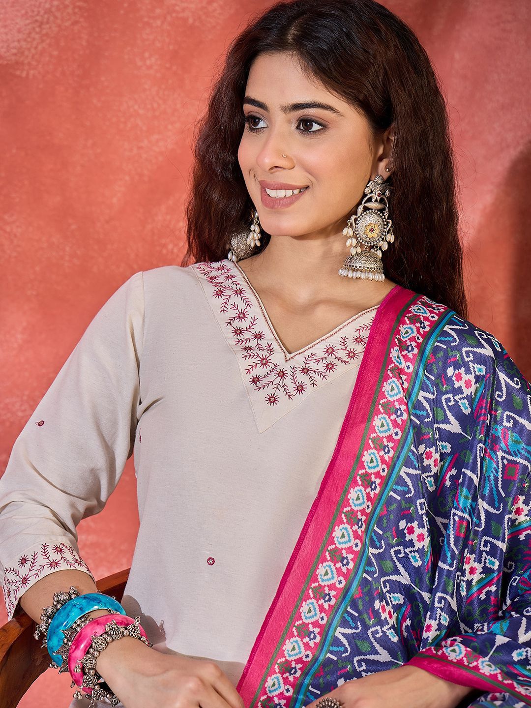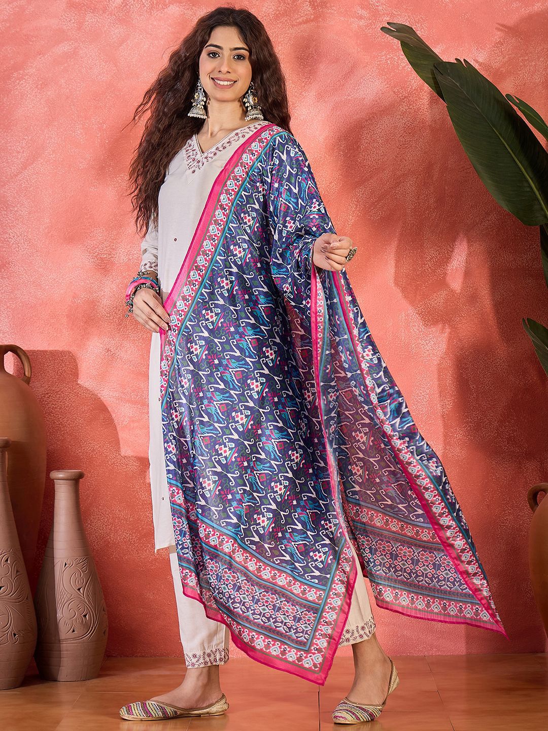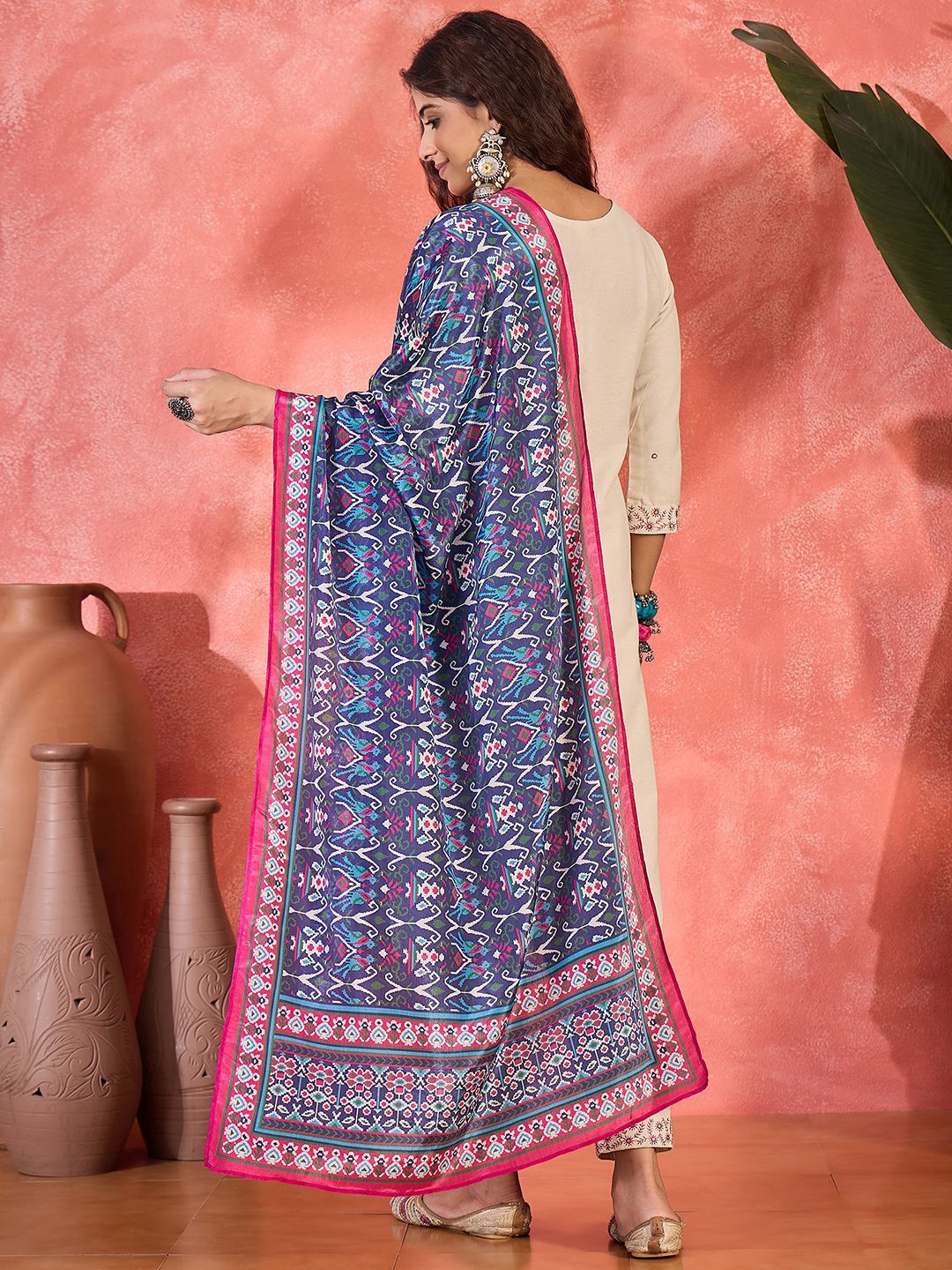 Sangria Women Floral Yoke Design Kurta with Trousers & Dupatta