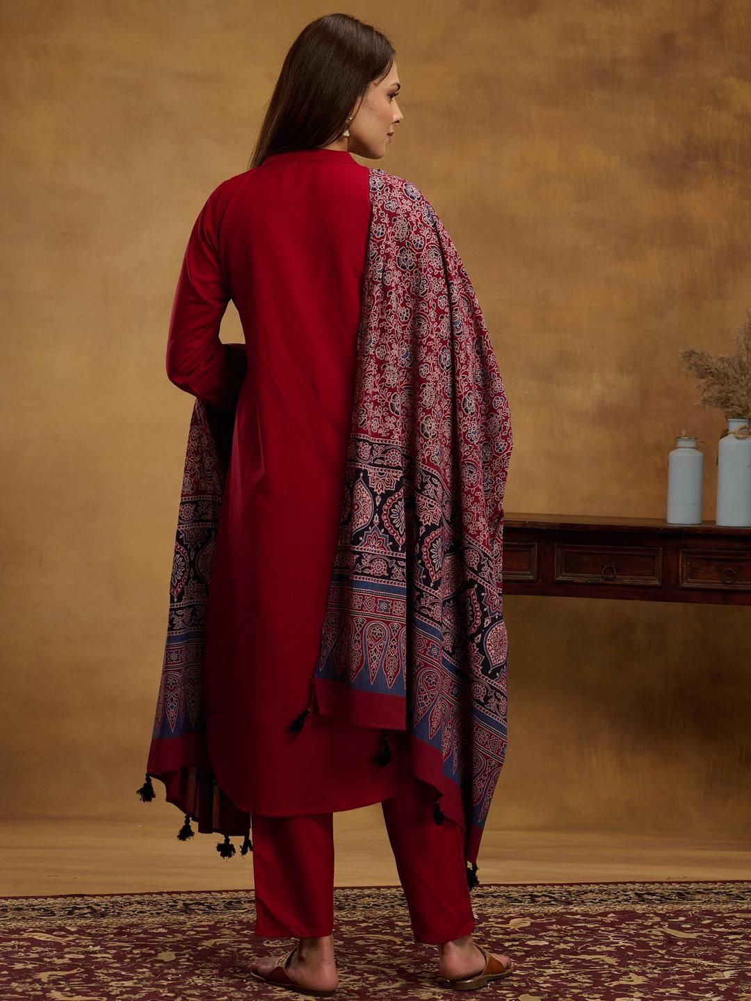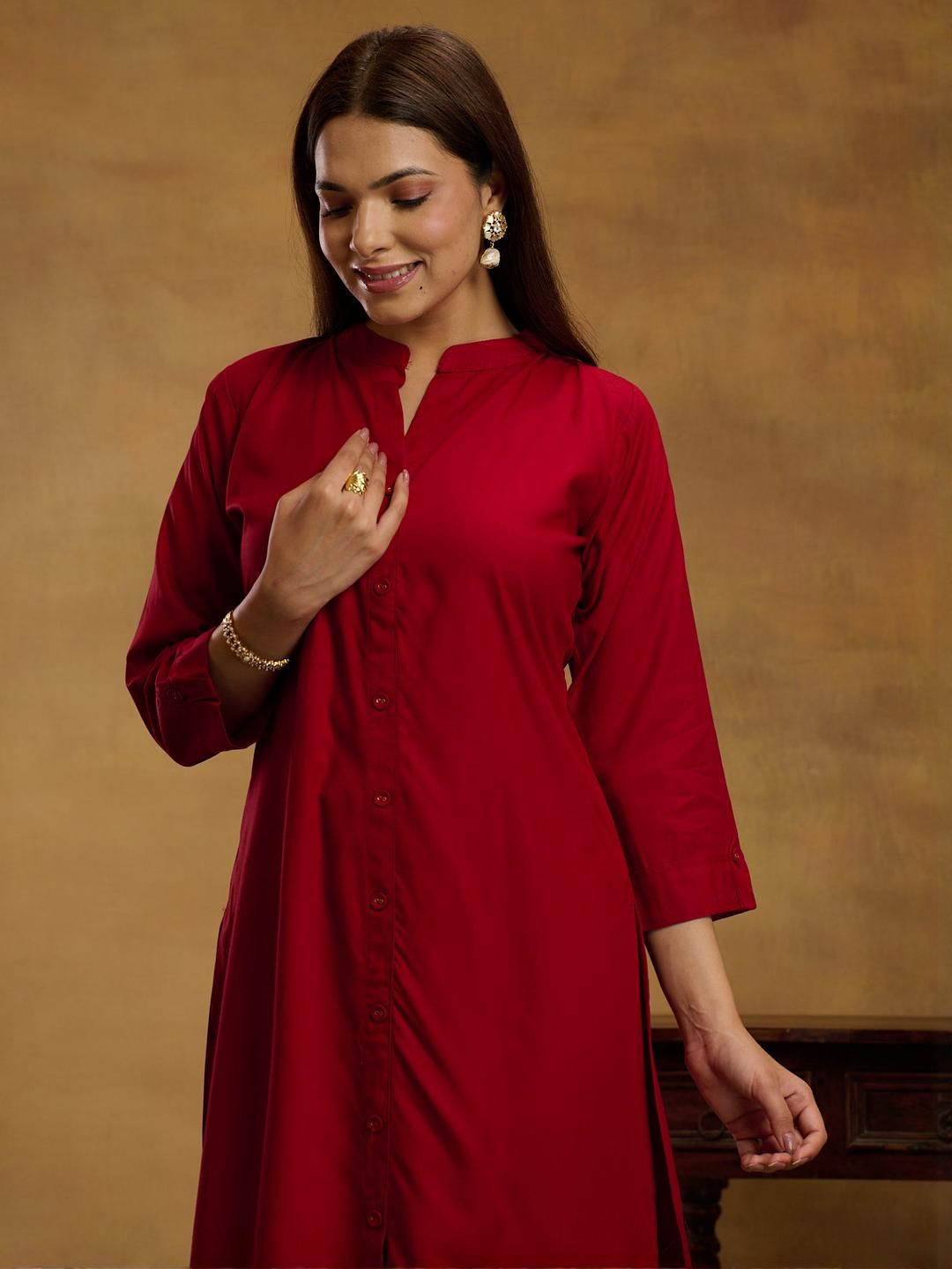 Sangria Women Maroon Viscose Rayon Kurta Sets
