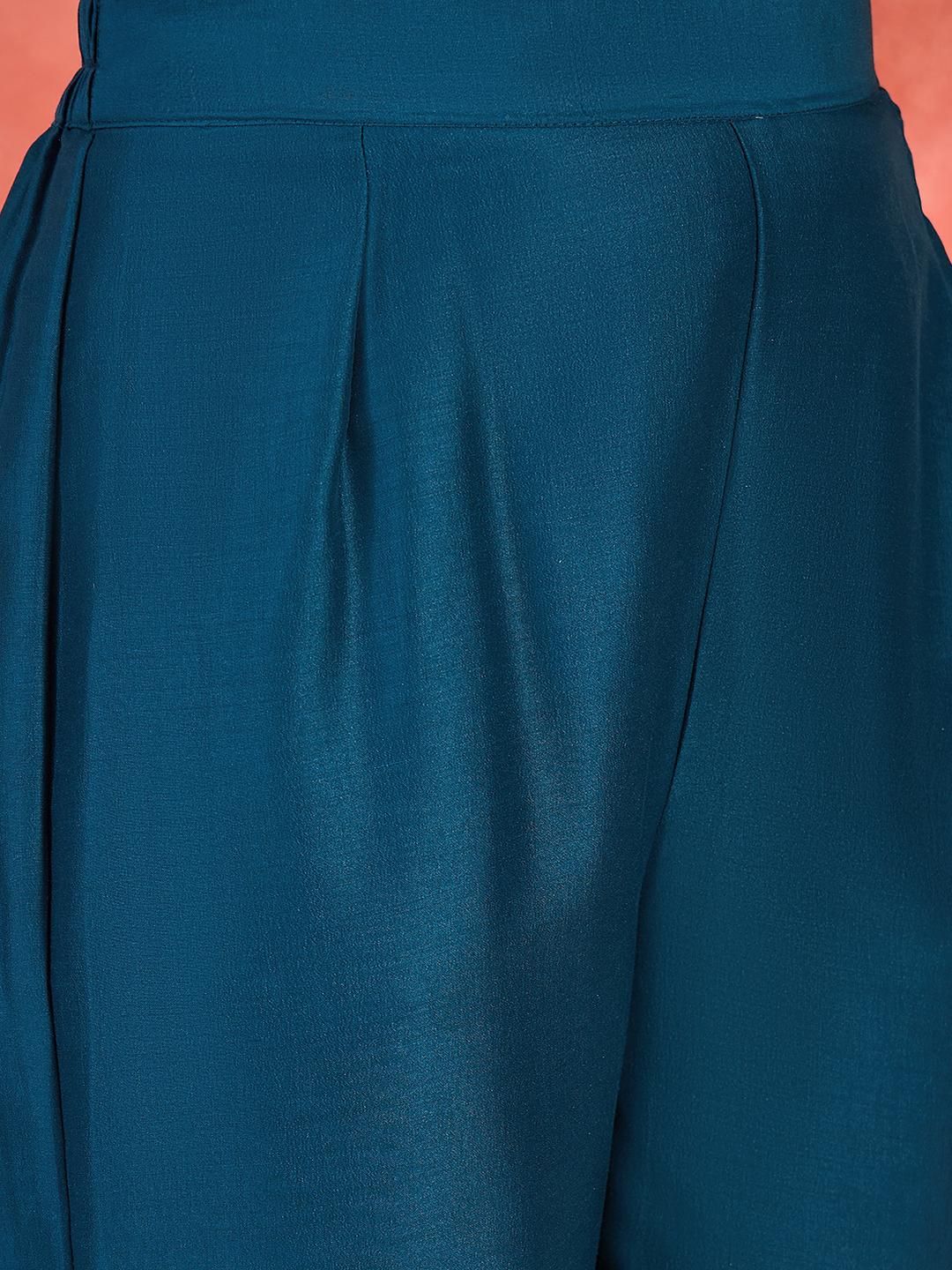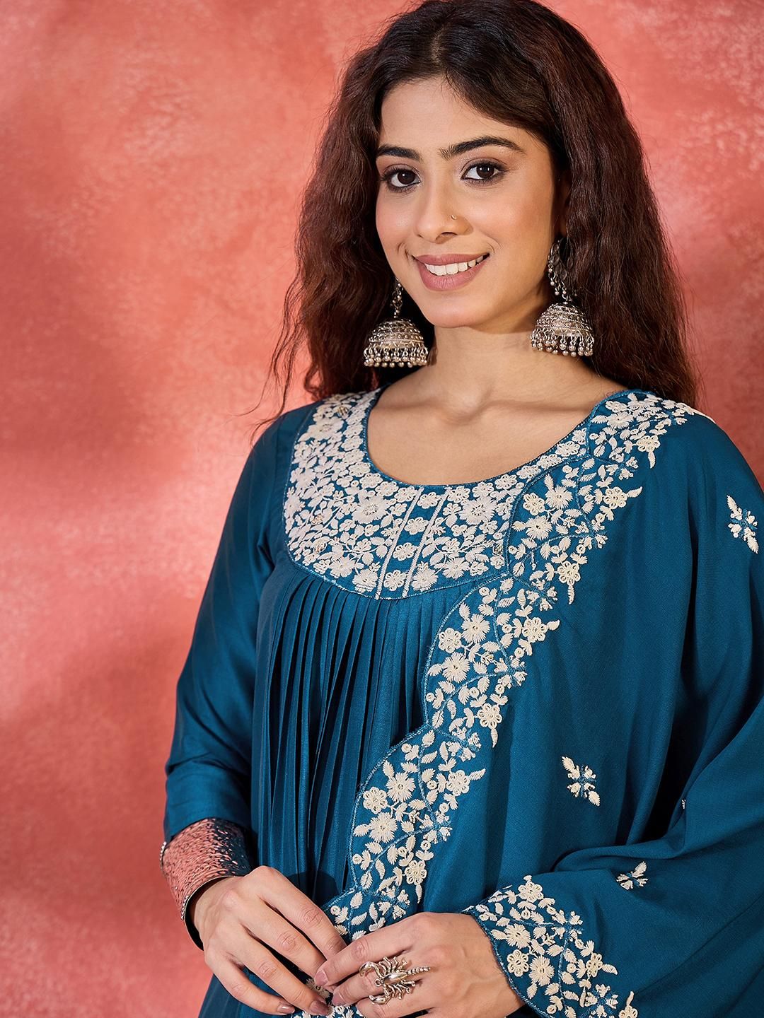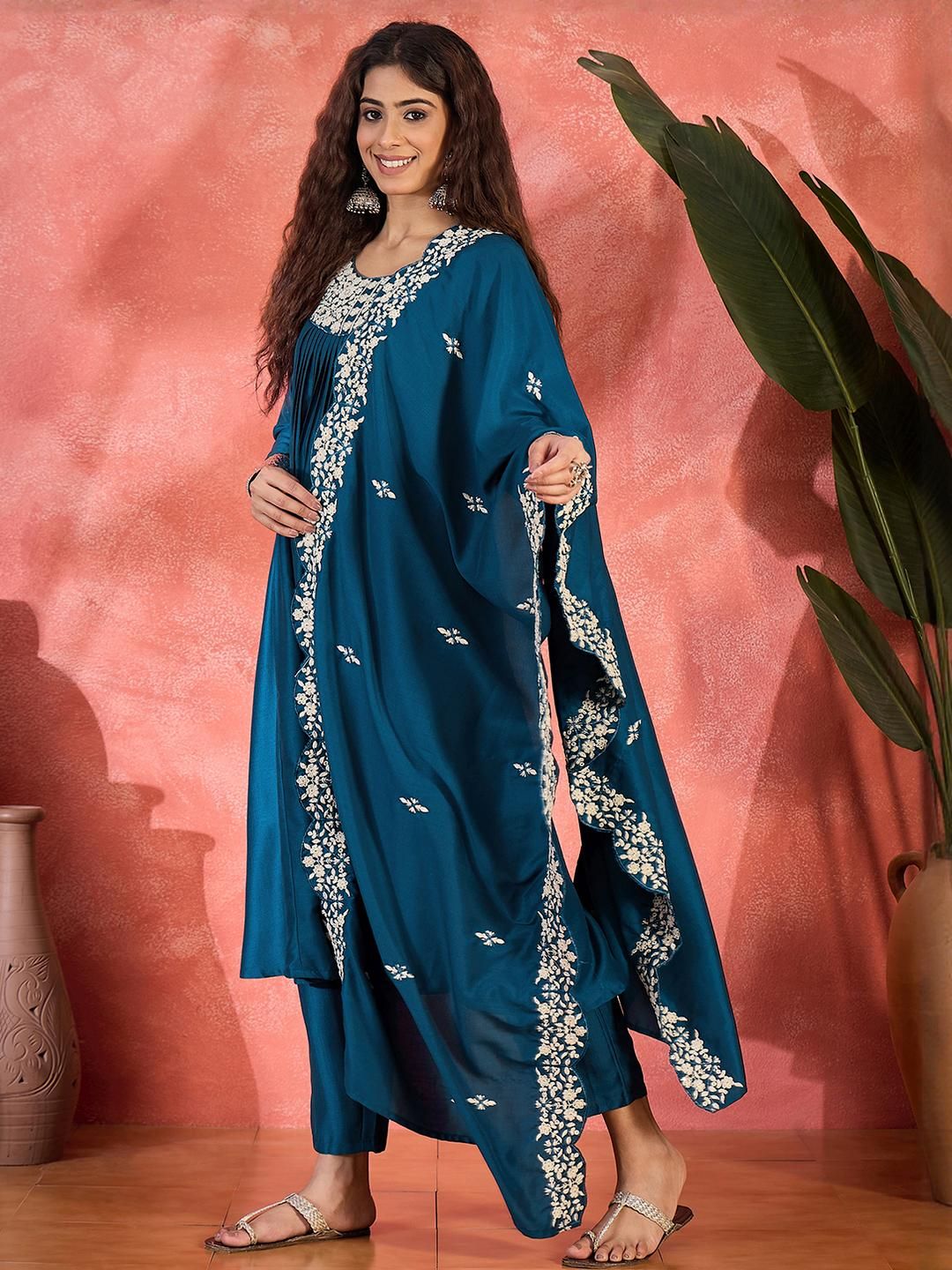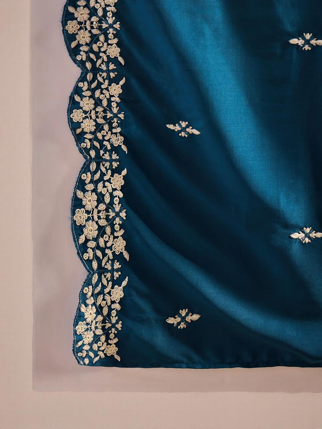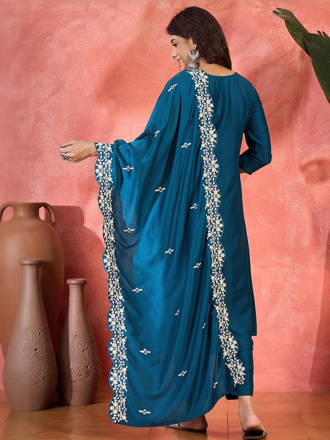 Sangria Women Morpich Chinon Silk Embroidered Kurta with Trousers & With Dupatta