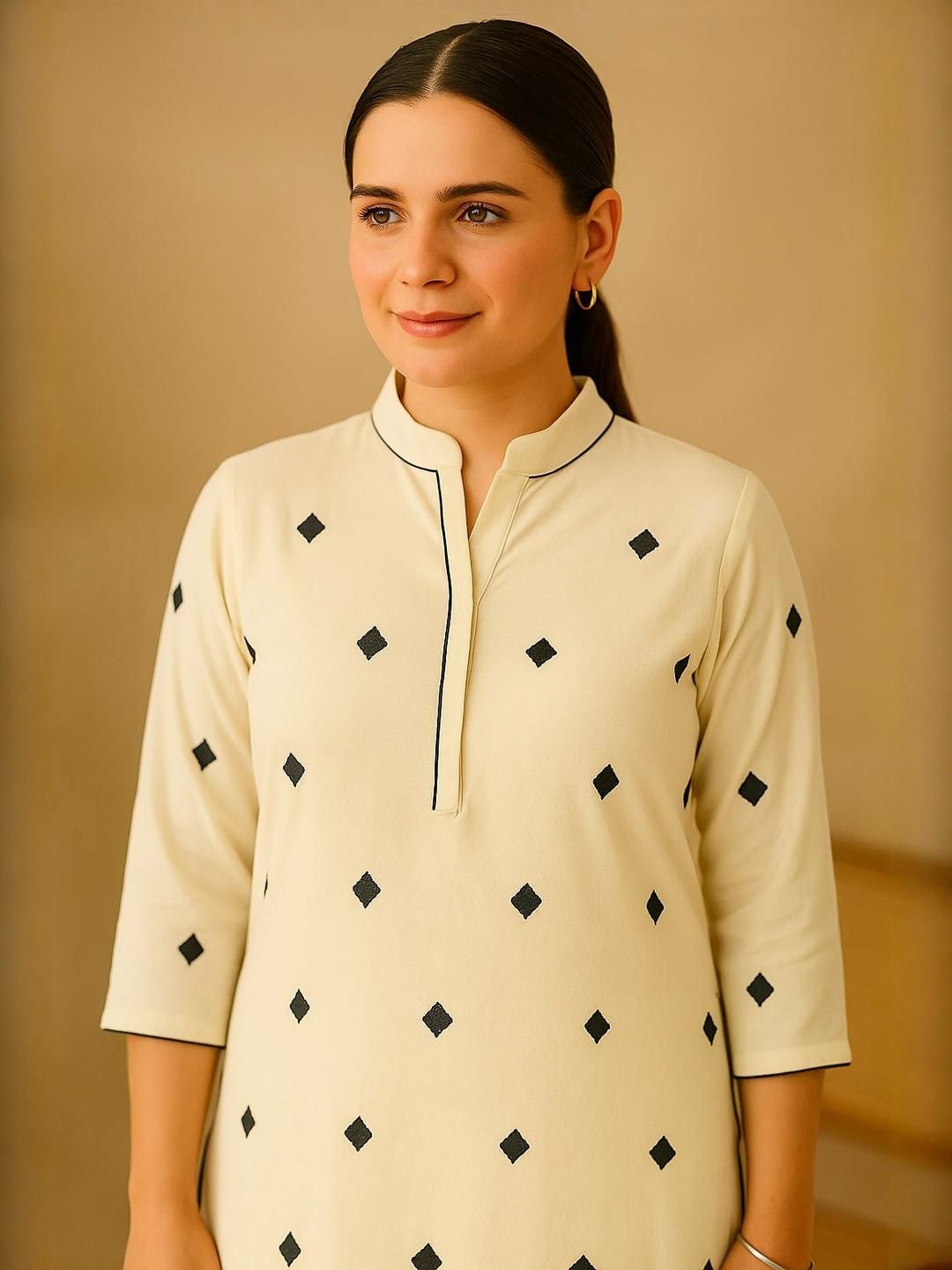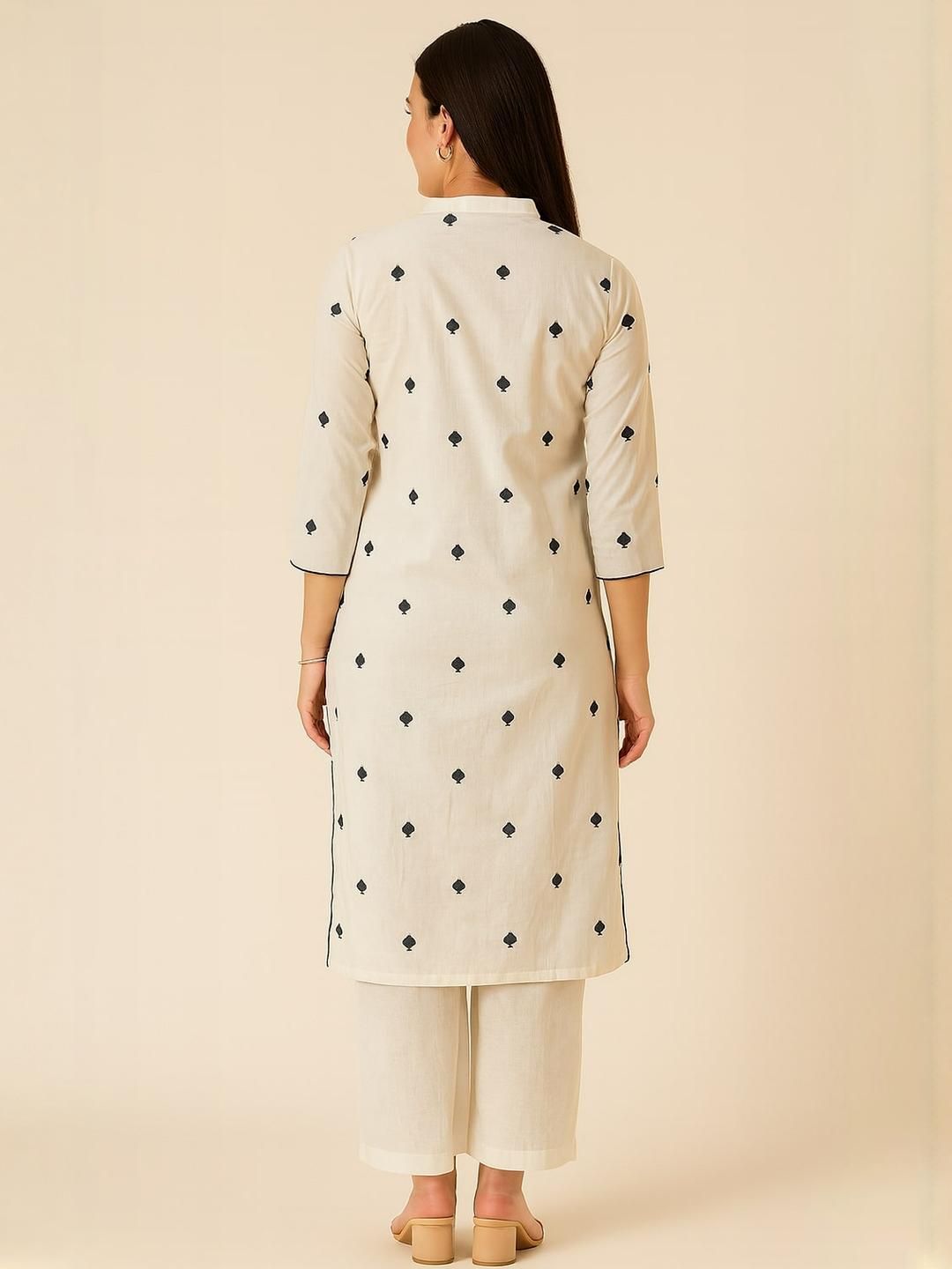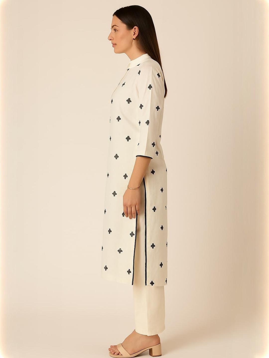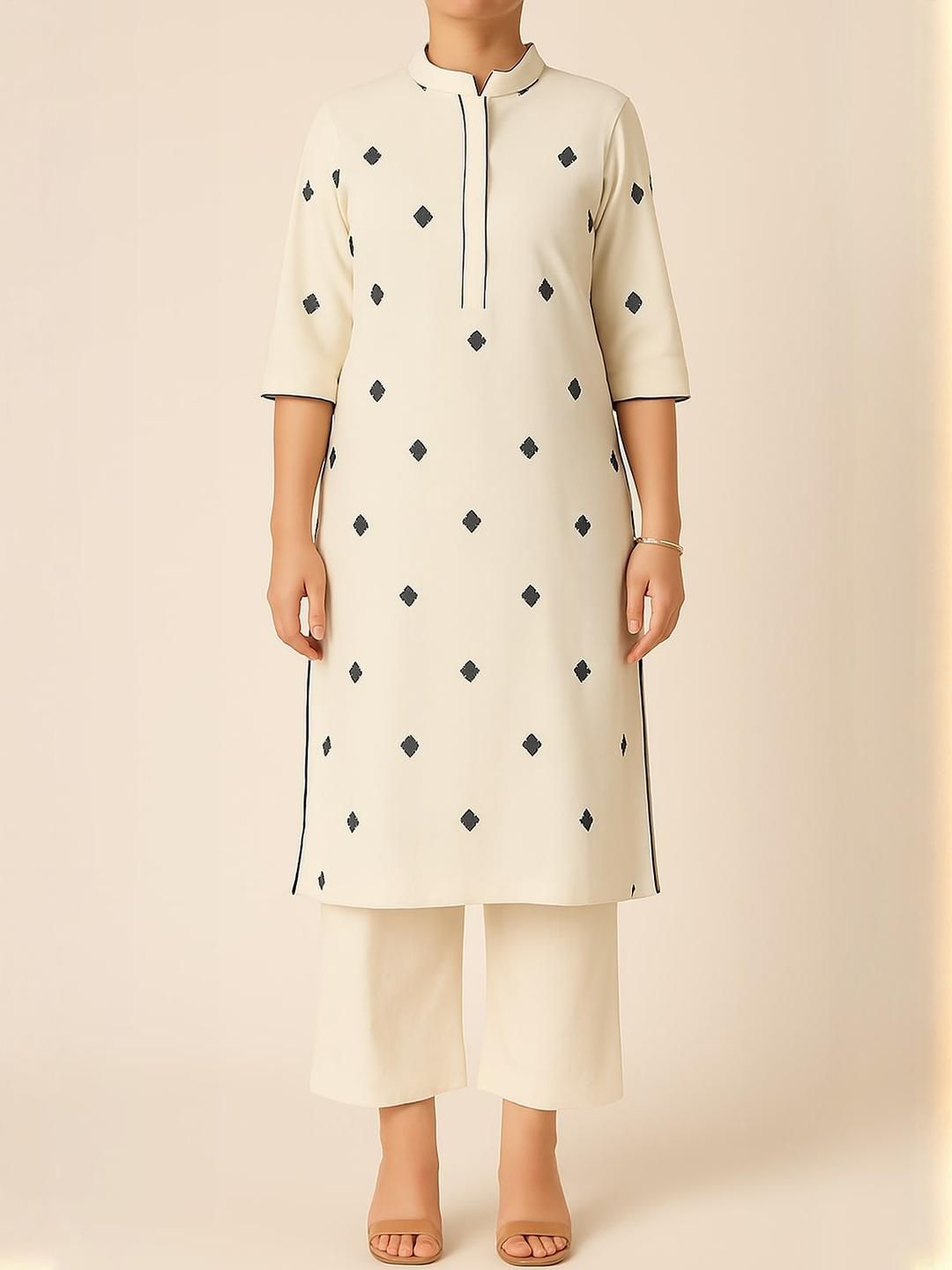 Sangria Women Off White Viscose Rayon Solid Kurta Sets