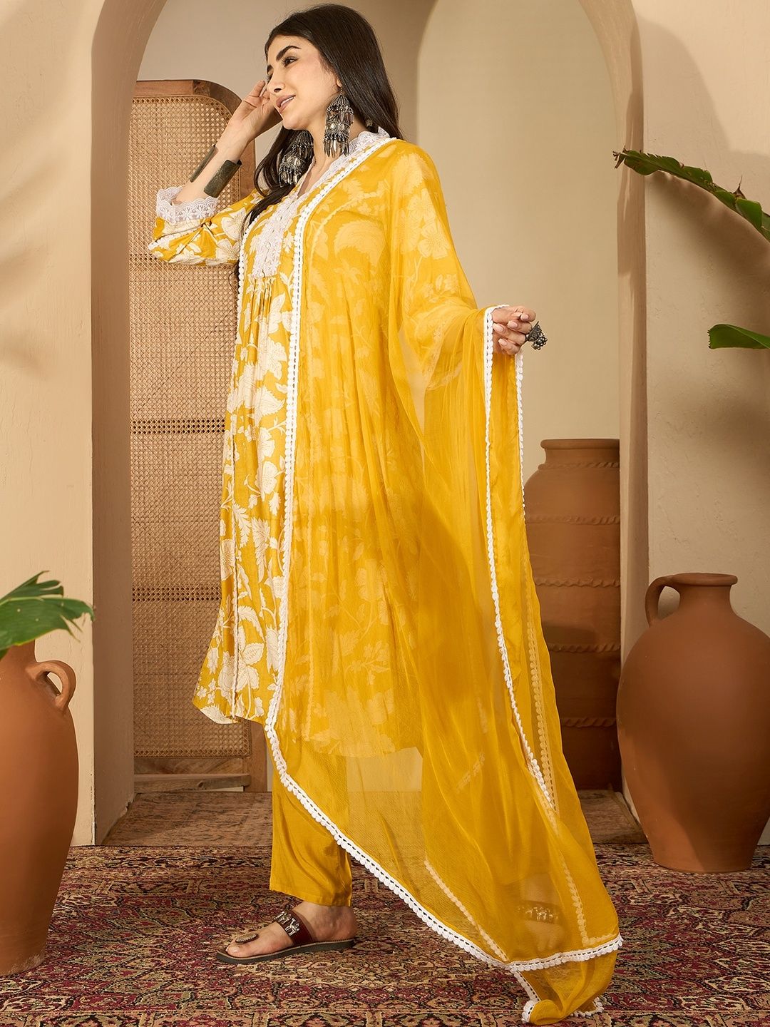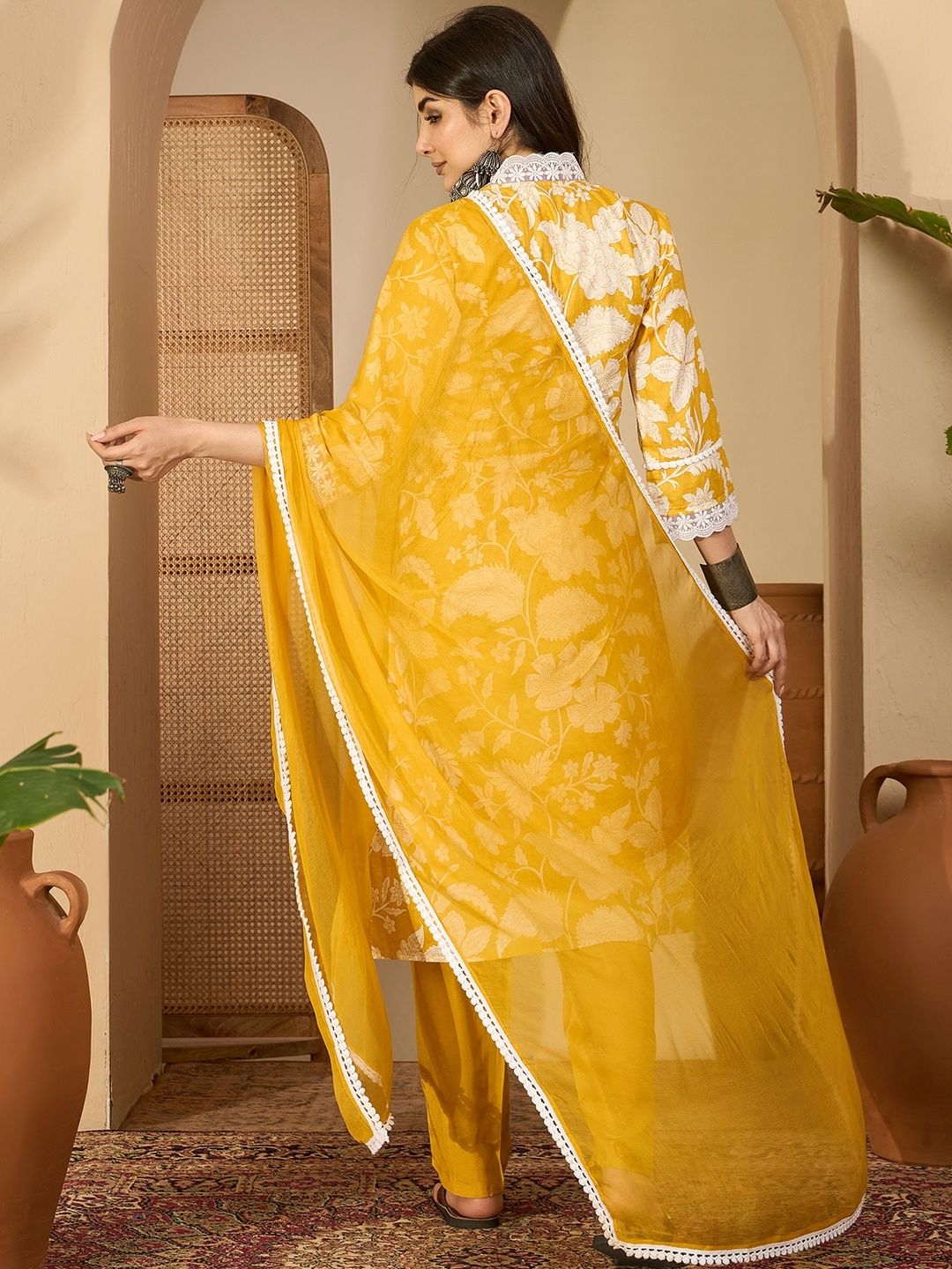 Sangria Women Printed Pure Cotton Kurta Sets With Dupatta