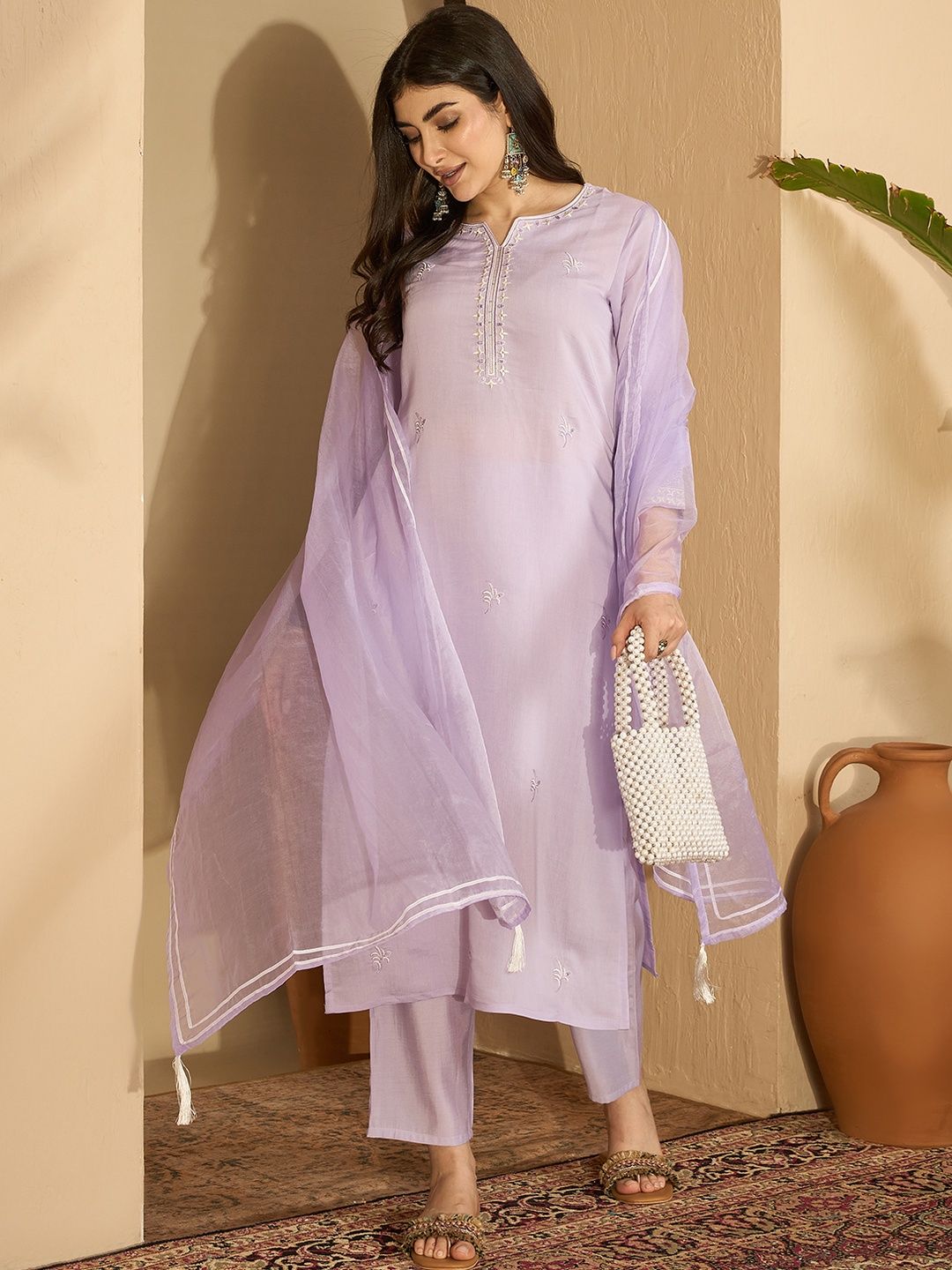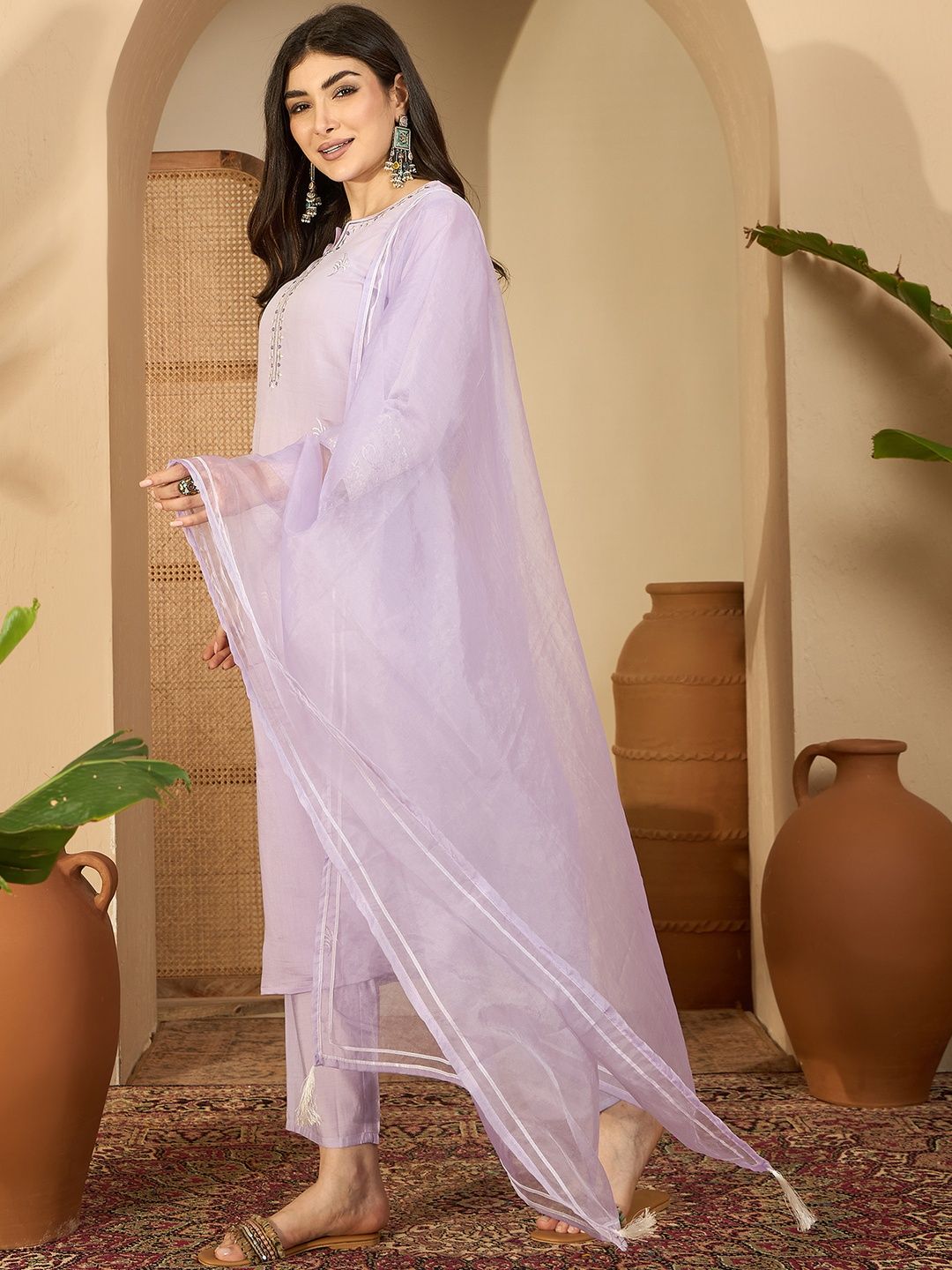 Sangria Women Solid Art Silk Kurta Sets With Dupatta