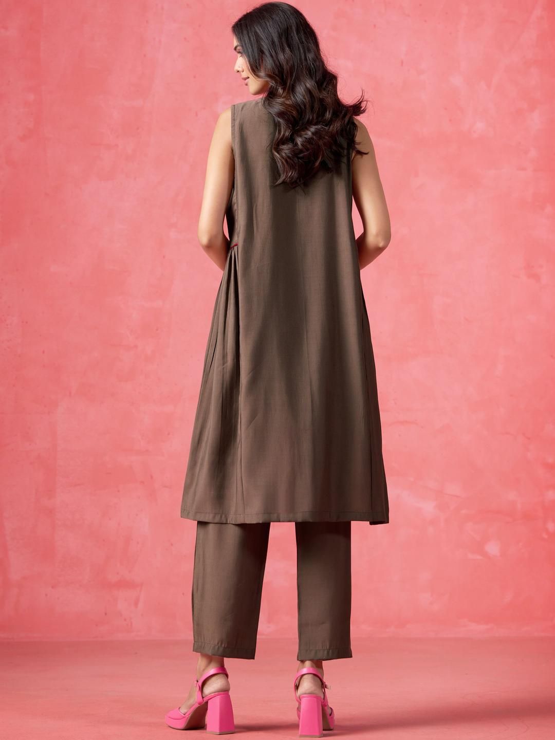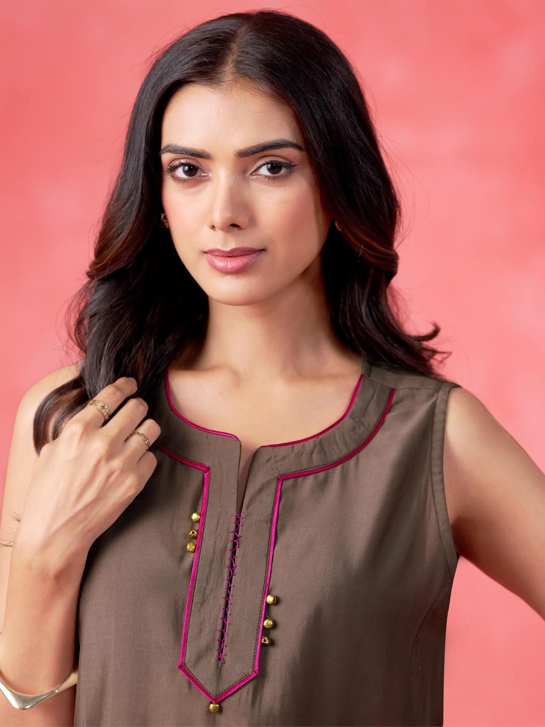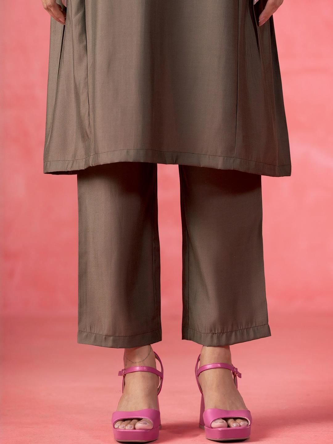 Sangria Women Solid Yoke Design Silk Kurta with Trousers
