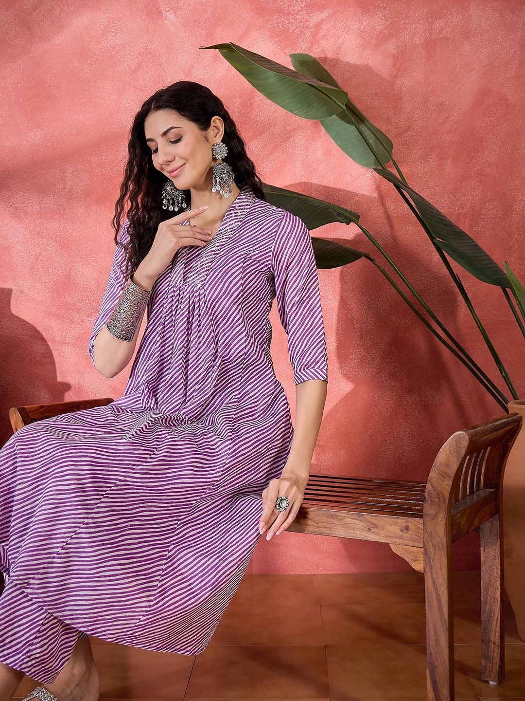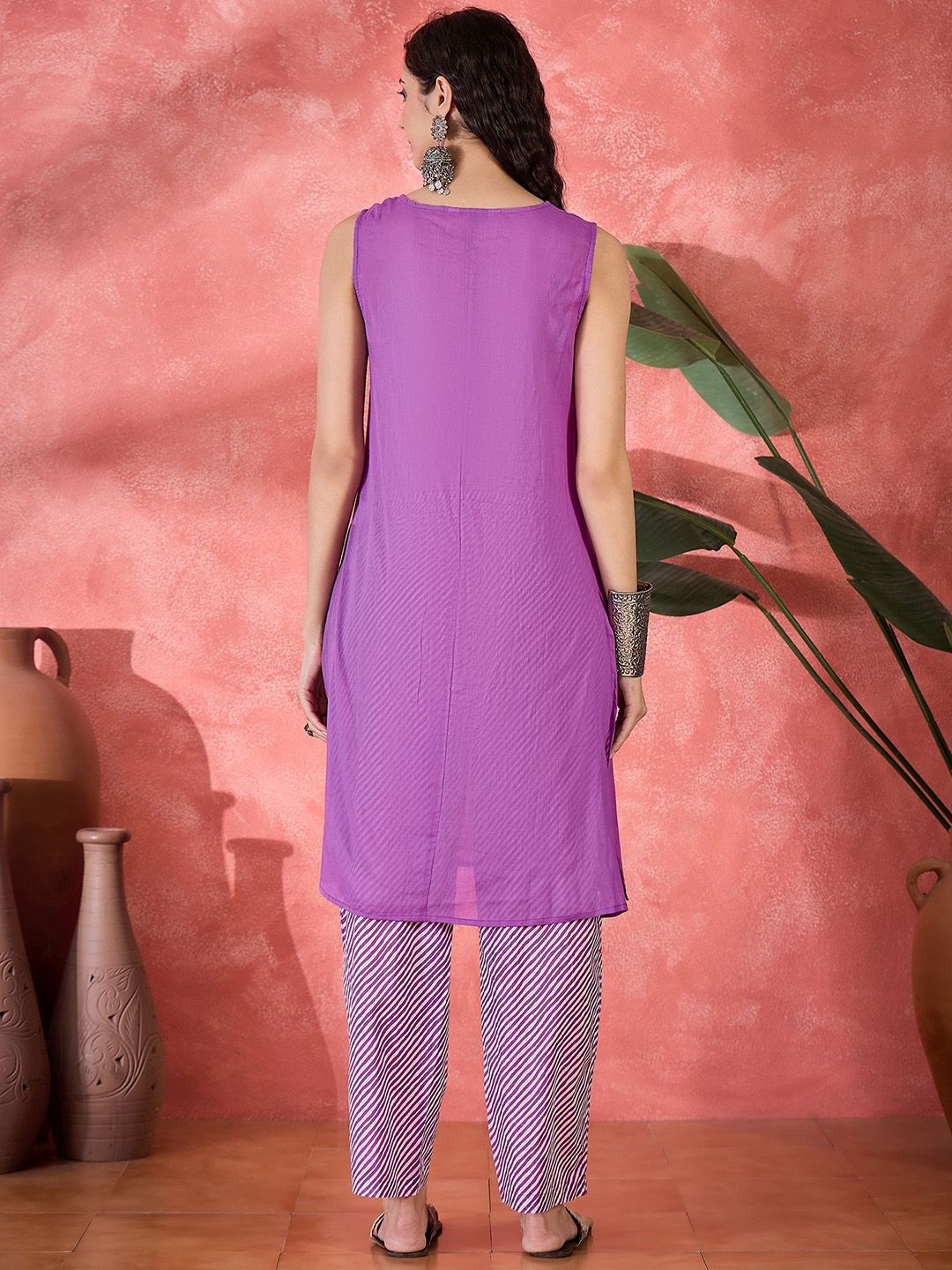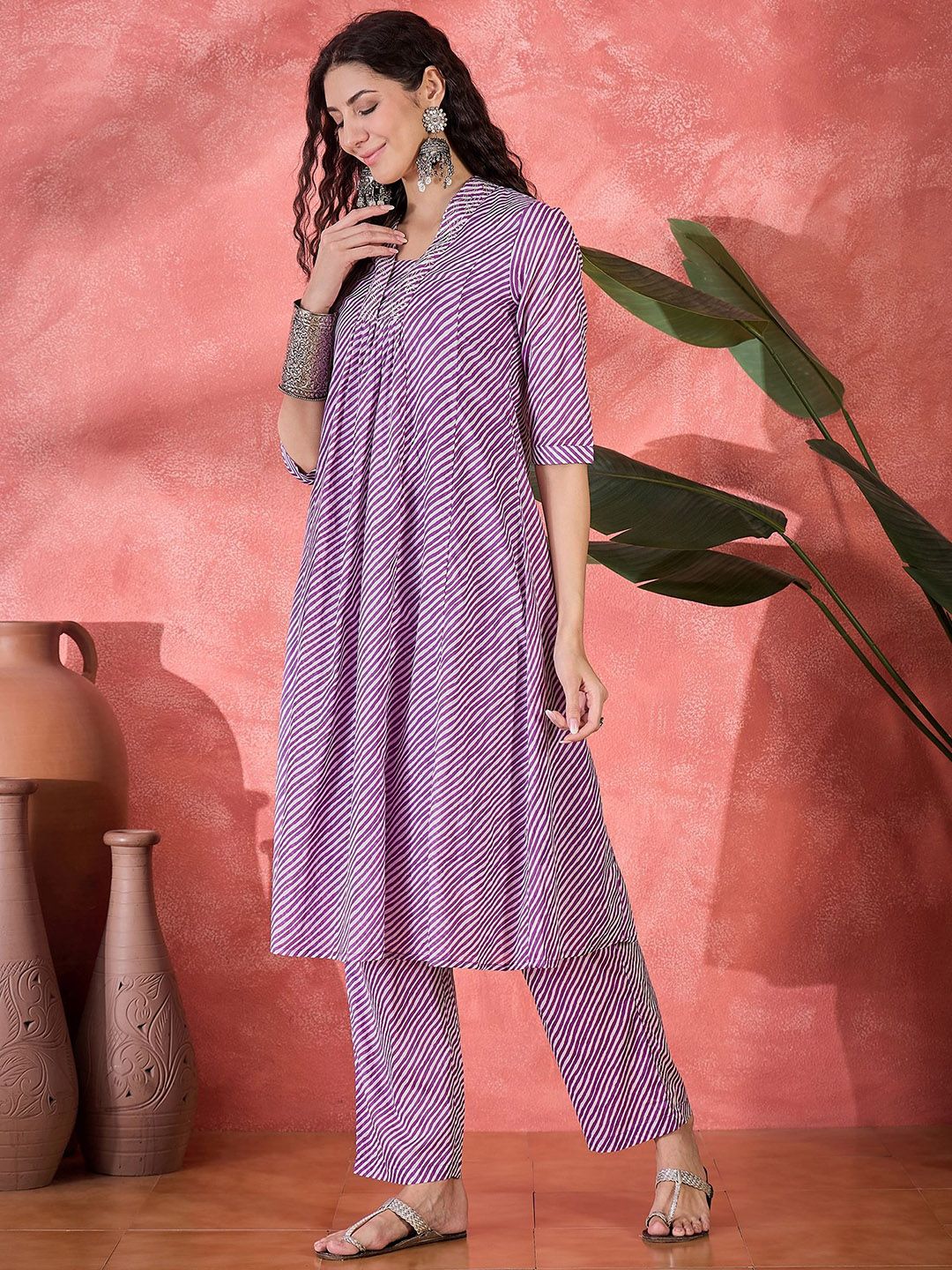 Sangria Women Striped Pure Silk Kurta & Trousers