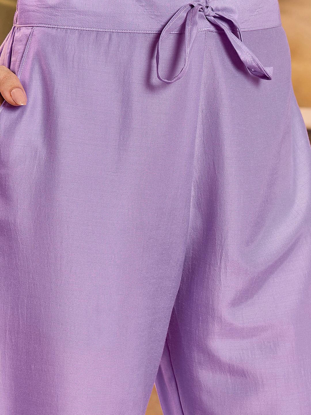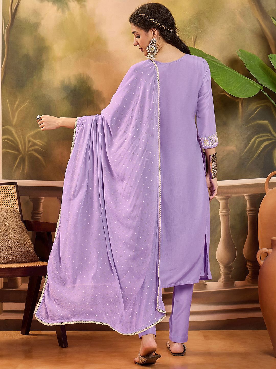 Sangria Women Thread Embroidered With Mirror Work A-Line Kurta With Trousers & Dupatta