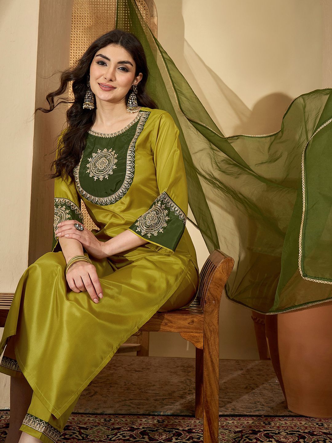 Sangria Women Woven Design Kurta with Trousers & Dupatta