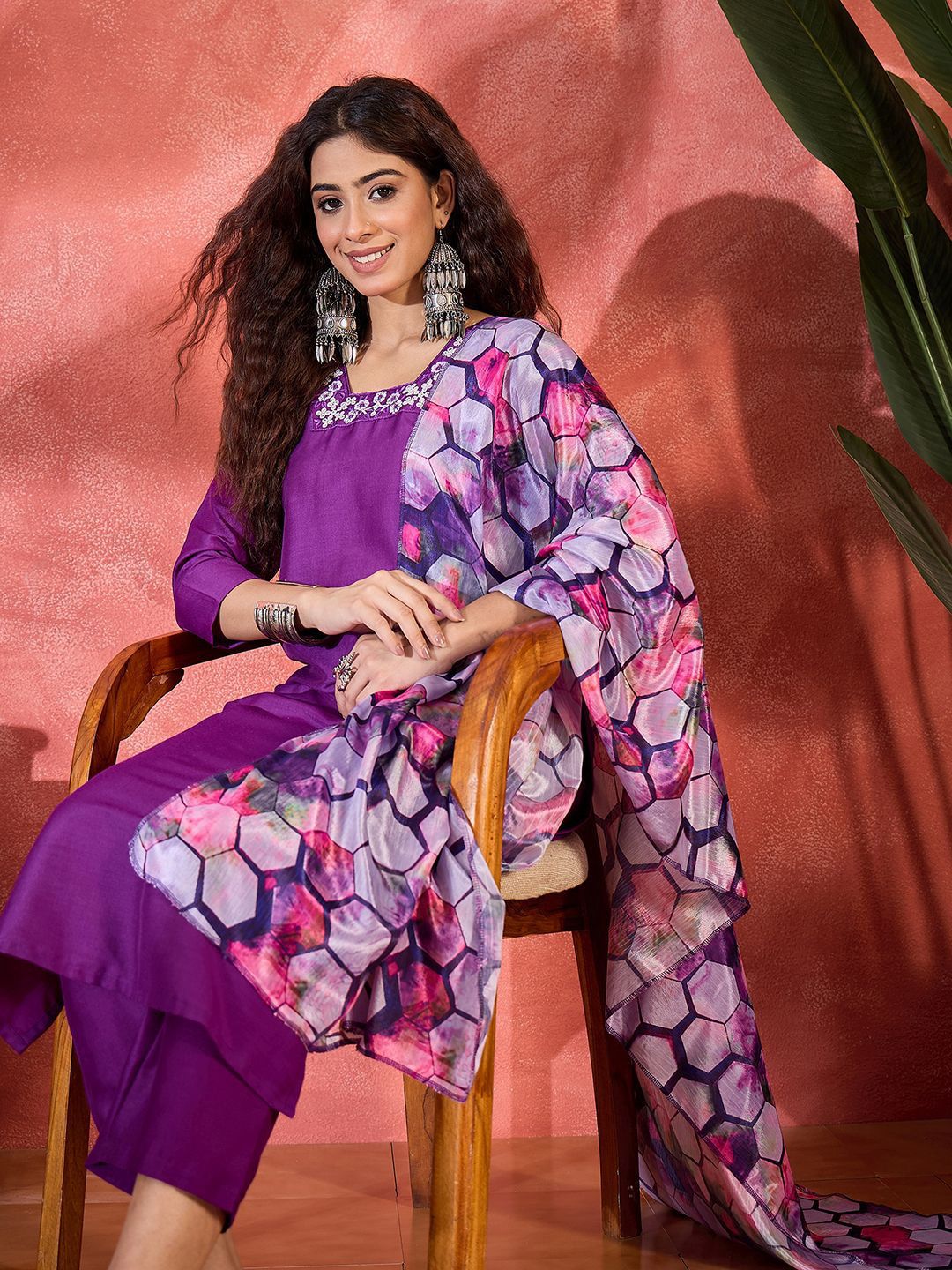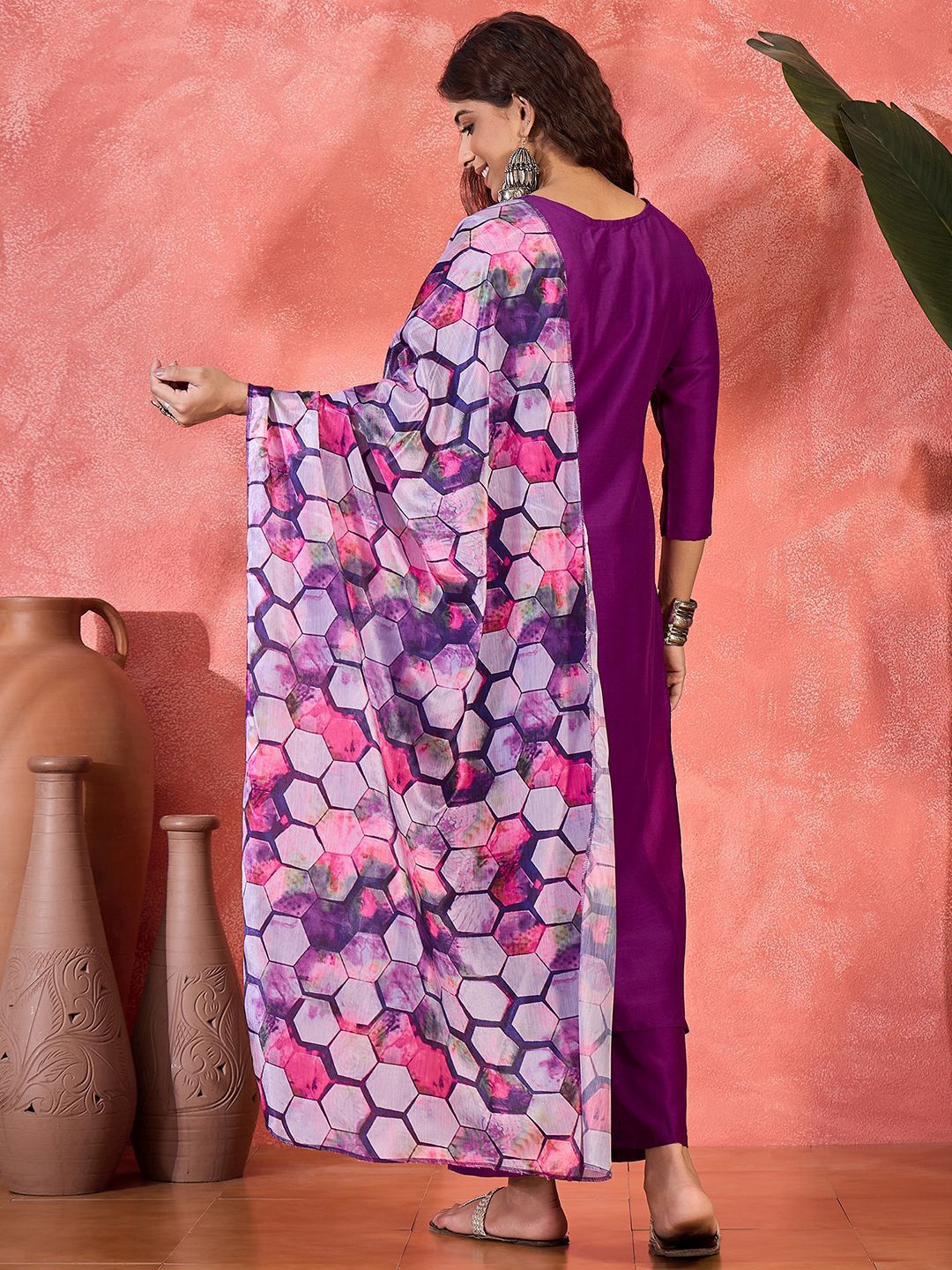 Sangria Women Woven Design Yoke Design Kurta with Trousers & Dupatta
