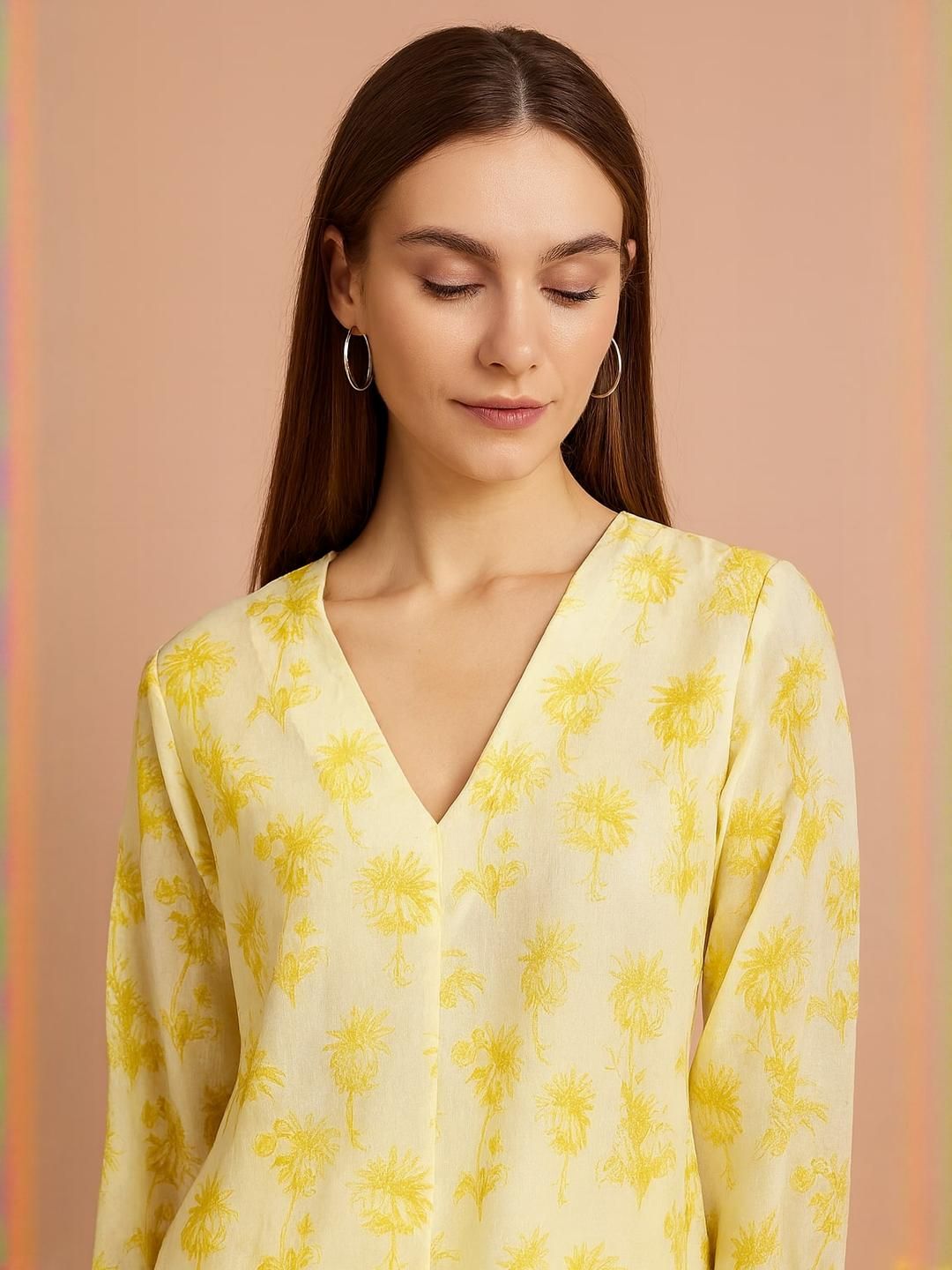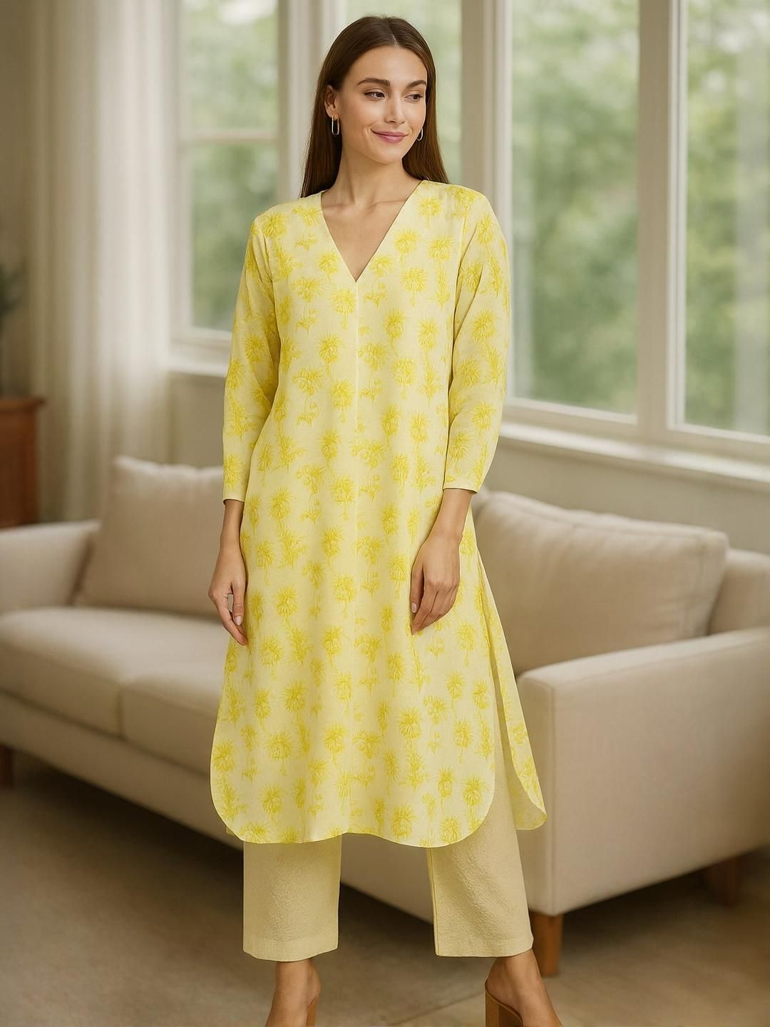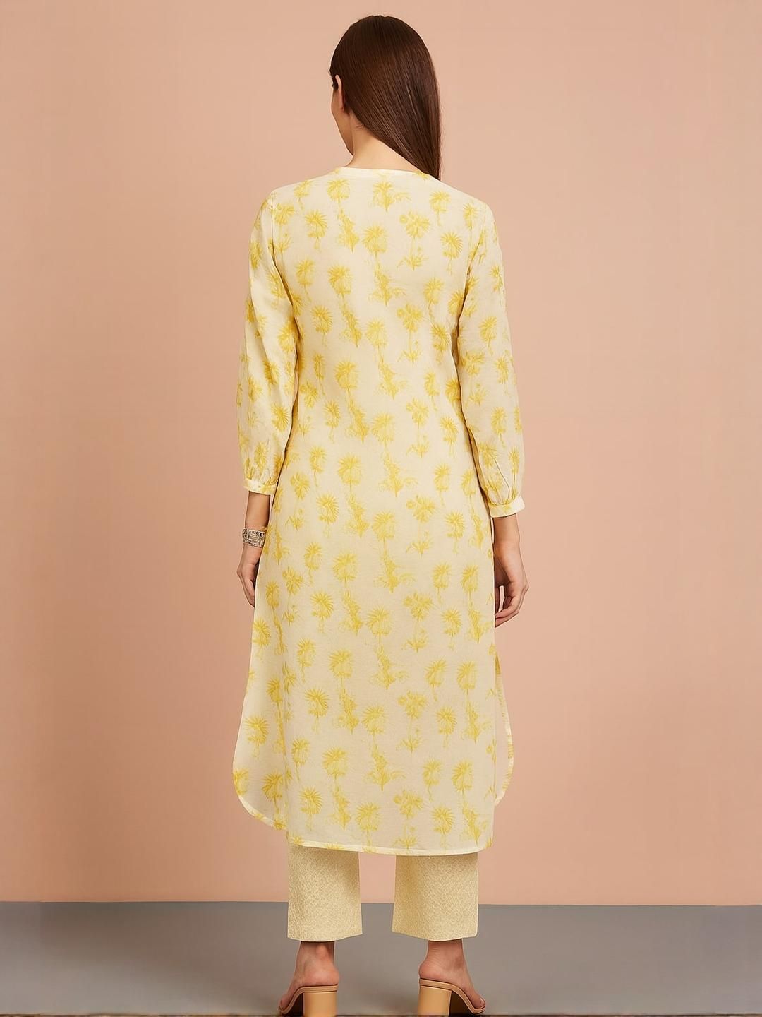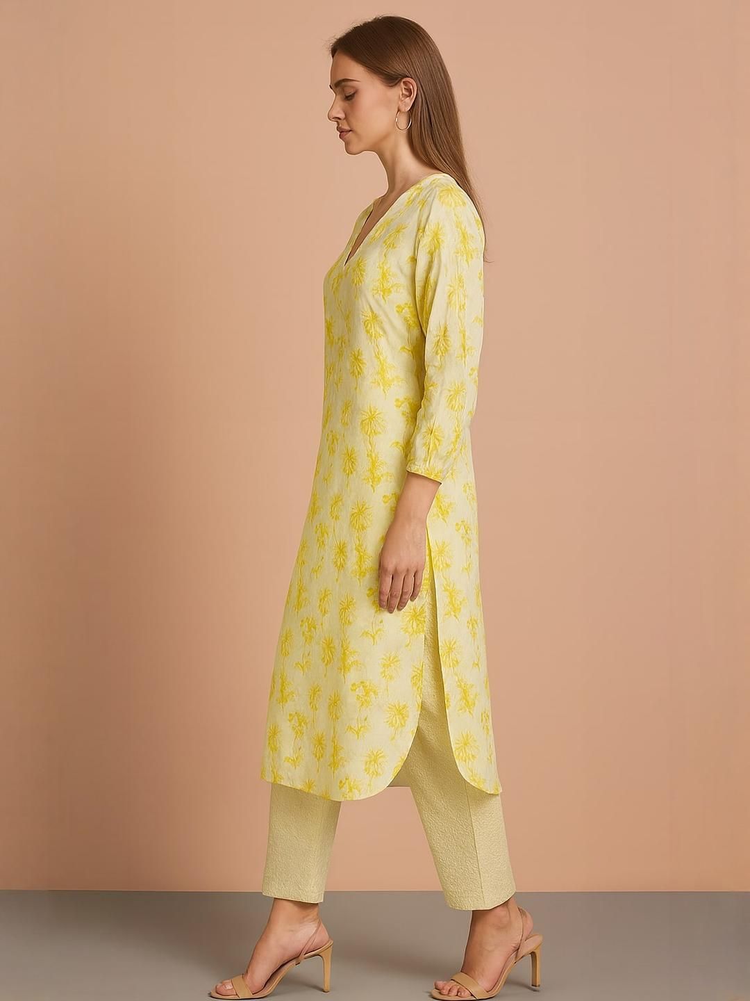 Sangria Women Yellow Cotton Blend Printed Kurta Sets