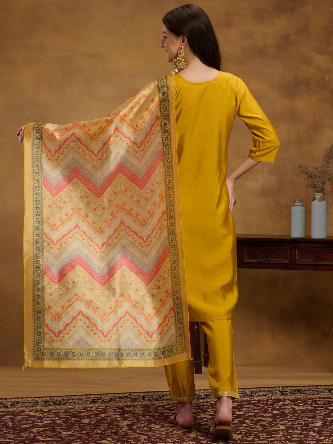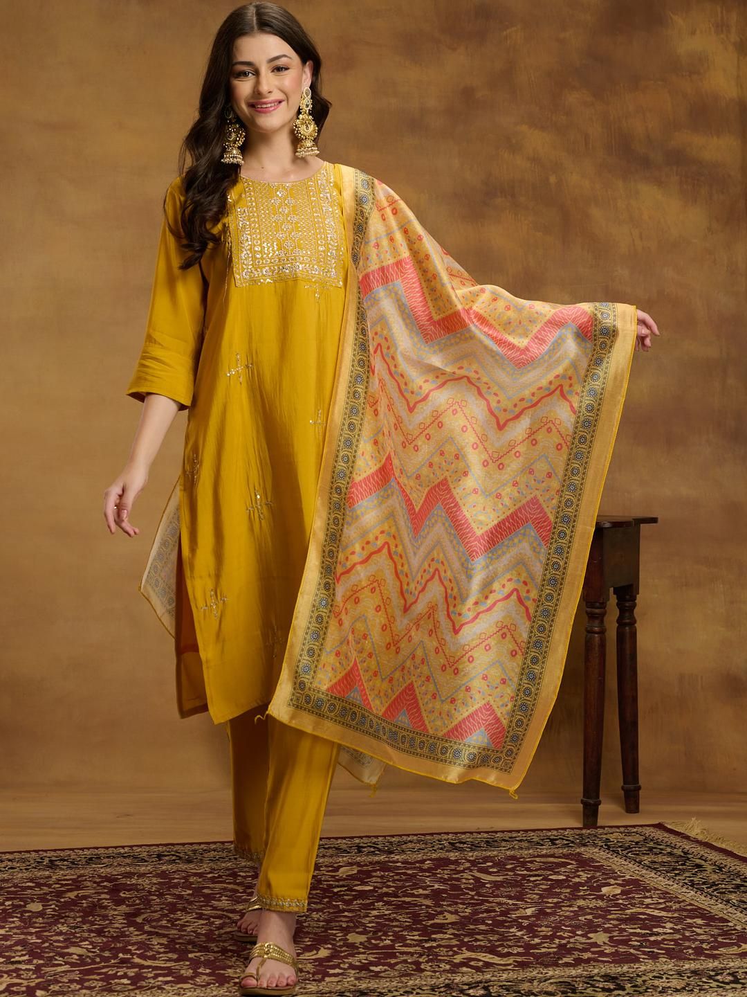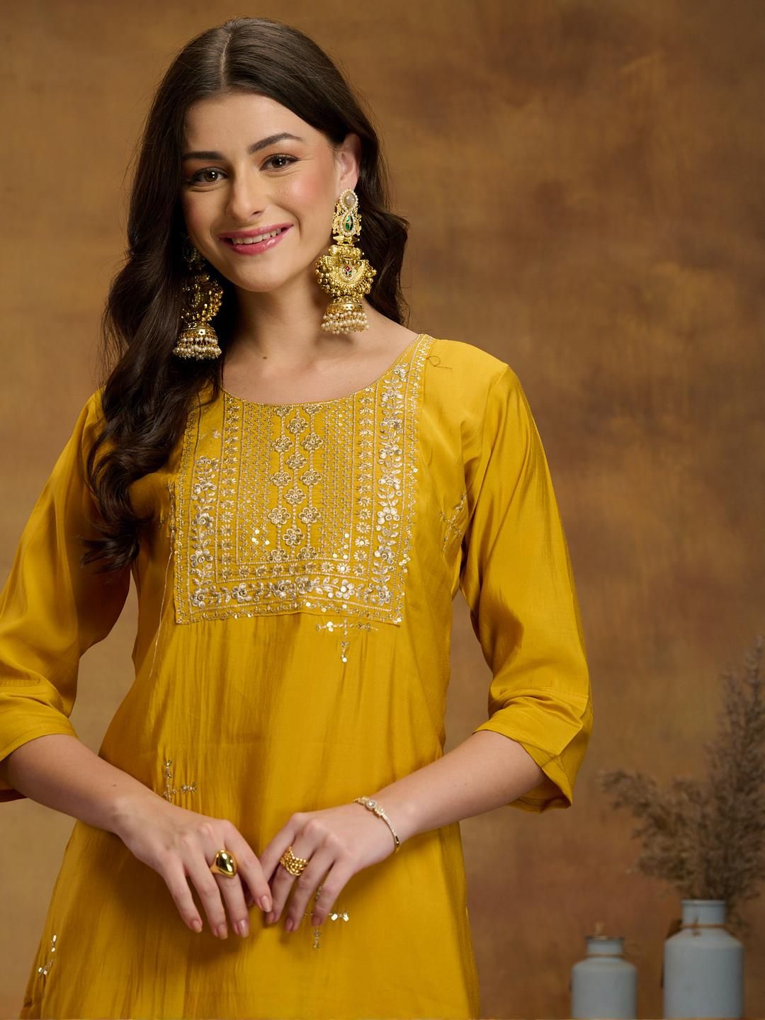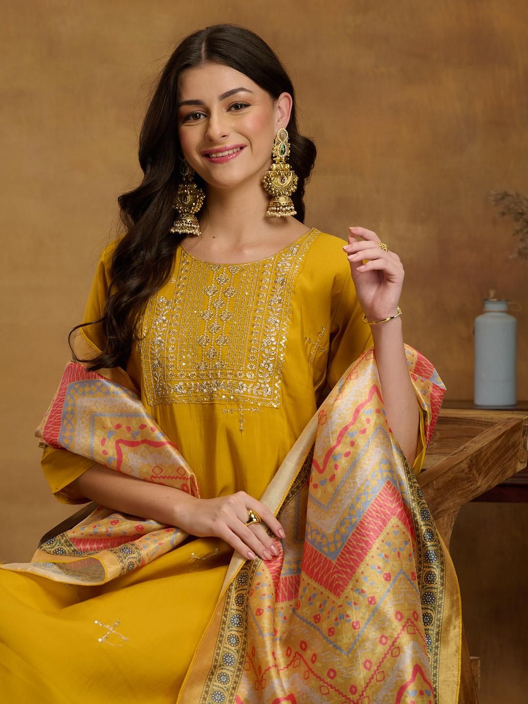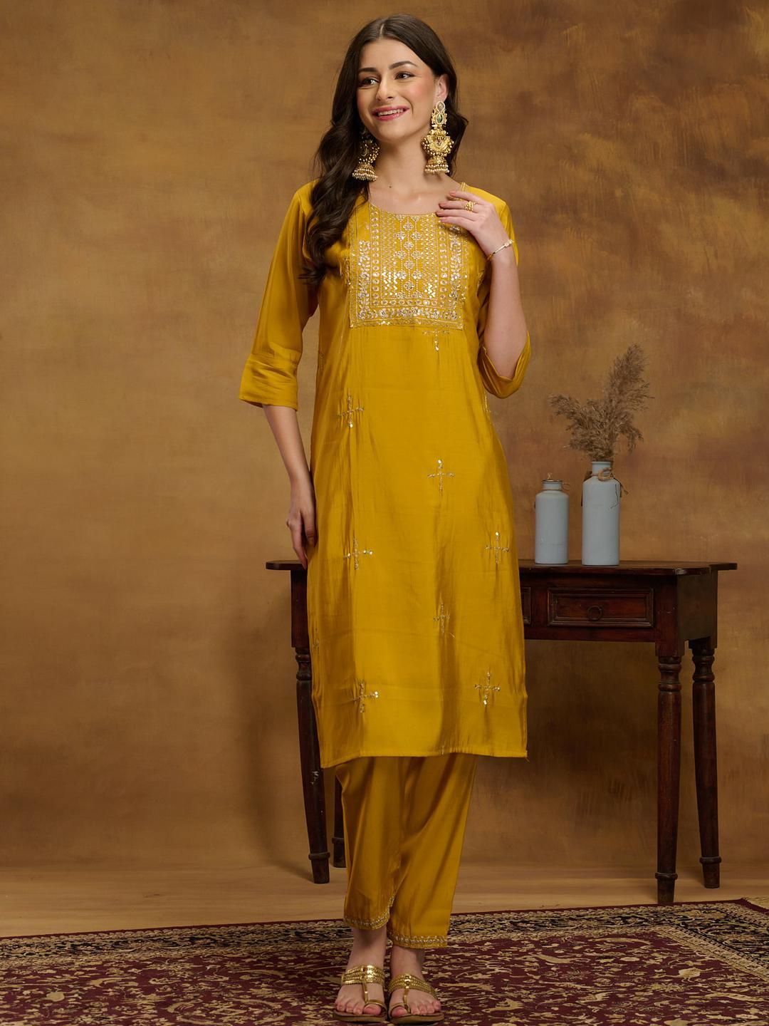 Sangria Women Yellow Silk Blend Festive Kurta Sets
