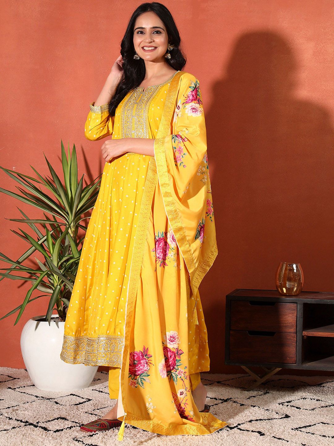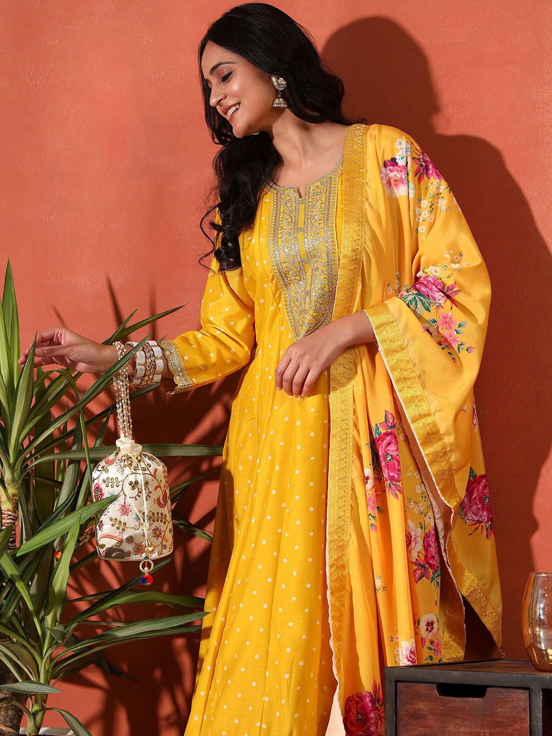 Sangria Women's Sequin Embroidered & Floral Printed Anarkali Kurta Sets