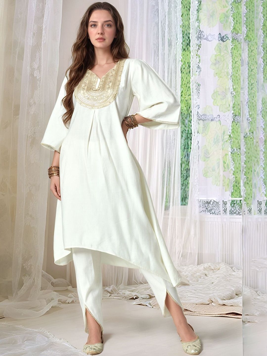 Buy this stylish Sangria Yoke Design Sequinned V-Neck A-Line Kurta with Dhoti & Dupatta Set at Marincart Nepal. This product offers great quality and value. Perfect for those looking for the latest trends in fashion. Get yours now at unbeatable prices.