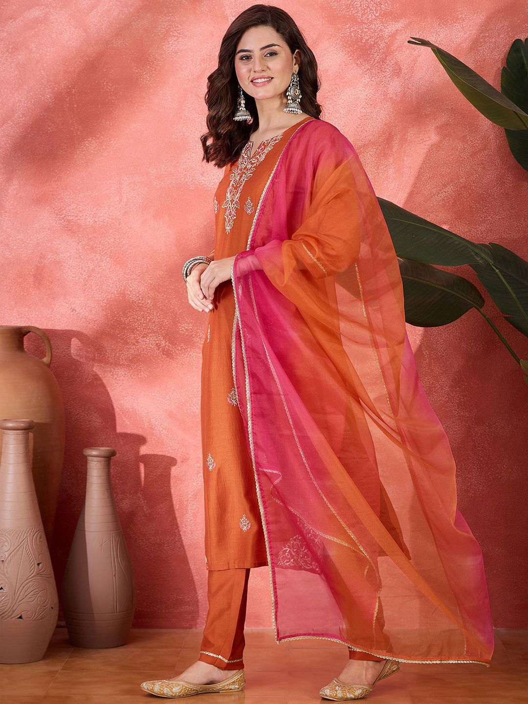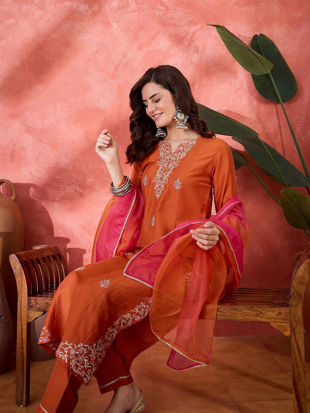Buy this stylish Sangria Zari Ethnic Motifs Embroidered Straight Kurta With Trouser & Dupatta at Marincart Nepal. This product offers great quality and value. Perfect for those looking for the latest trends in fashion. Get yours now at unbeatable prices.