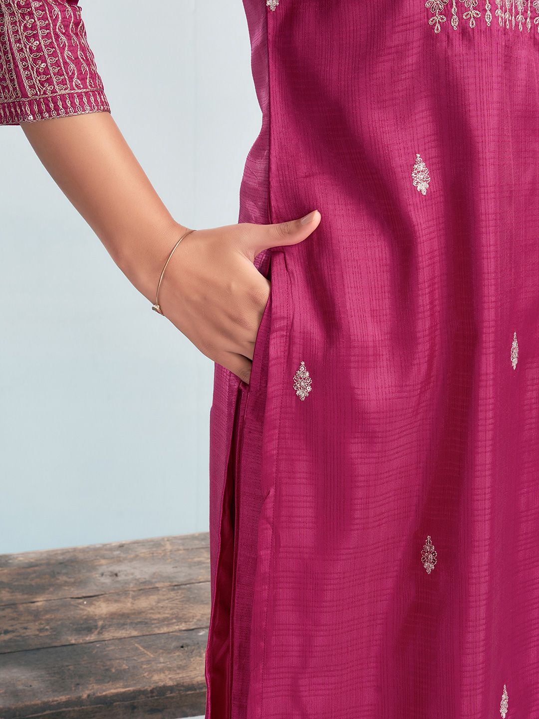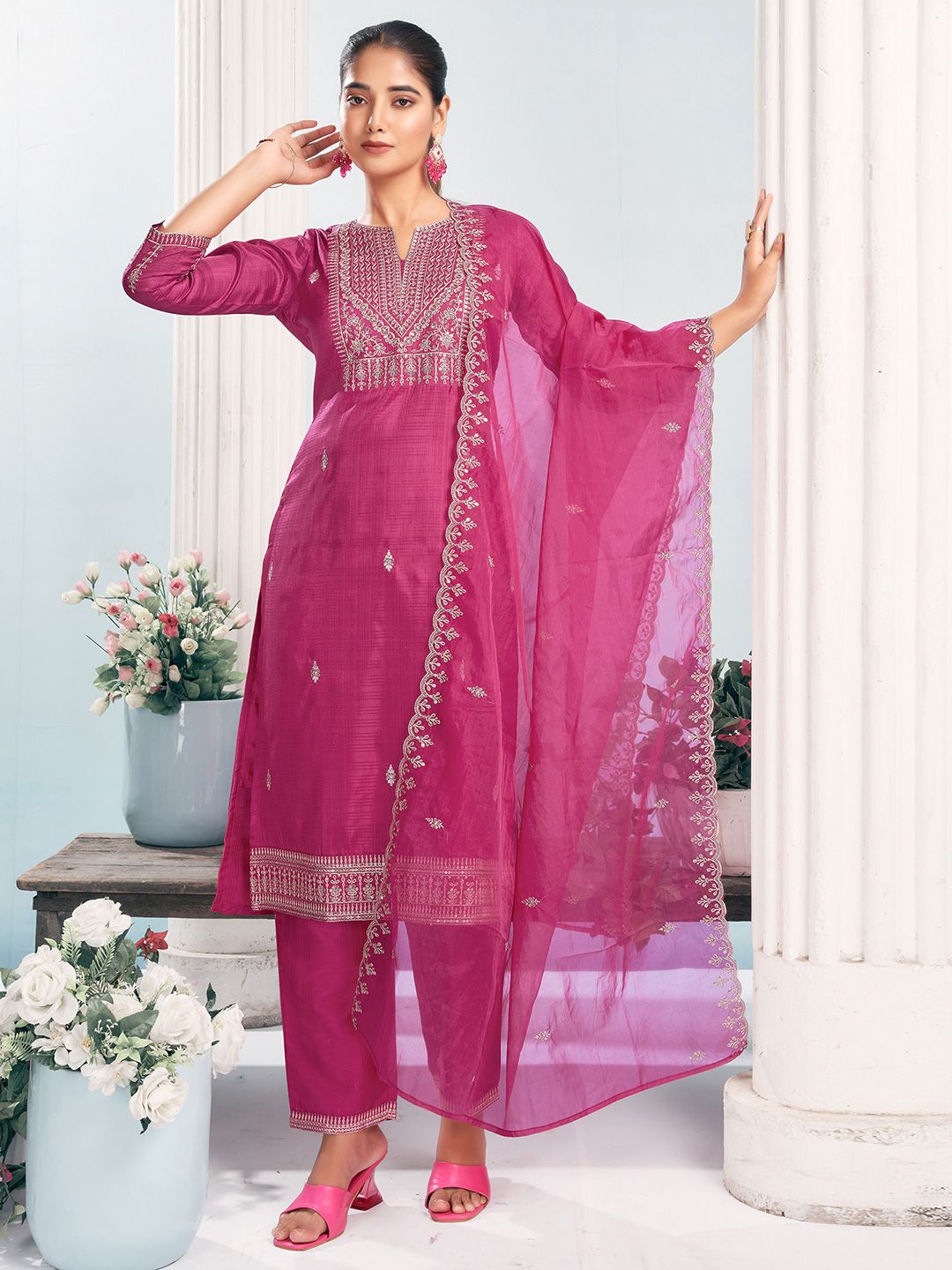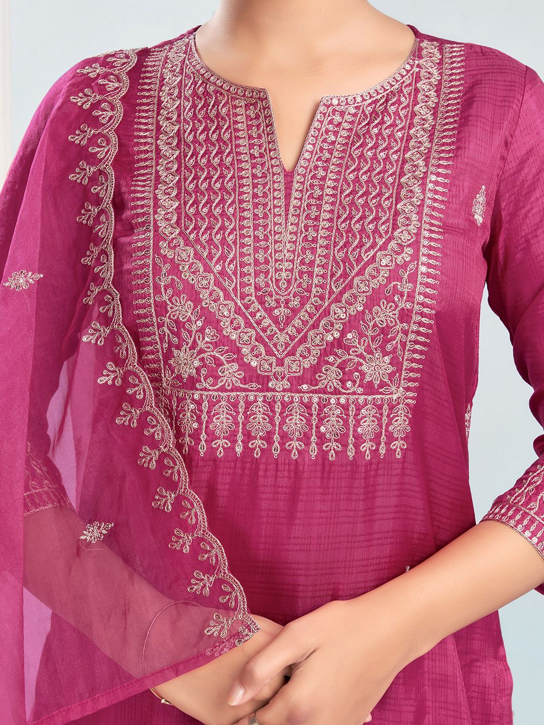 SANISA Ethnic Motifs Embroidered Sequinned Kurta With Trousers & Dupatta