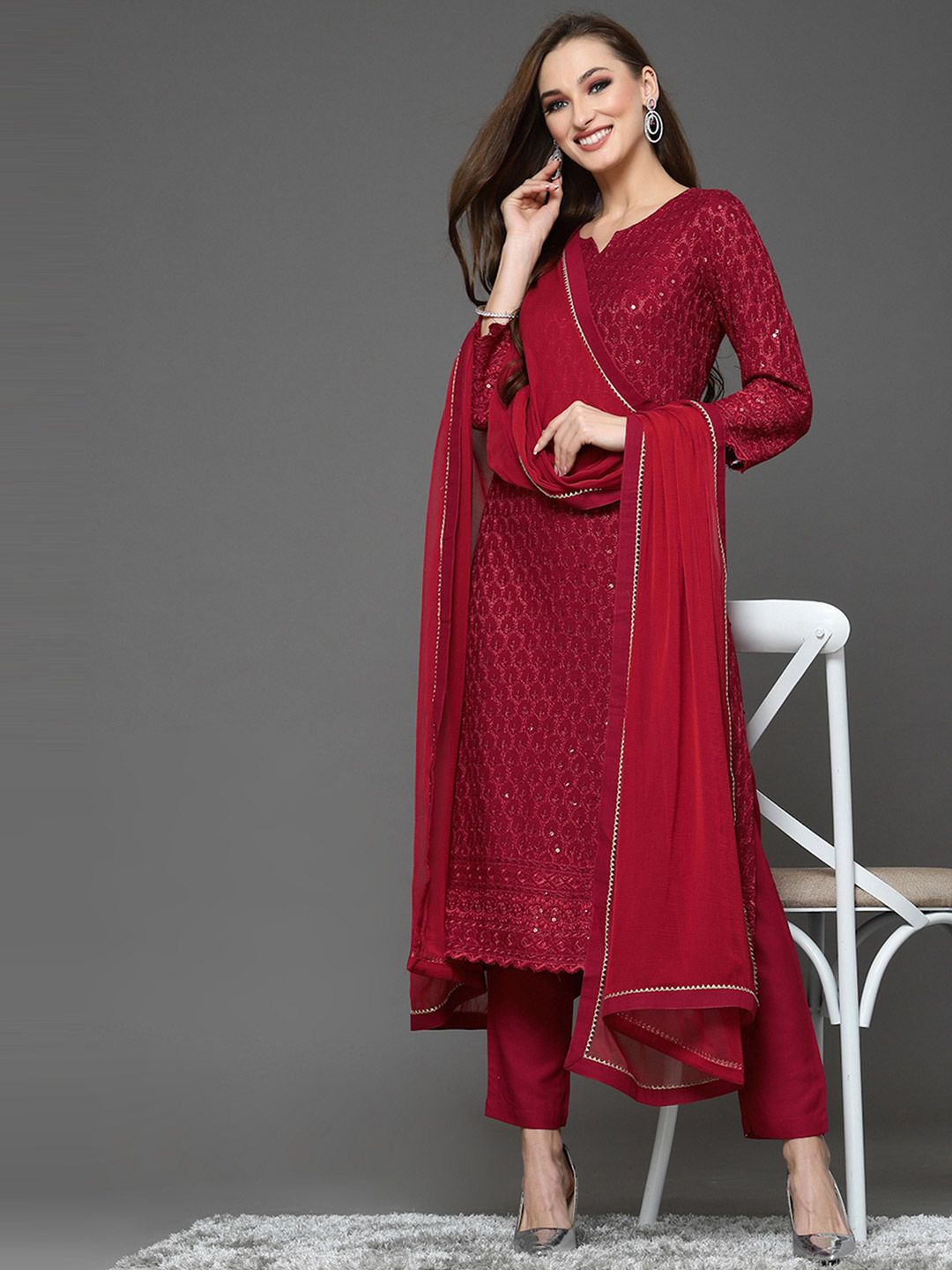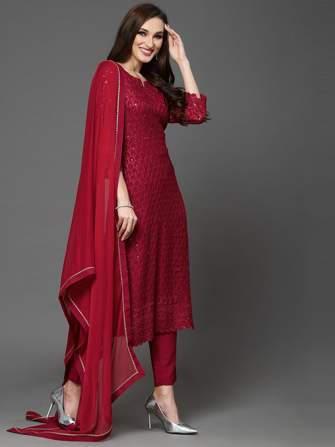 Buy this stylish SANISA Floral Embroidered Notch Neck Sequinned Straight Kurta With Trouser And Dupatta at Marincart Nepal. This product offers great quality and value. Perfect for those looking for the latest trends in fashion. Get yours now at unbeatable prices.