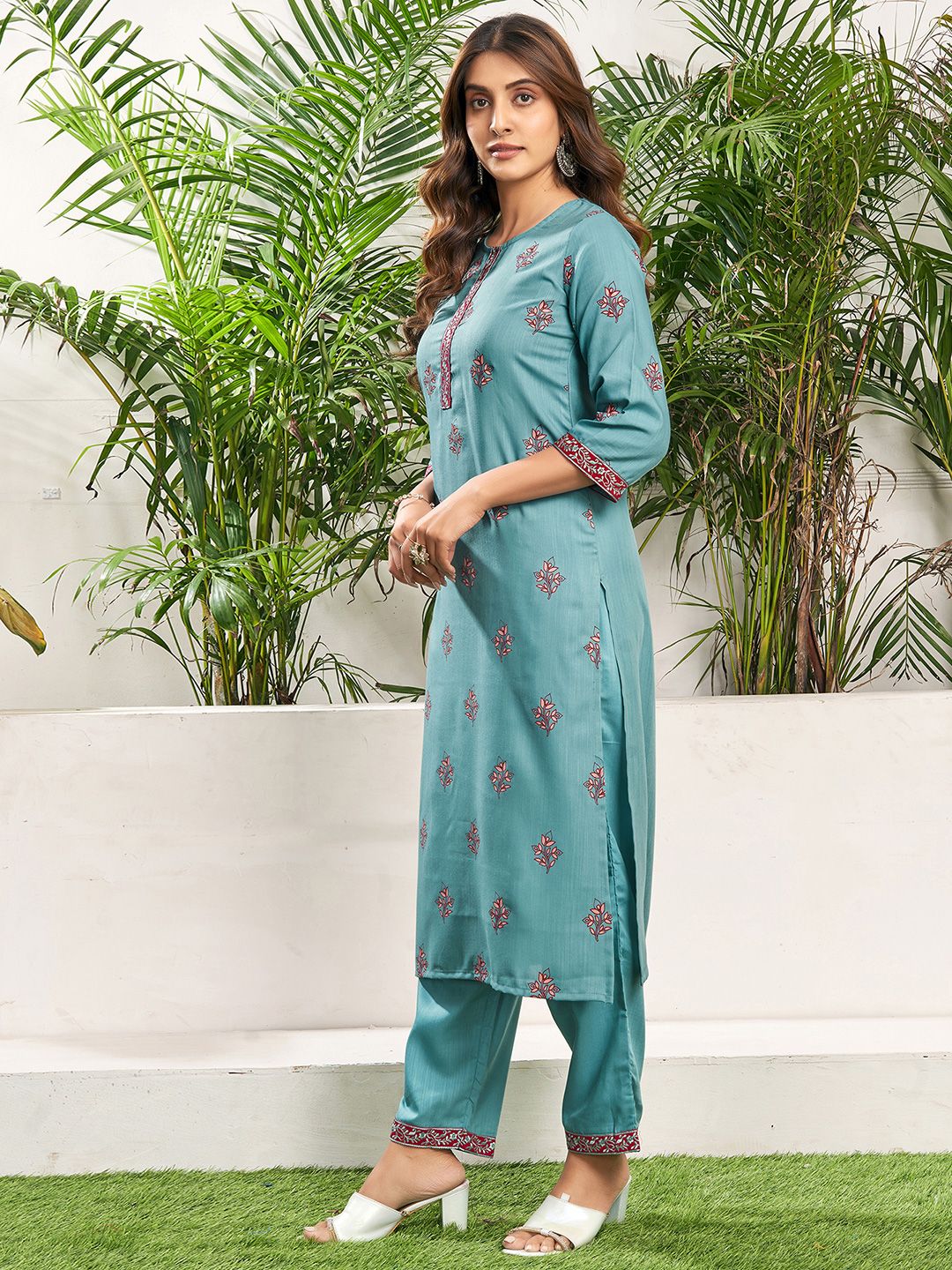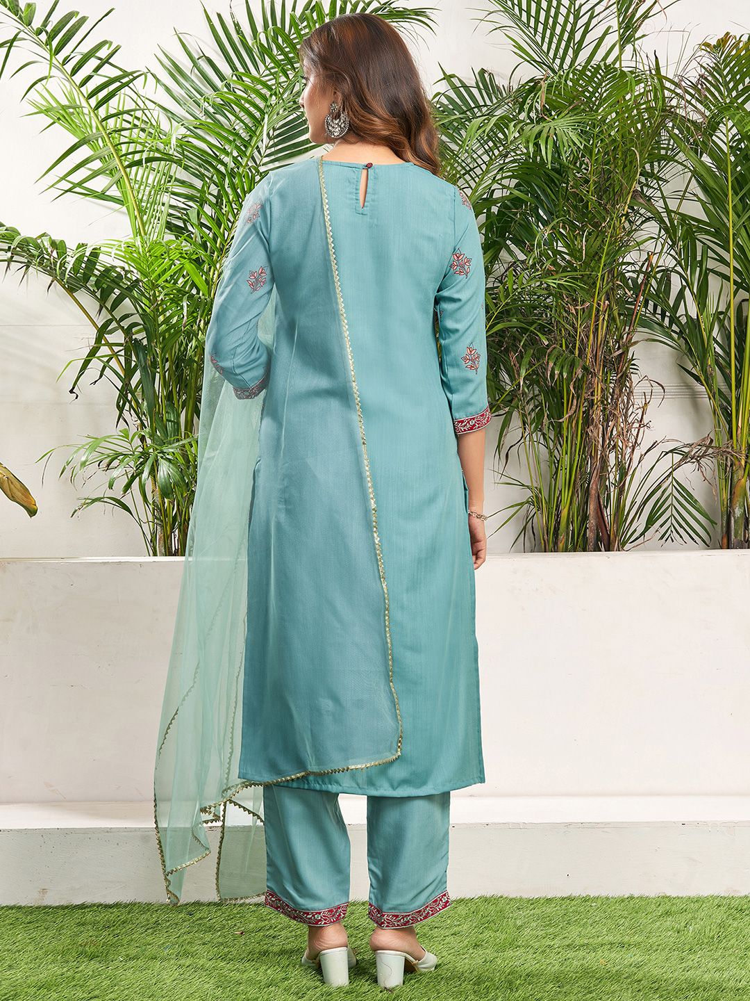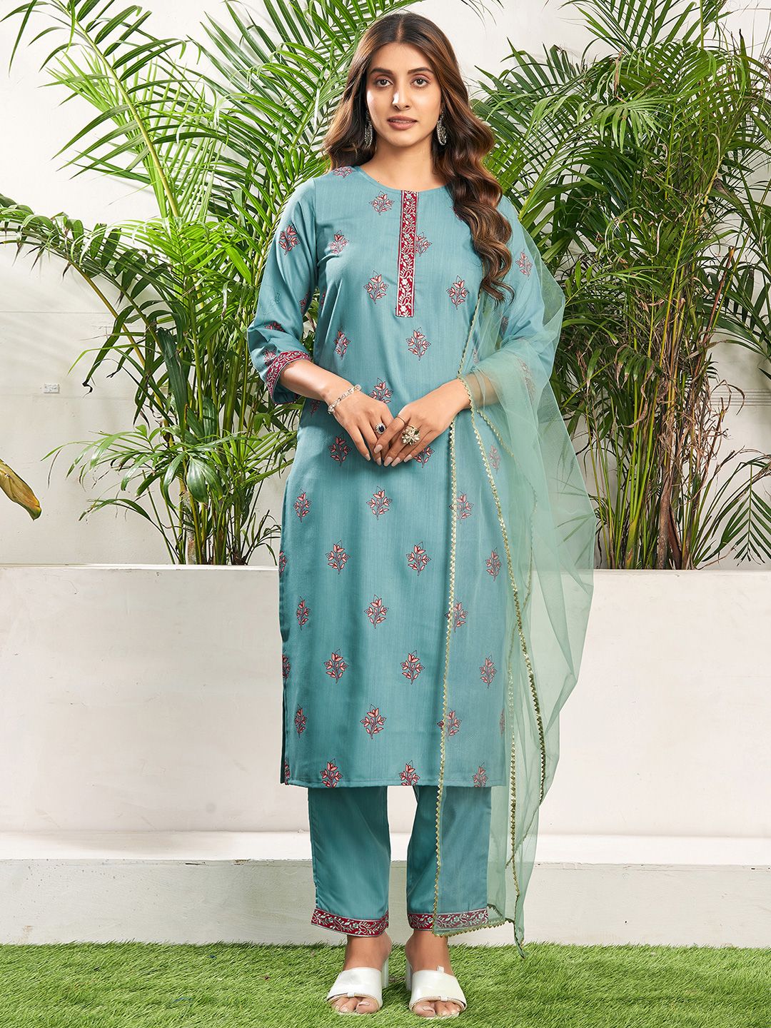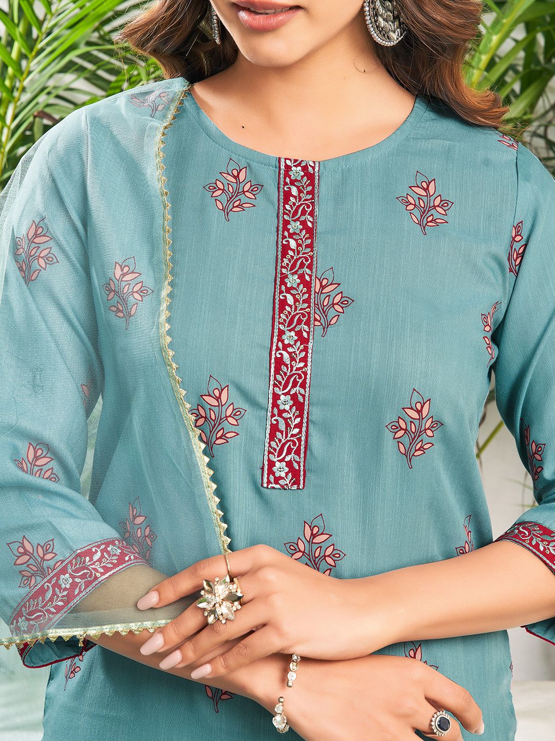 SANISA Floral Printed Straight Kurta With Trousers & Dupatta
