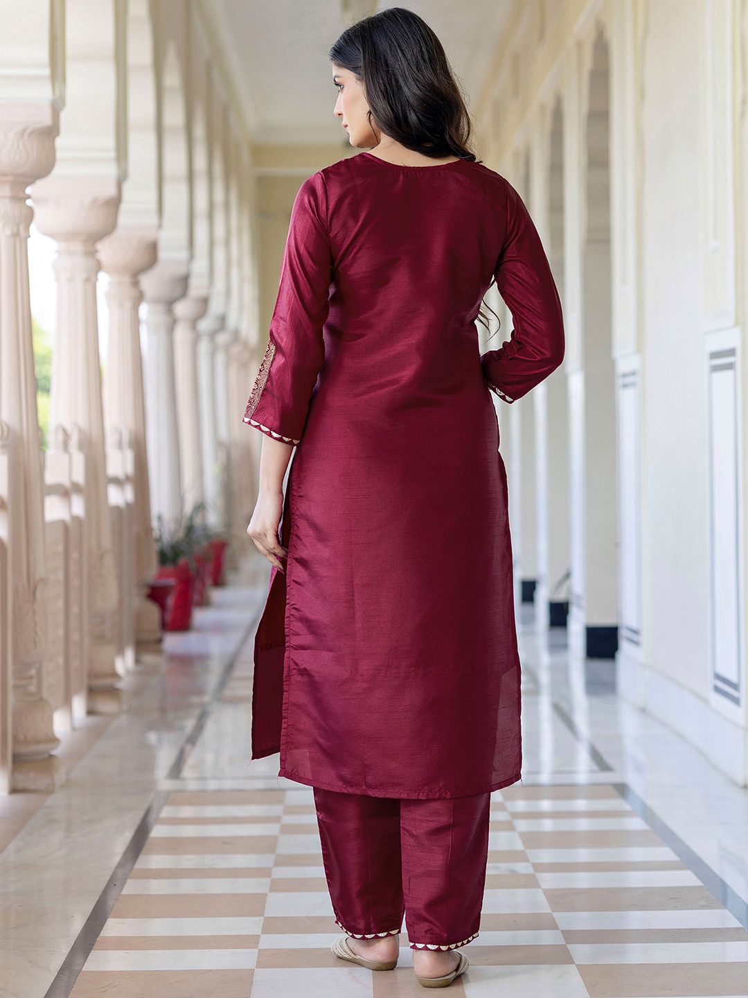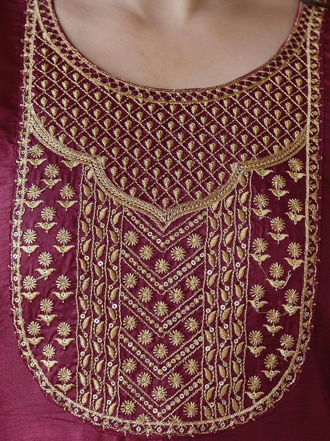 SANISA Floral Yoke Design Sequinned Straight Kurta With Trousers & Dupatta