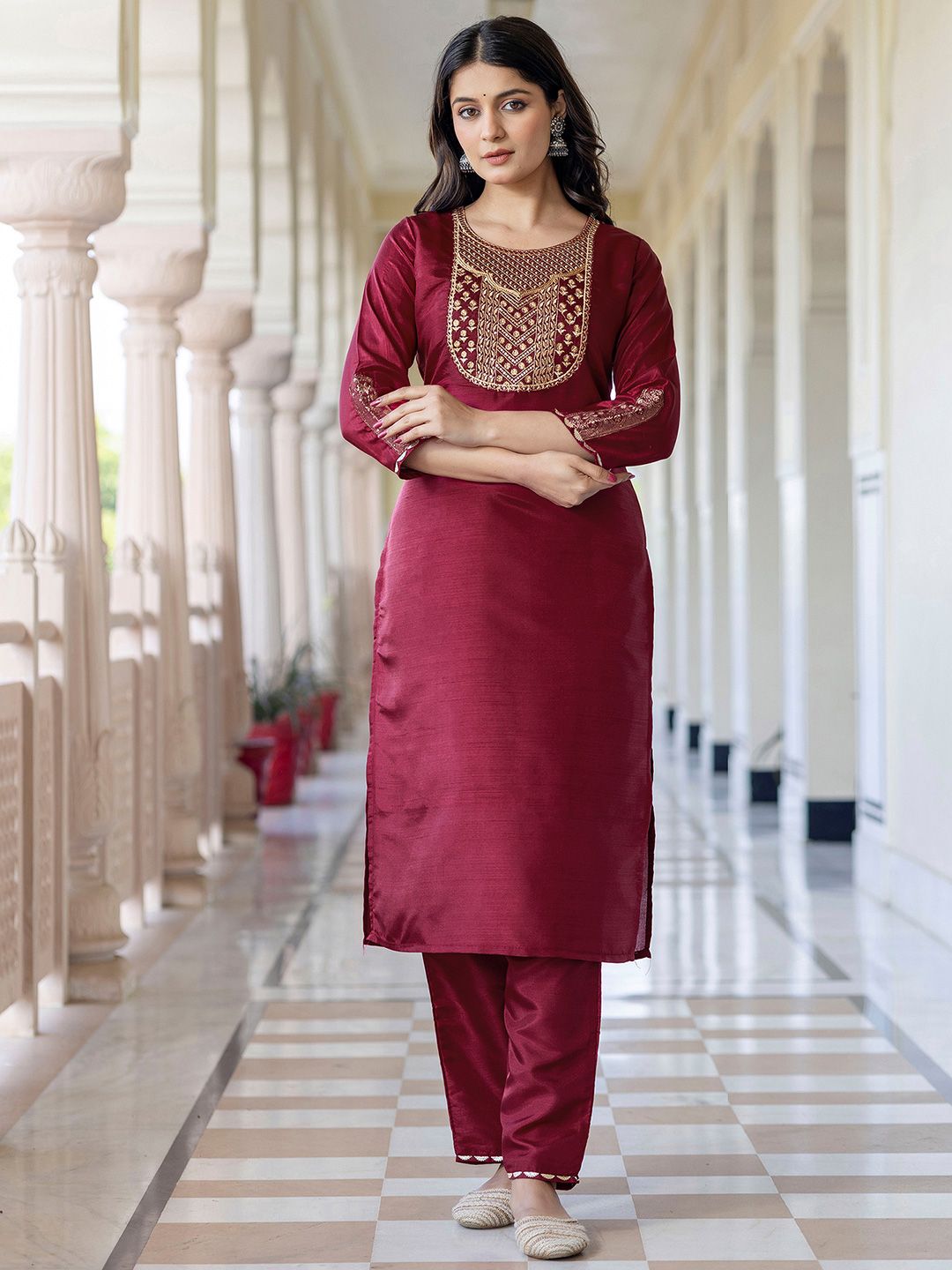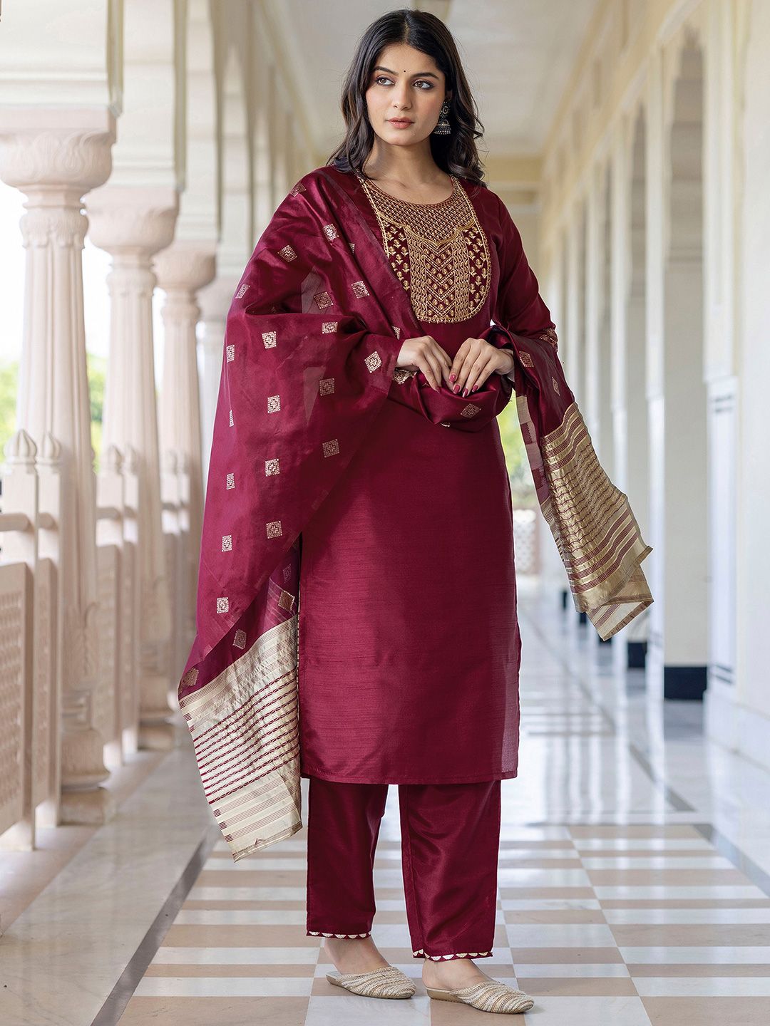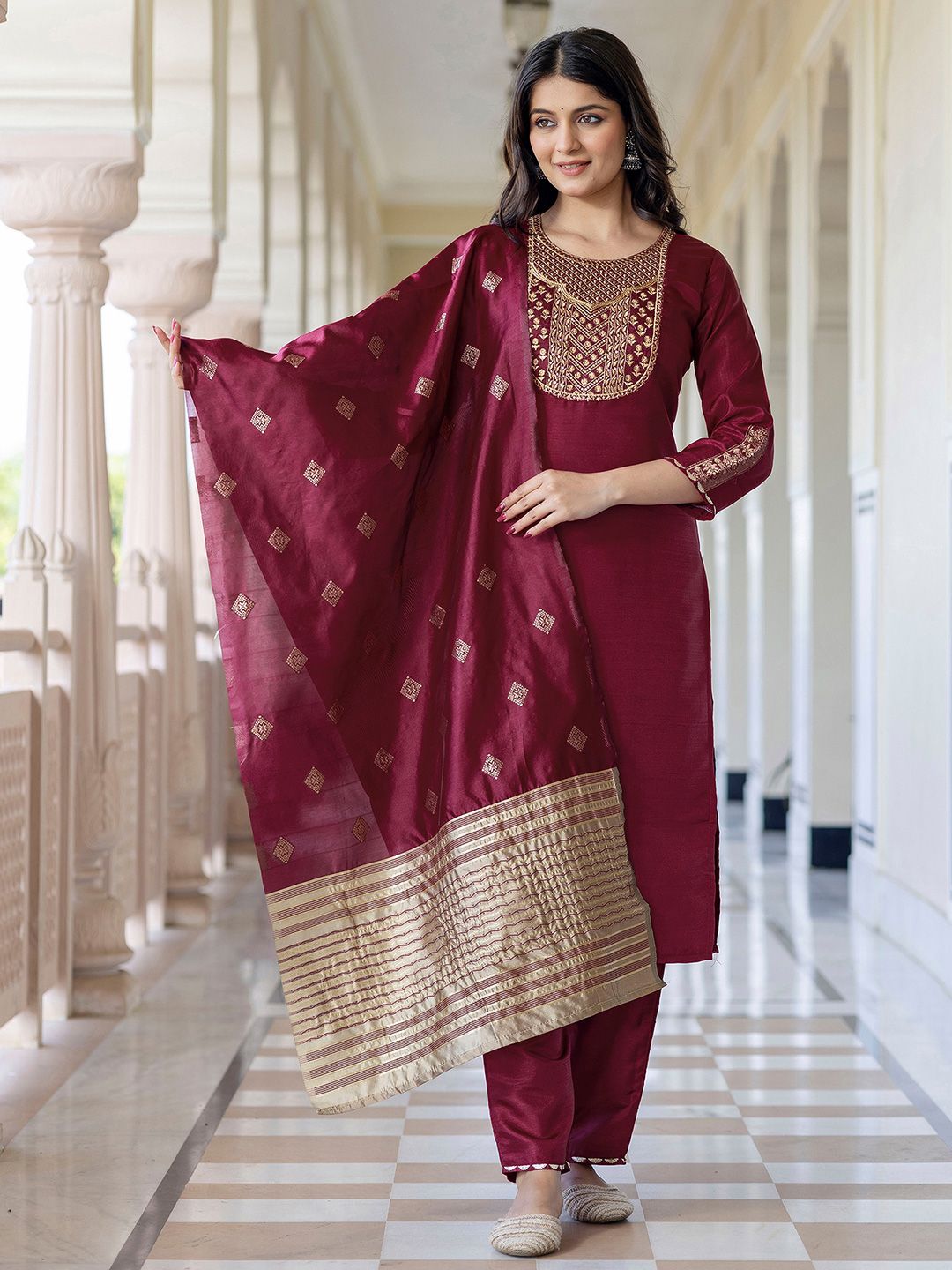 Buy this stylish SANISA Floral Yoke Design Sequinned Straight Kurta With Trousers & Dupatta at Marincart Nepal. This product offers great quality and value. Perfect for those looking for the latest trends in fashion. Get yours now at unbeatable prices.