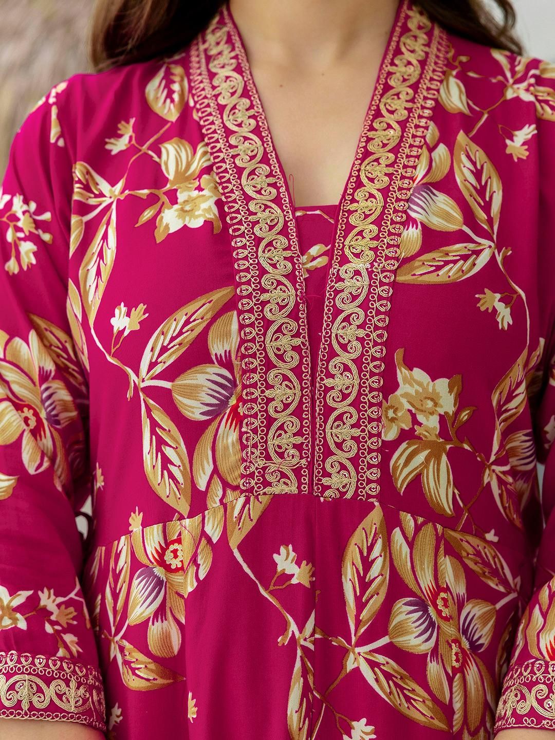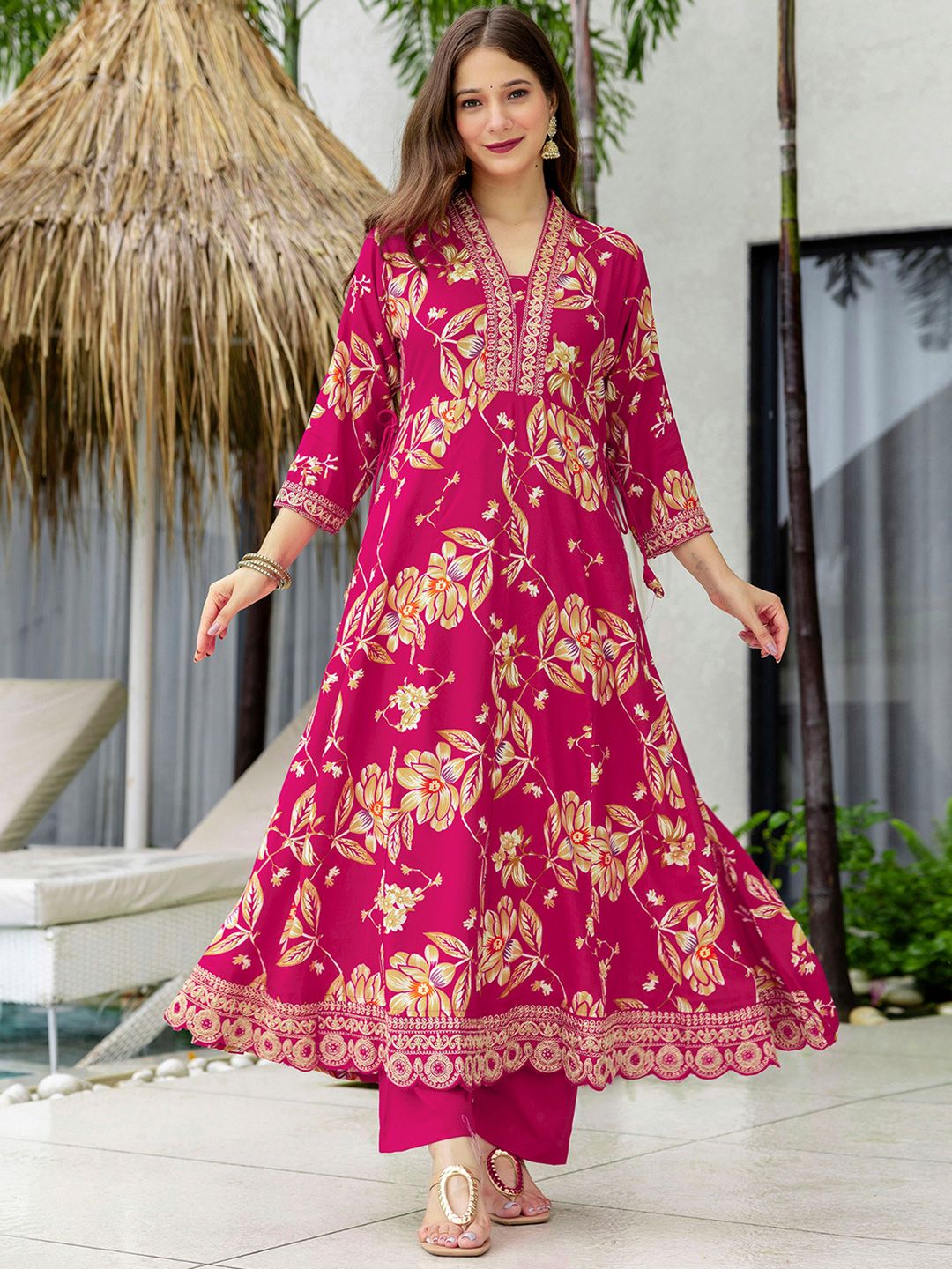 SANISA Women Cotton Blend Printed Anarkali Kurta Trousers With Dupatta