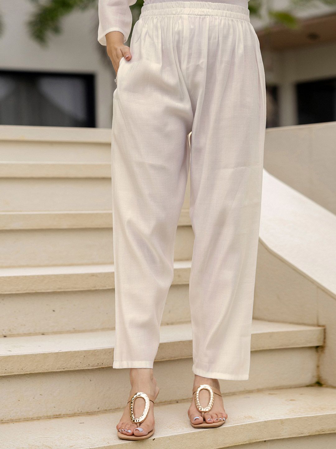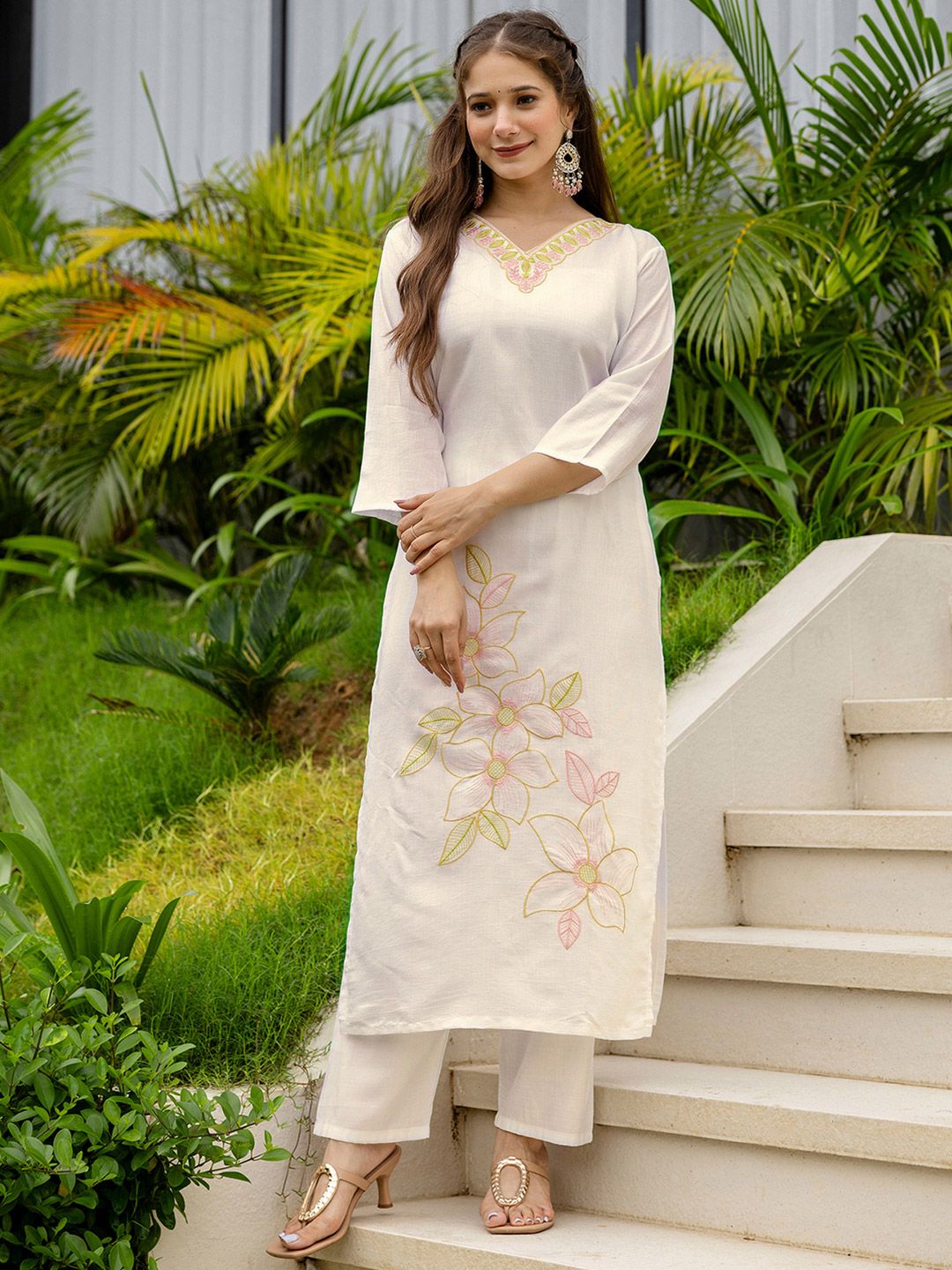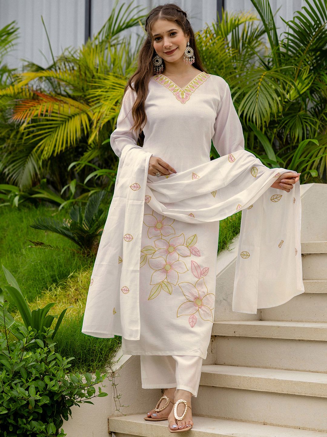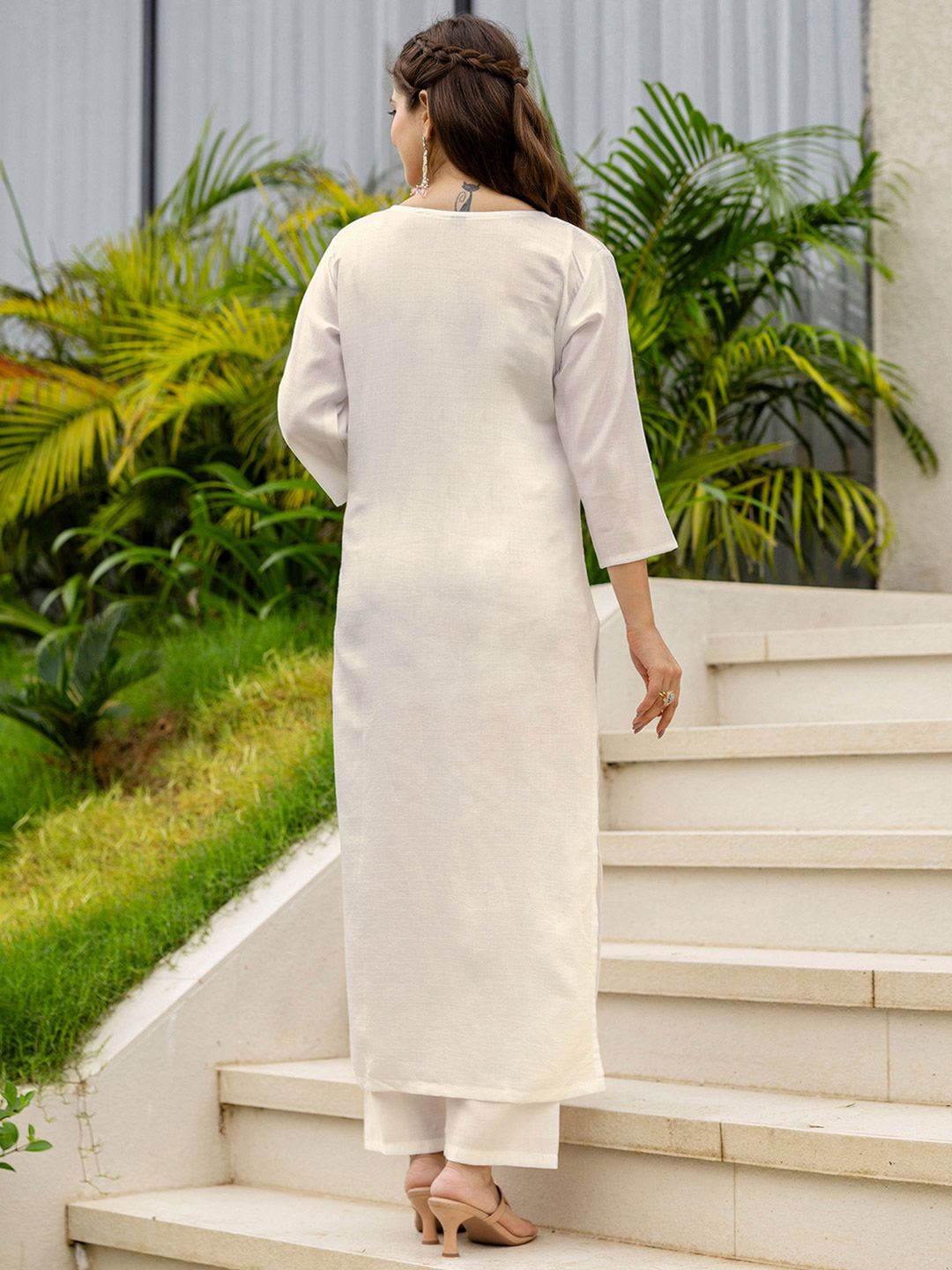 SANISA Women Cream Cotton Blend Kurta Sets