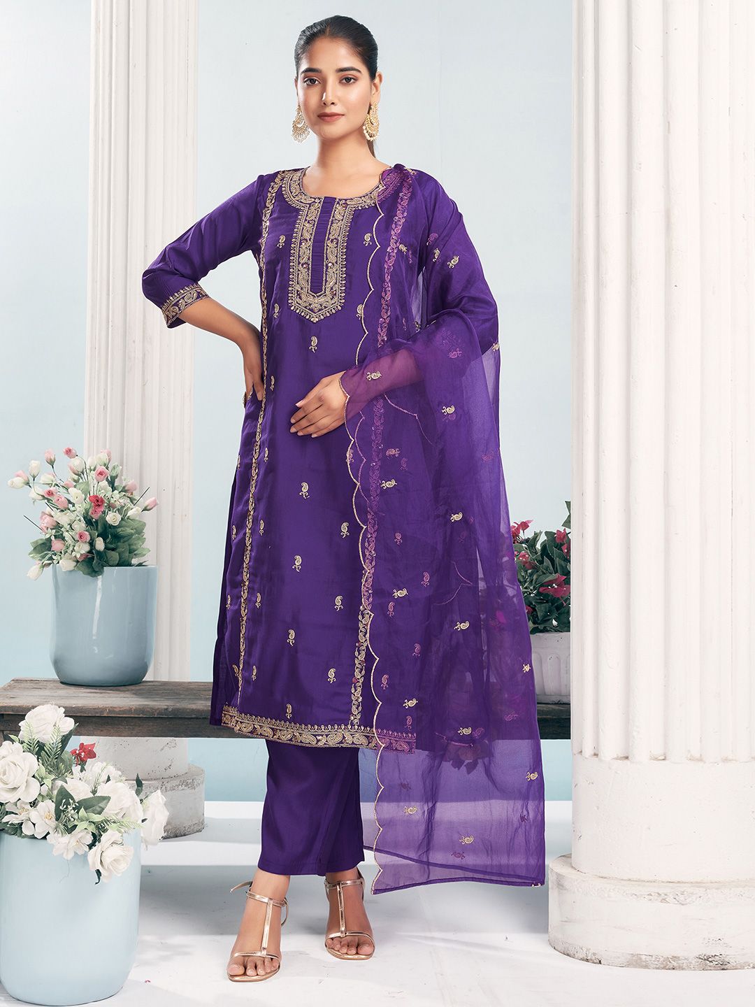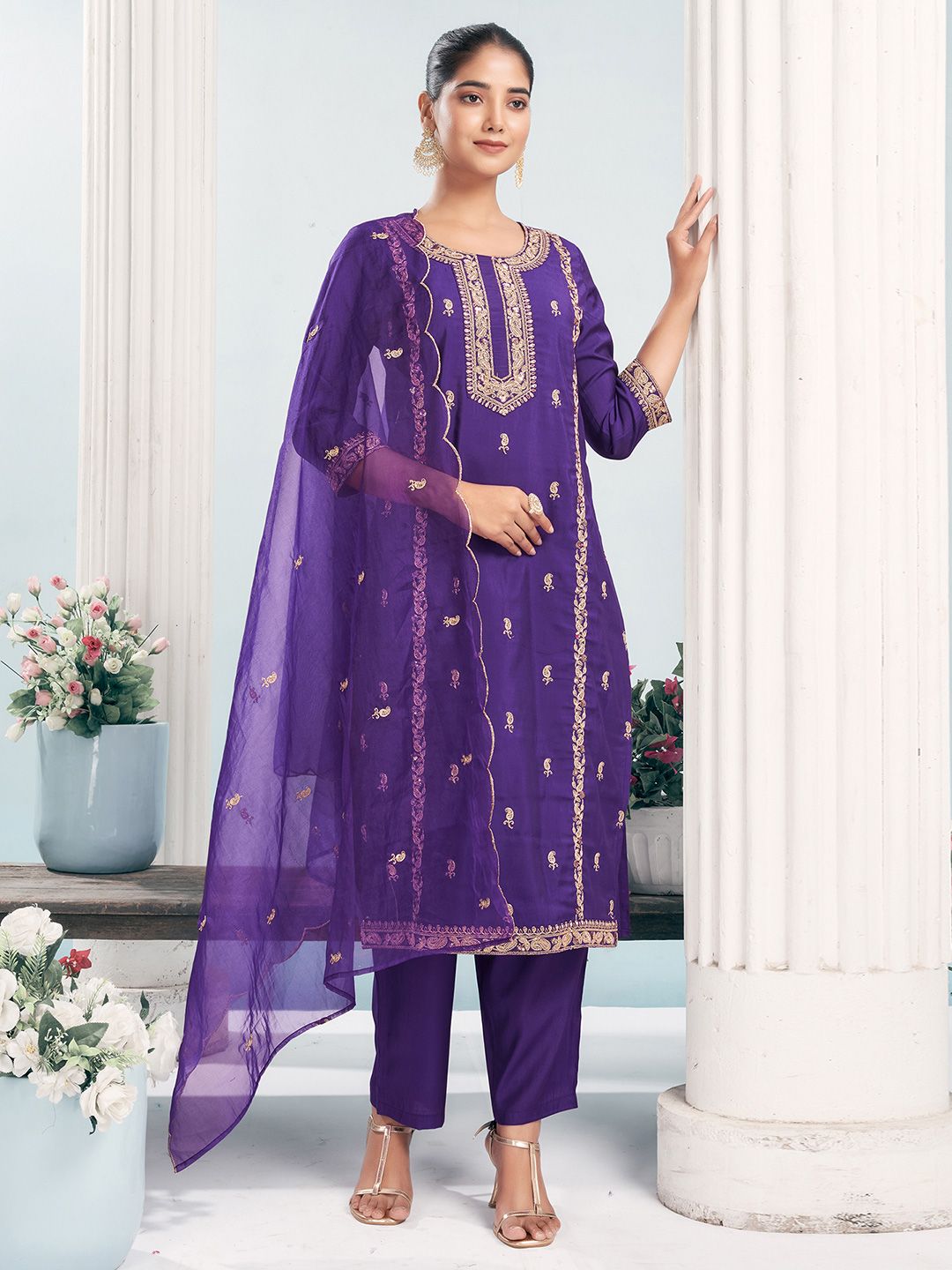 SANISA Women Ethnic Motifs Embroidered Kurta with Trousers & Dupatta
