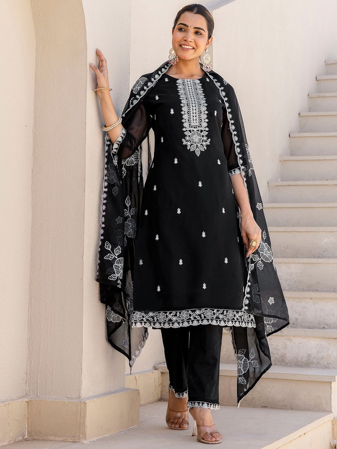 SANISA Women Ethnic Motifs Embroidered Regular Kurta with Trousers & Dupatta