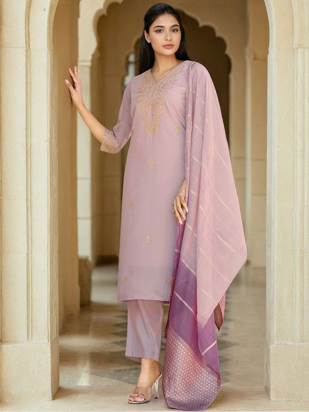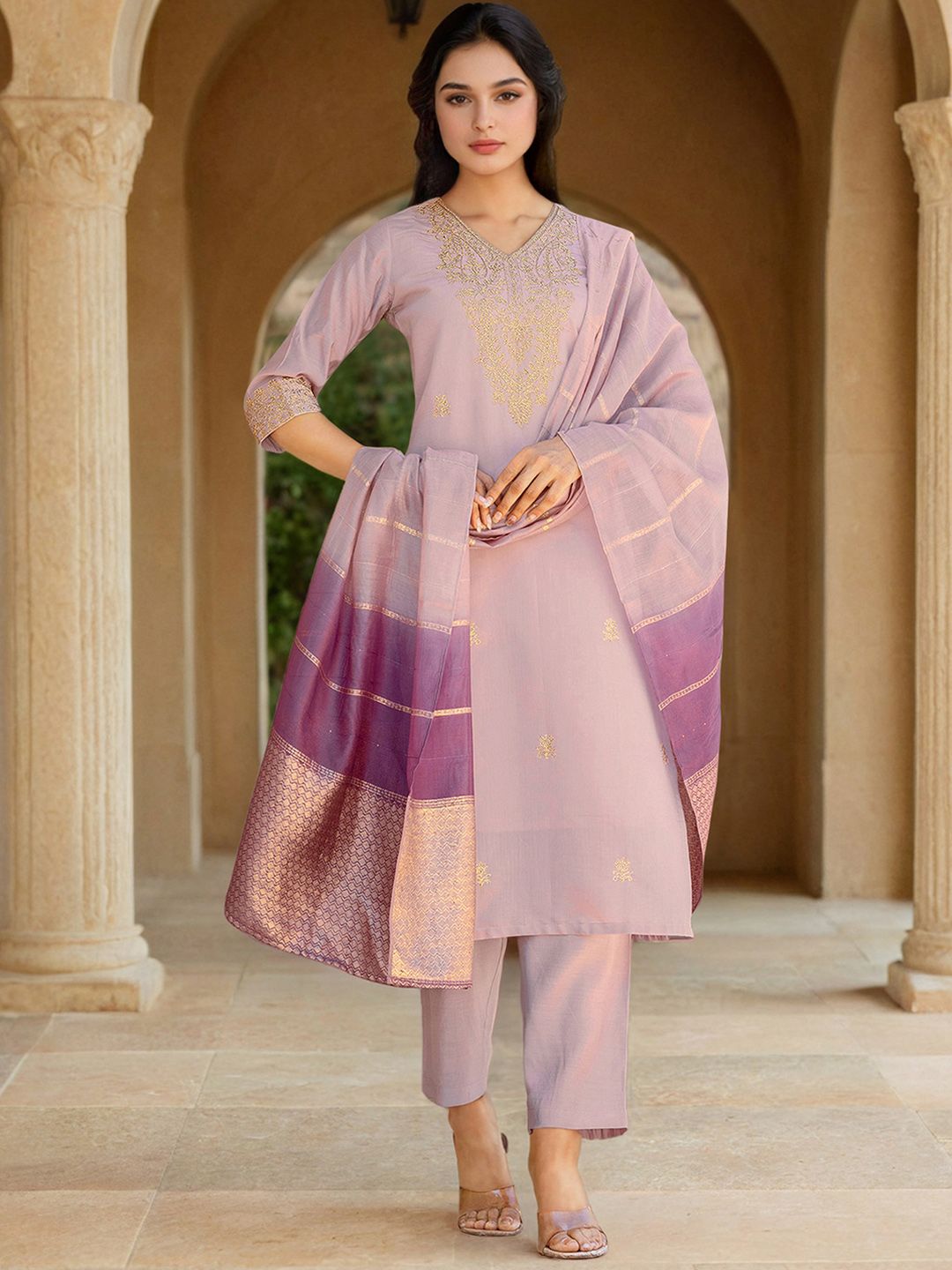 SANISA Women Ethnic Motifs Embroidered Thread Work Kurta with Trousers & With Dupatta