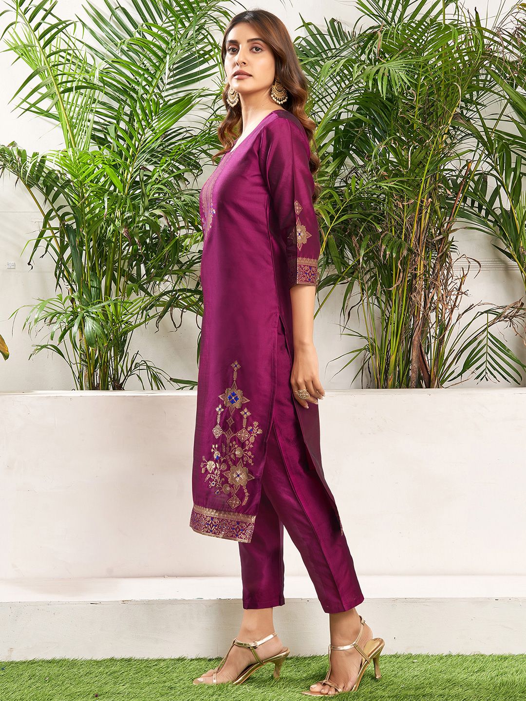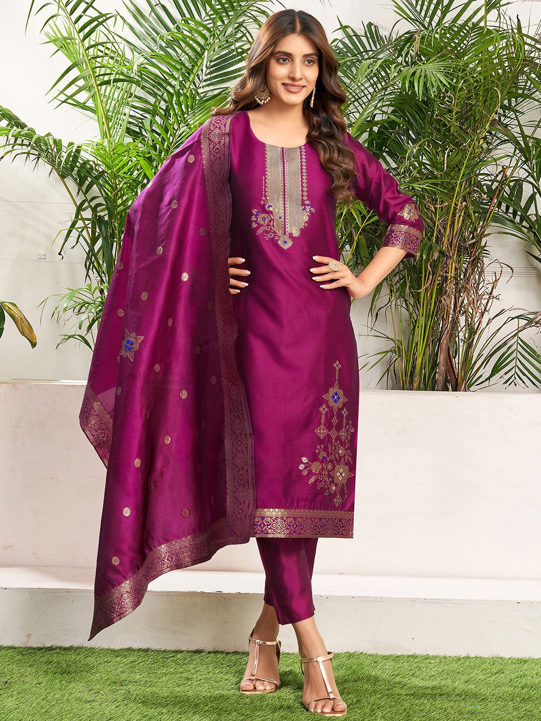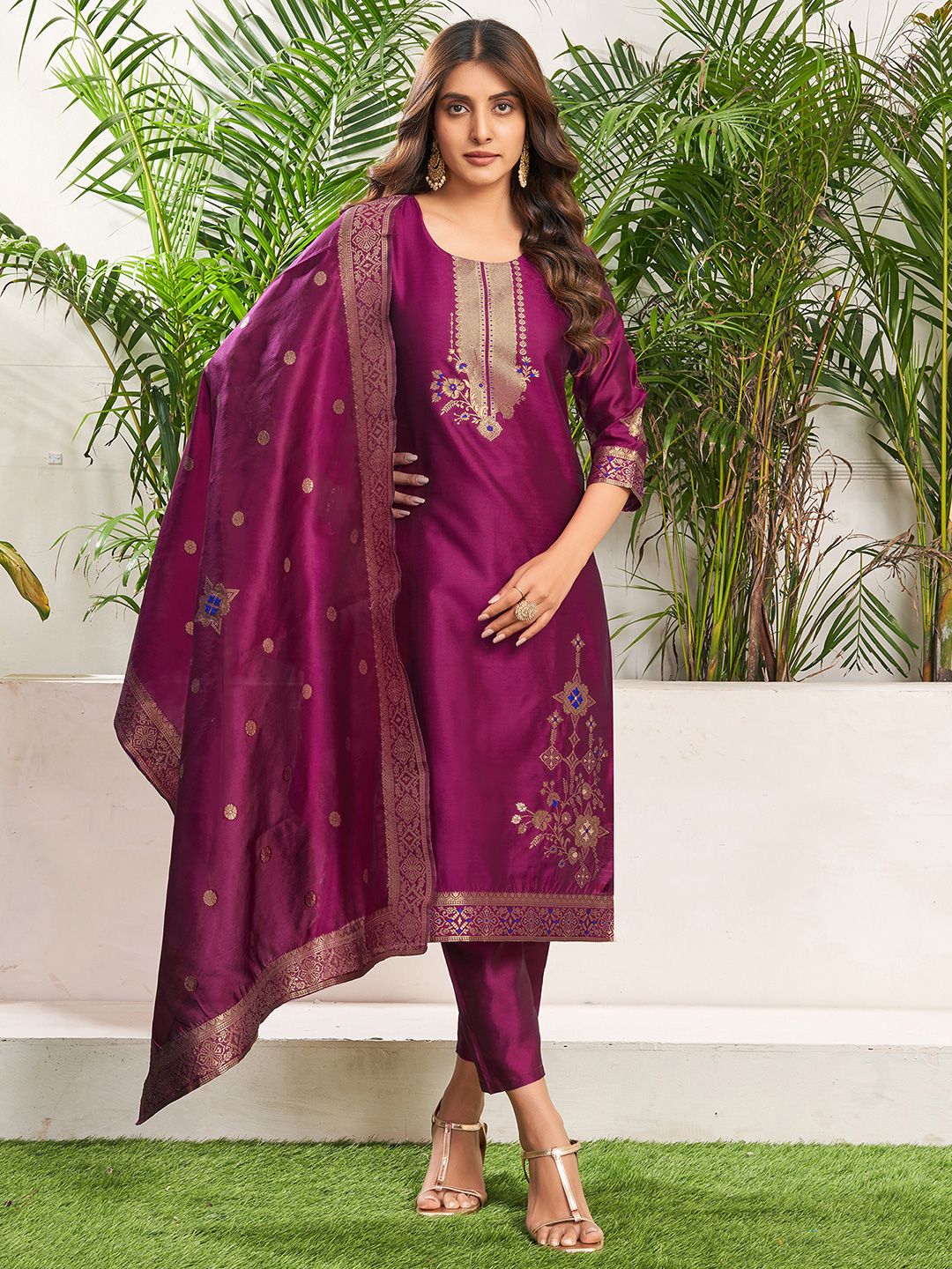SANISA Women Ethnic Motifs Woven Design Kurta with Trousers & Dupatta