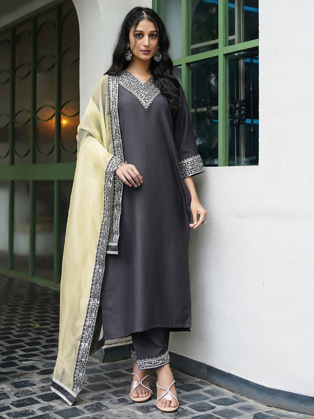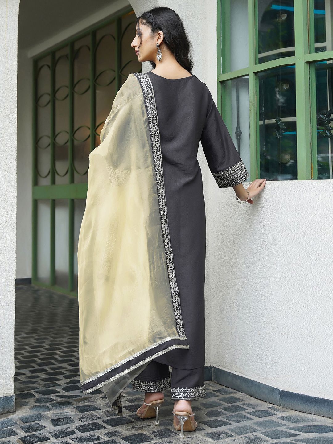 SANISA Women Ethnic Motifs Yoke Design Kurta with Trousers & Dupatta
