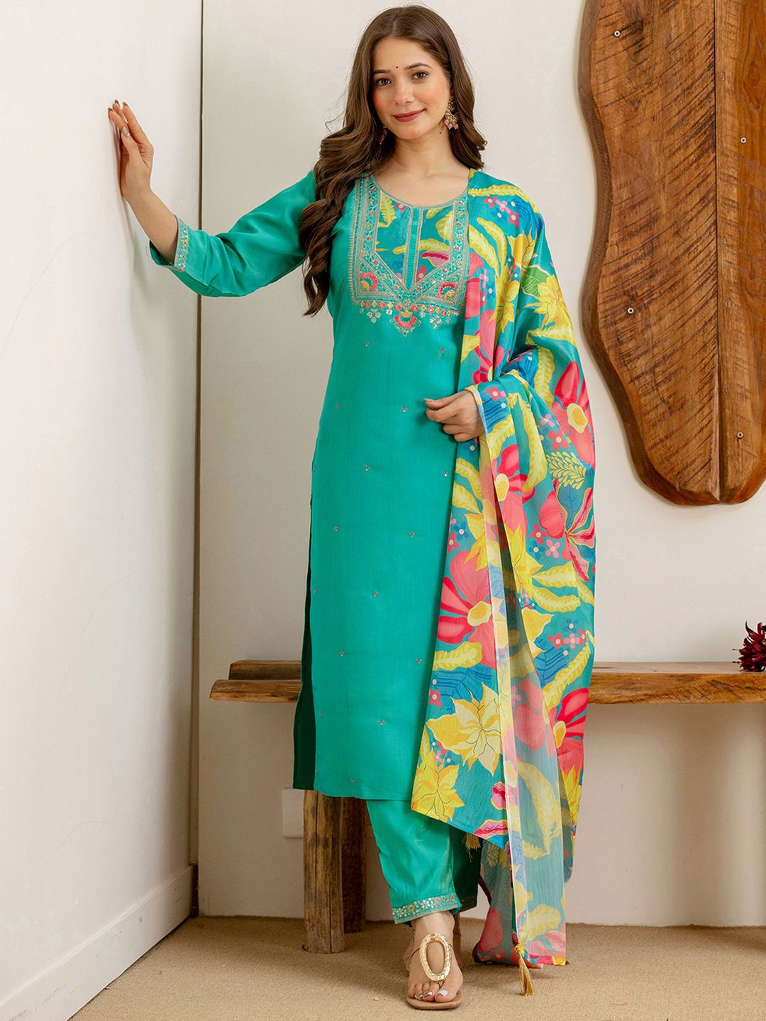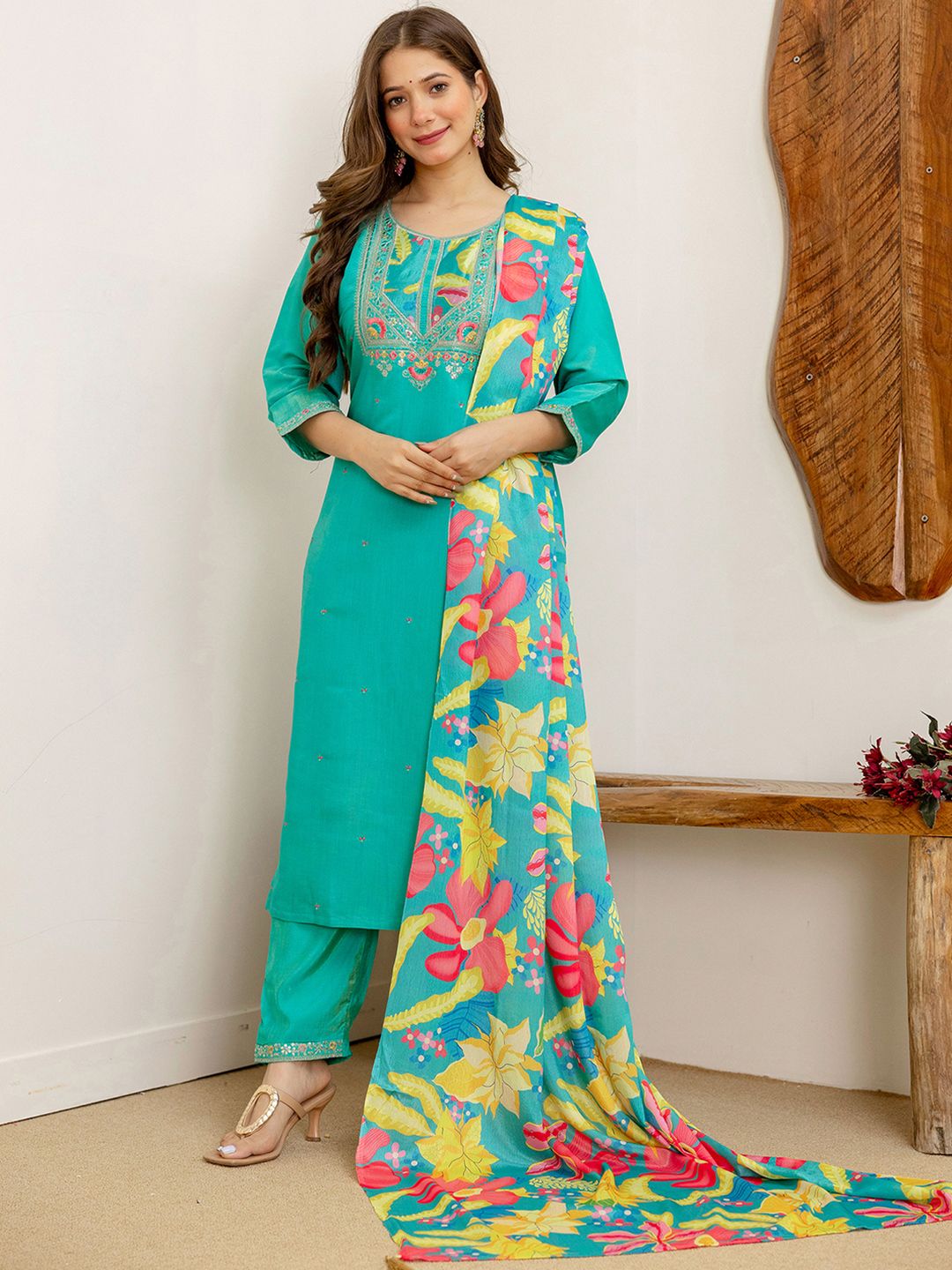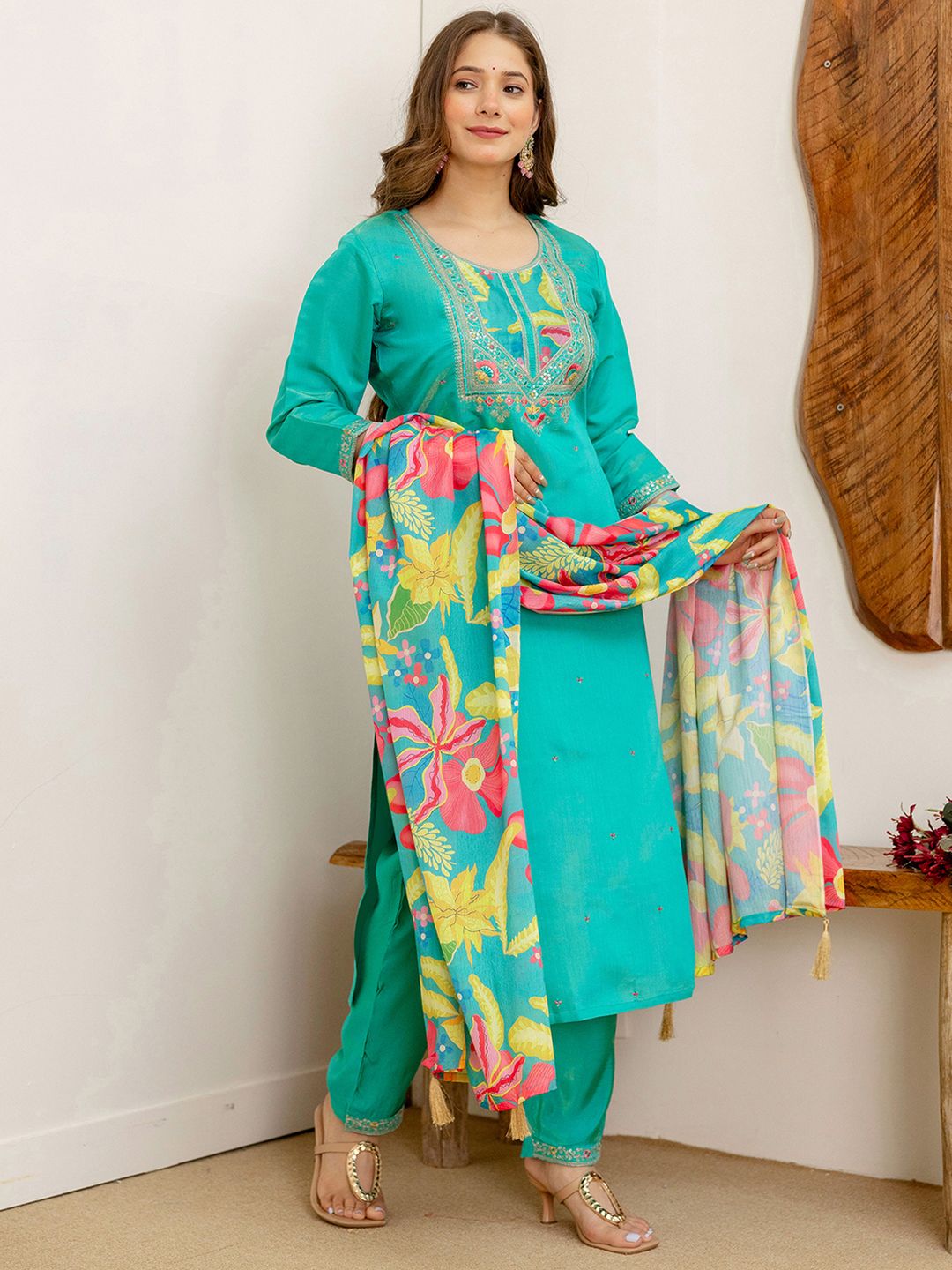 SANISA Women Floral Embroidered Kurta with Churidar & Dupatta