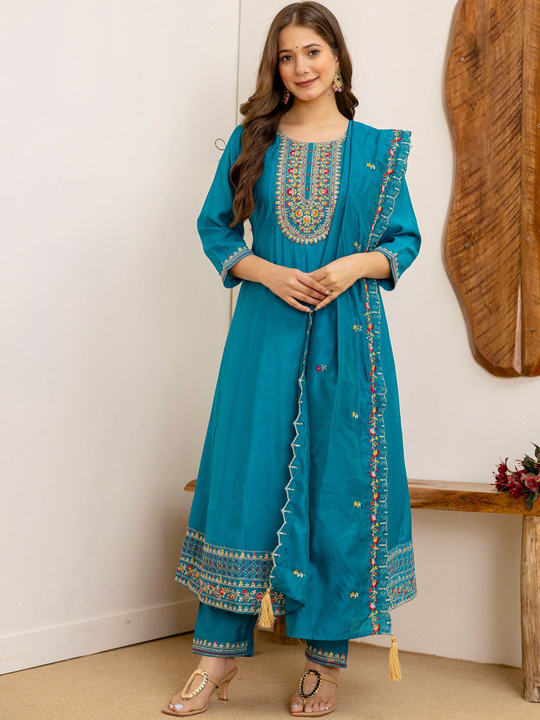 SANISA Women Floral Embroidered Regular Sequinned Kurta & Trousers With Dupatta