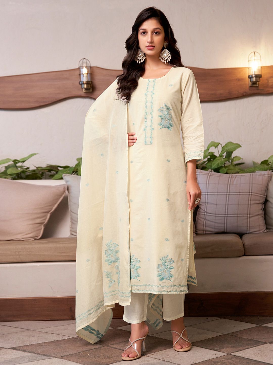 SANISA Women Floral Woven Design Kurta with Trousers & Dupatta