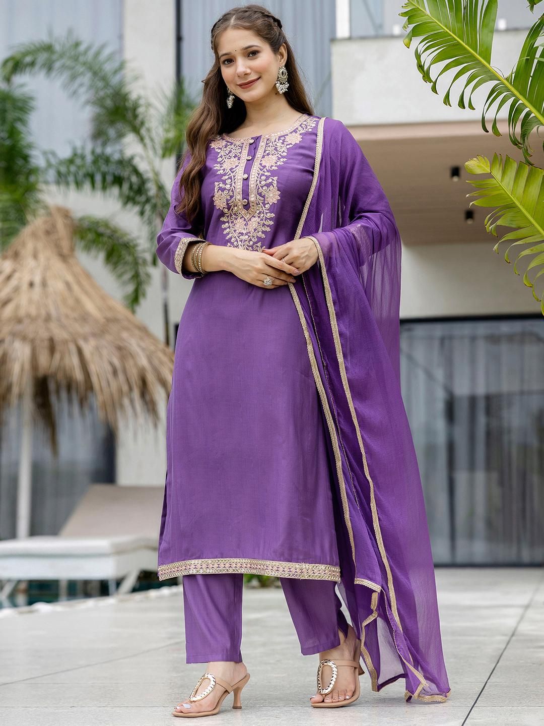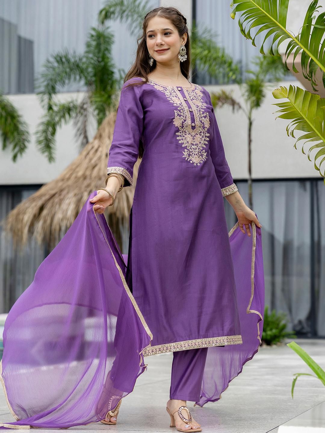 Buy this stylish SANISA Women Lavender Ethnic Motifs Embroidered Round Neck Regular Sequinned Kurta Sets at Marincart Nepal. This product offers great quality and value. Perfect for those looking for the latest trends in fashion. Get yours now at unbeatable prices.