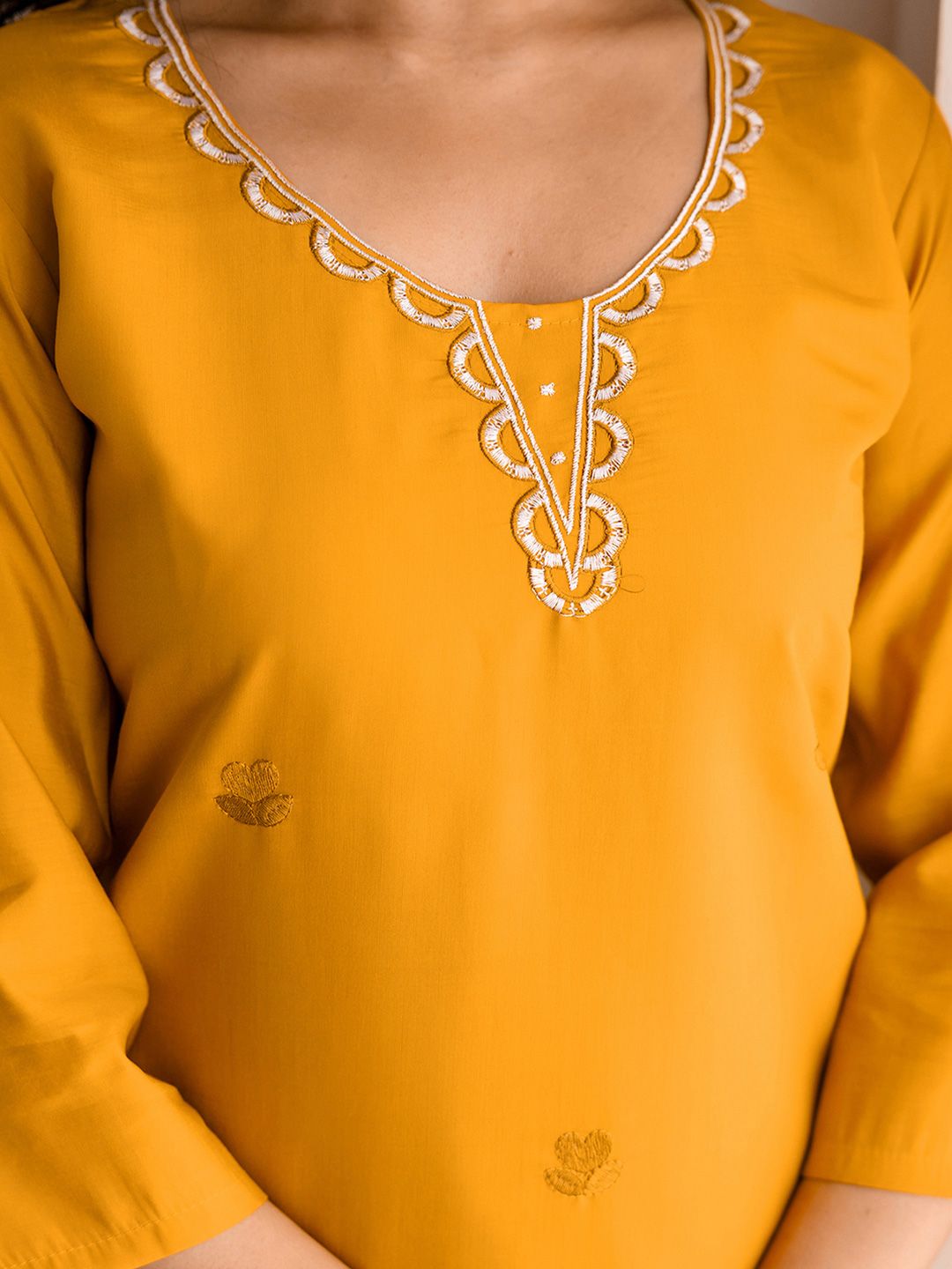Buy this stylish SANISA Women Mustard Embroidered Silk Blend Kurta & Trousers With Dupatta at Marincart Nepal. This product offers great quality and value. Perfect for those looking for the latest trends in fashion. Get yours now at unbeatable prices.