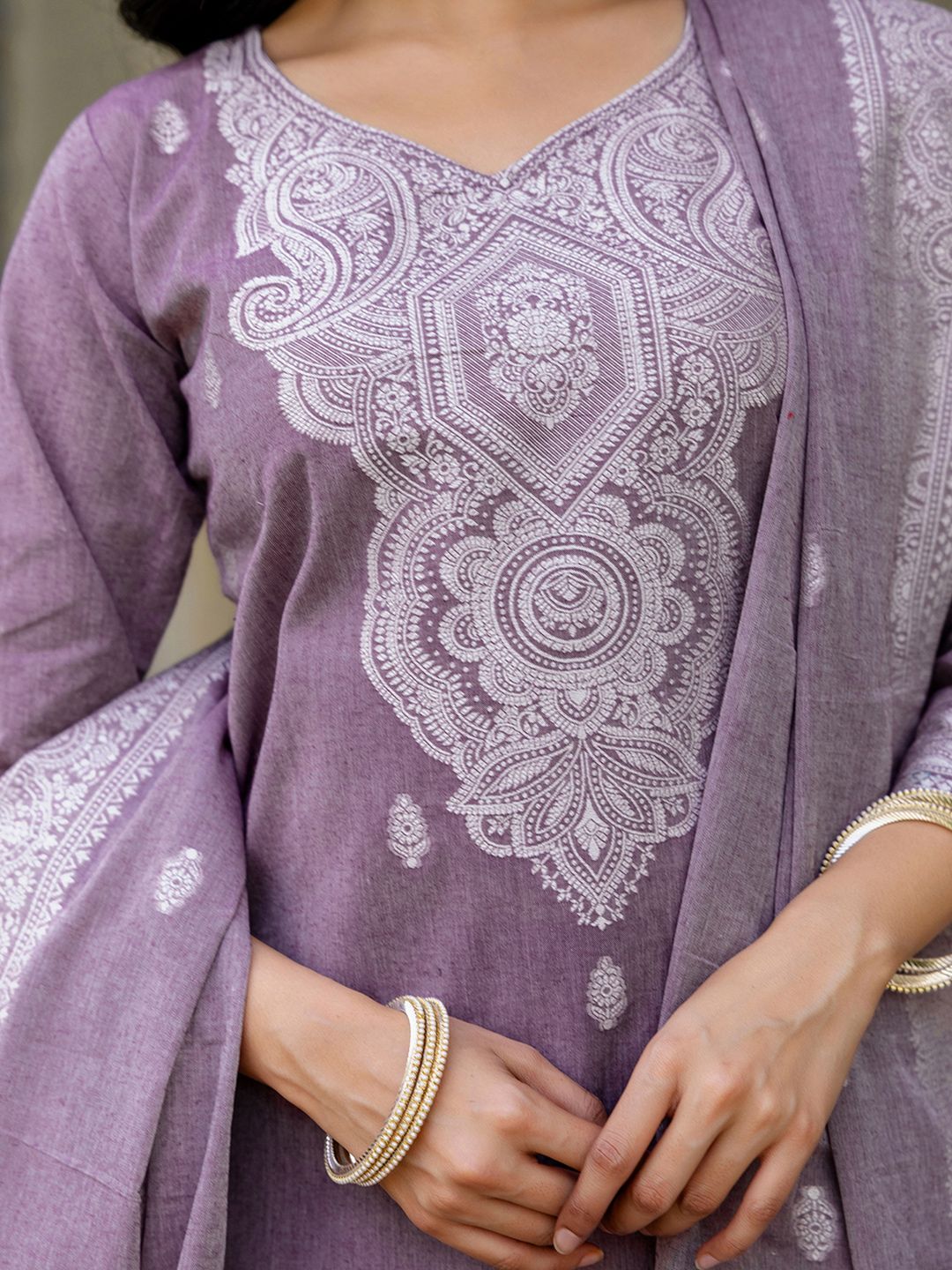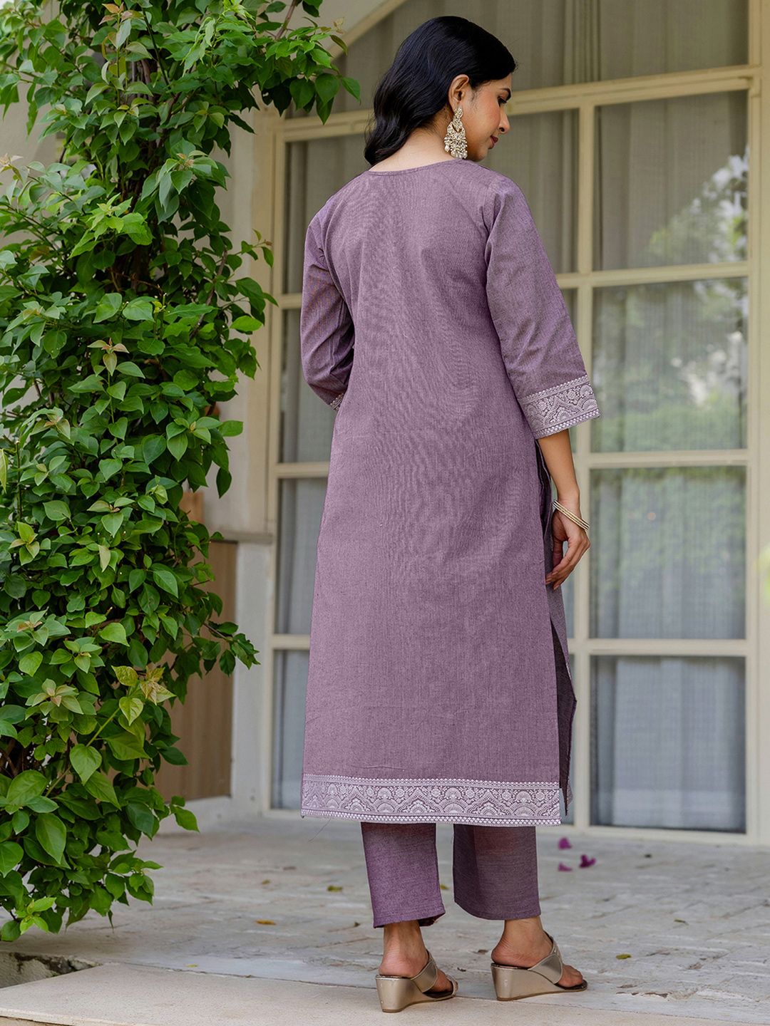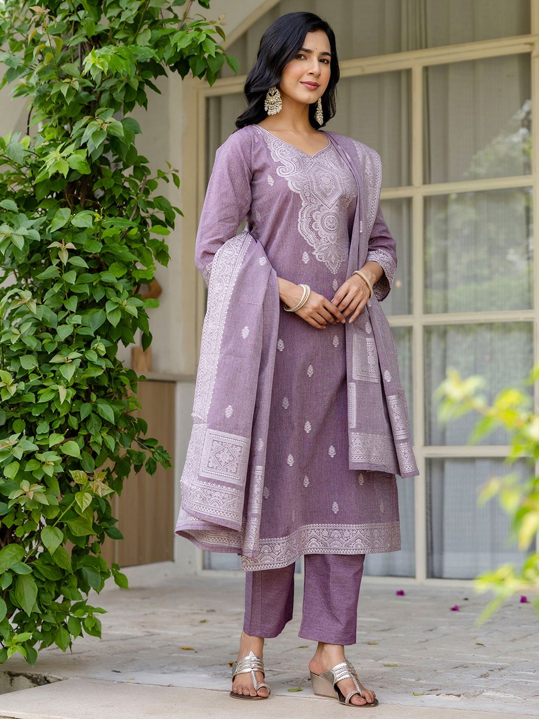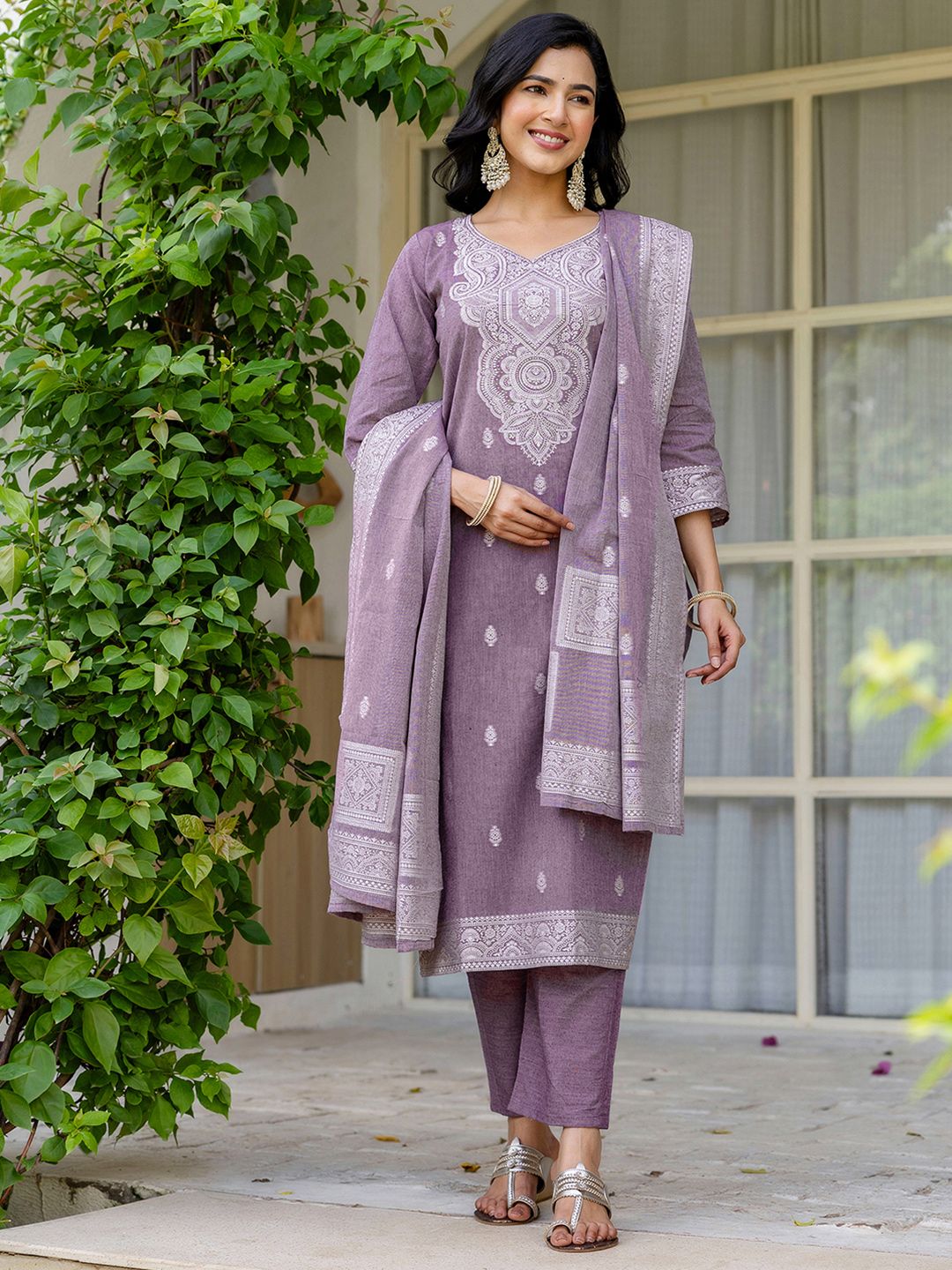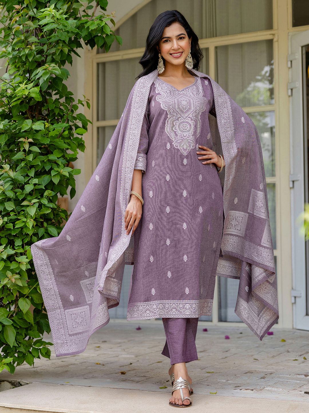 SANISA Women Purple Cotton Blend Kurta Sets