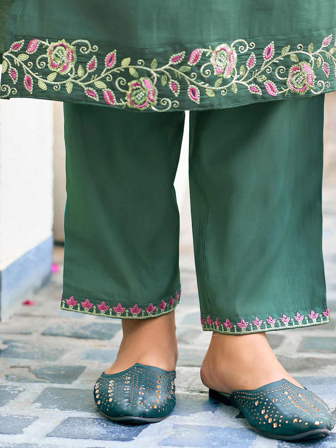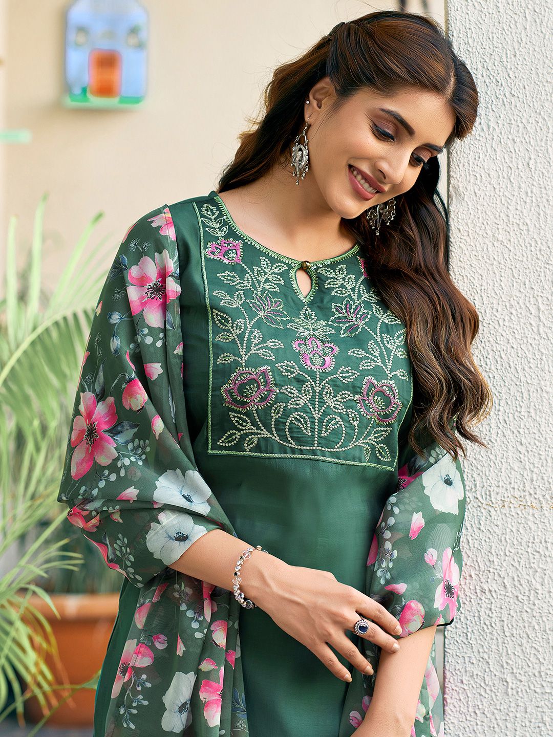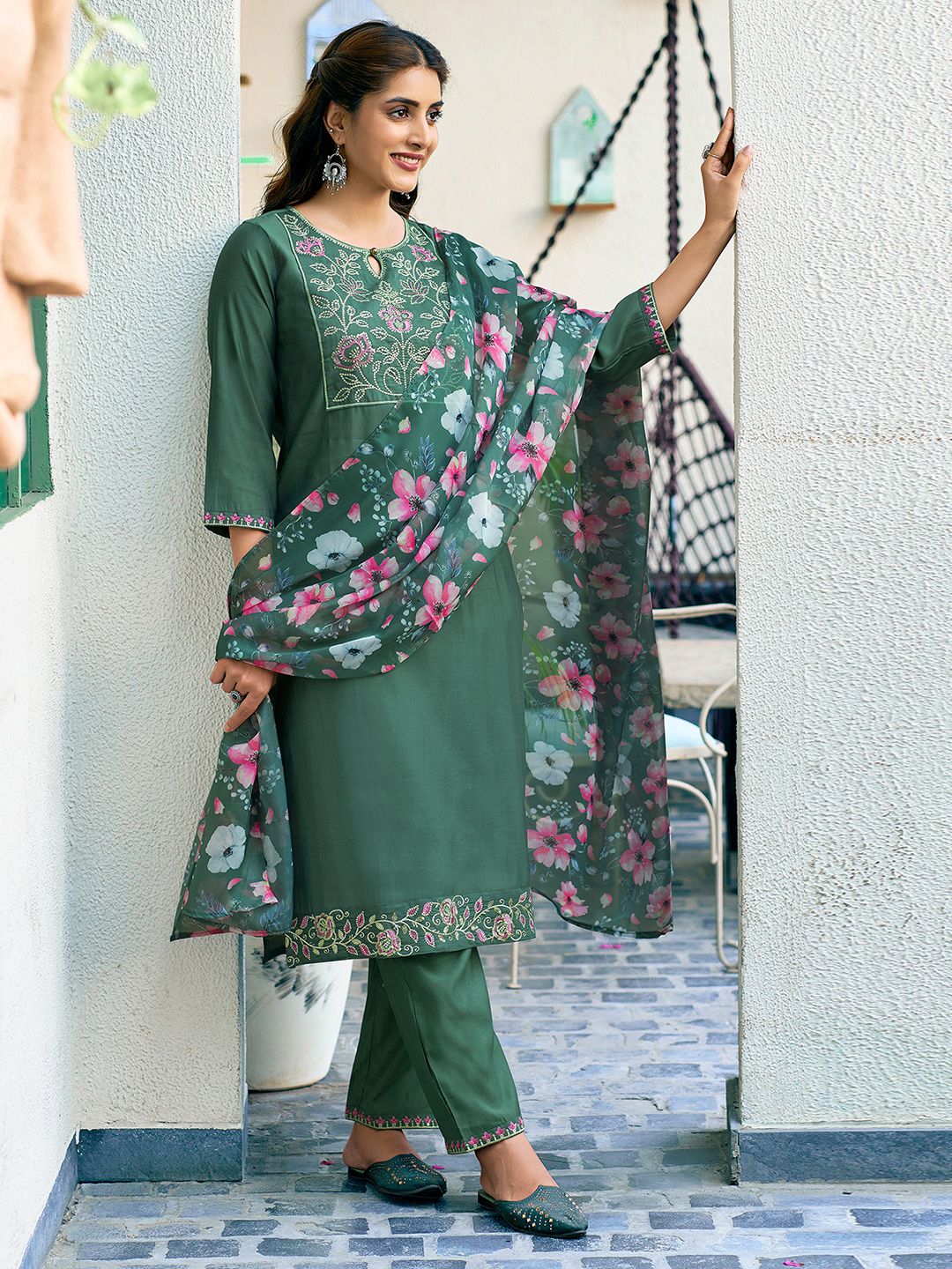 SANISA Women Woven Design Embroidered Kurta with Trousers & Dupatta