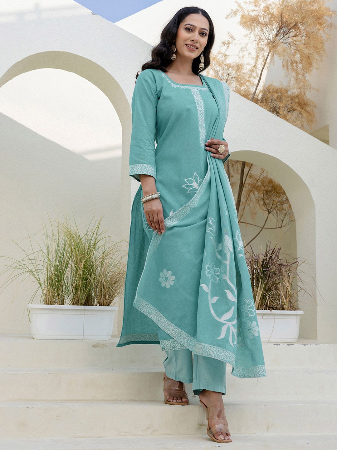 SANISA Women Woven Design Regular Thread Work Kurta with Trousers & With Dupatta