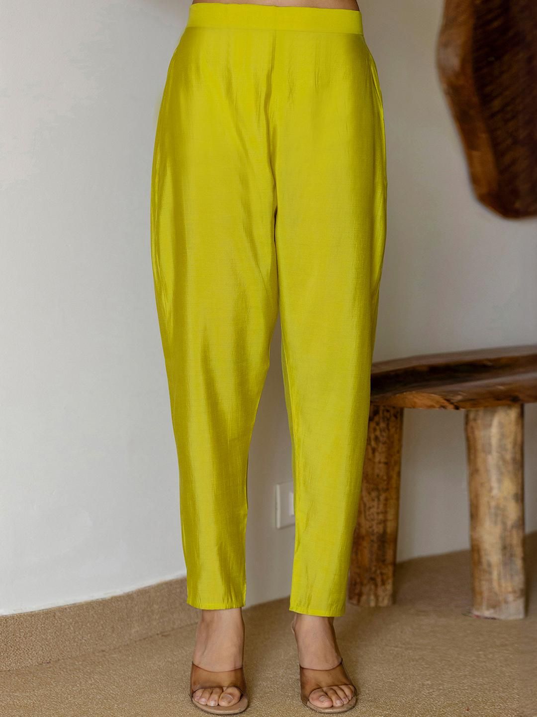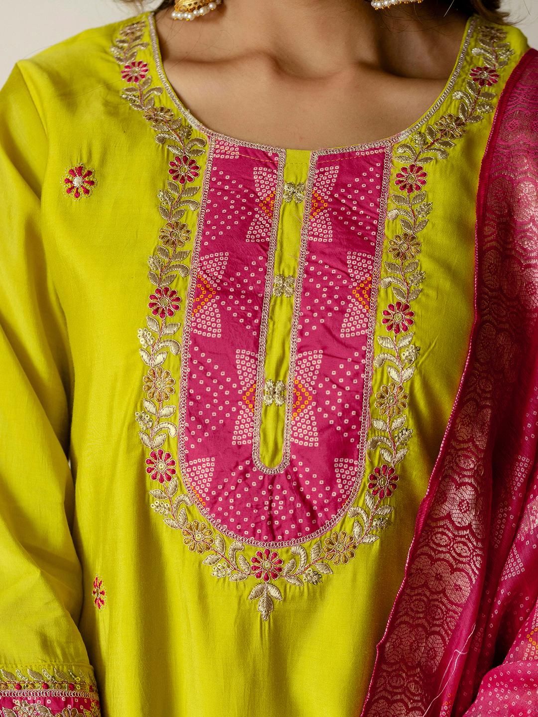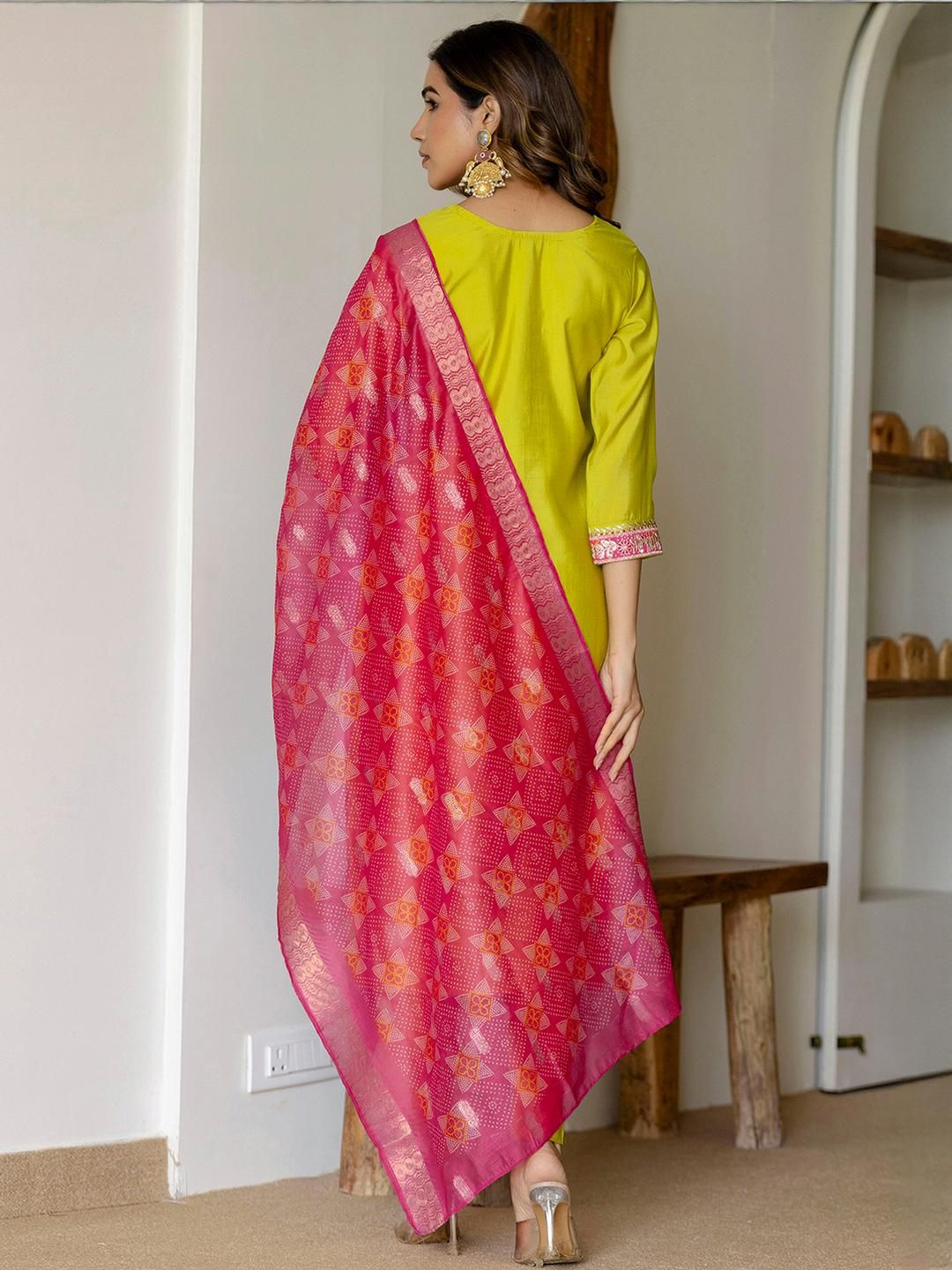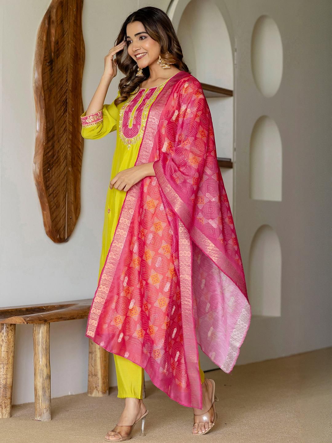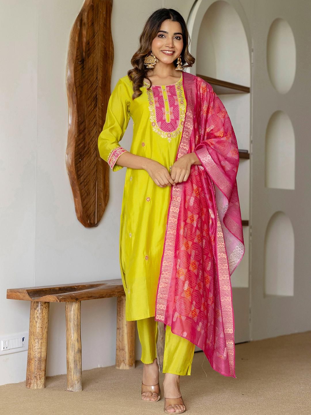 SANISA Women Yellow Silk Blend Embroidered Kurta & Trousers With Dupatta
