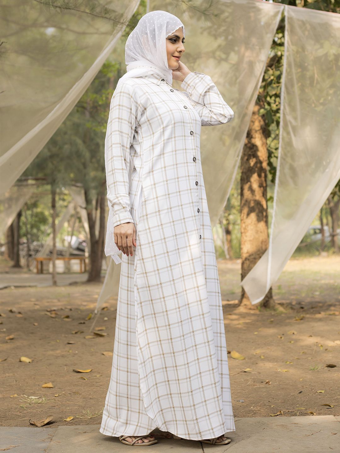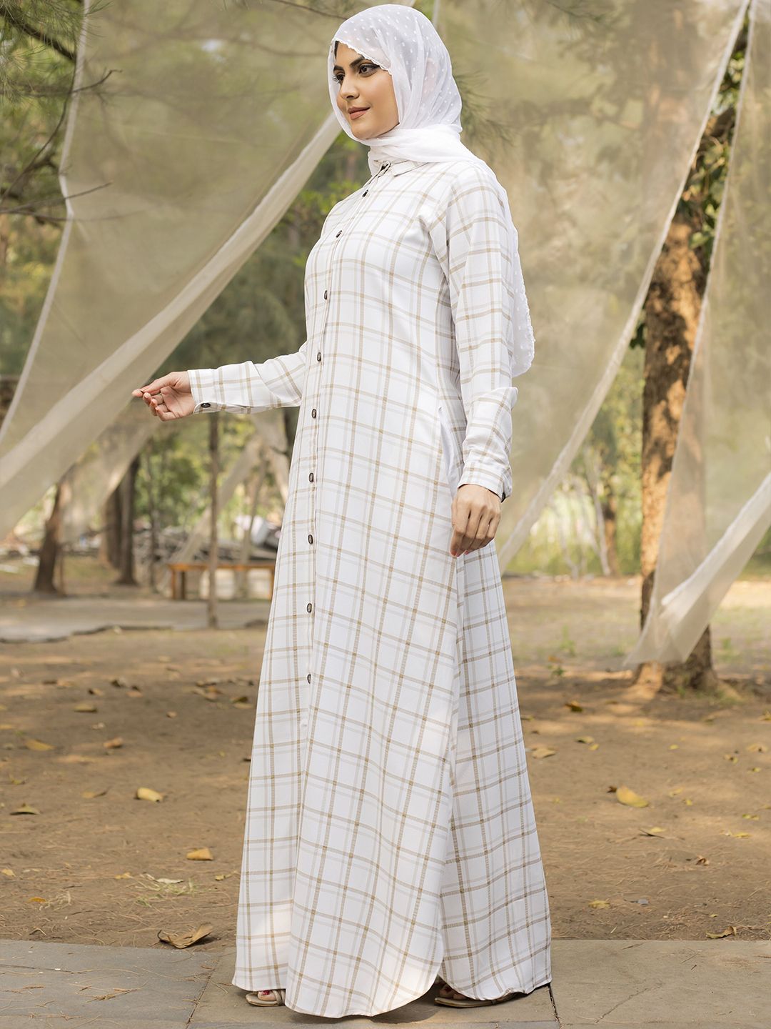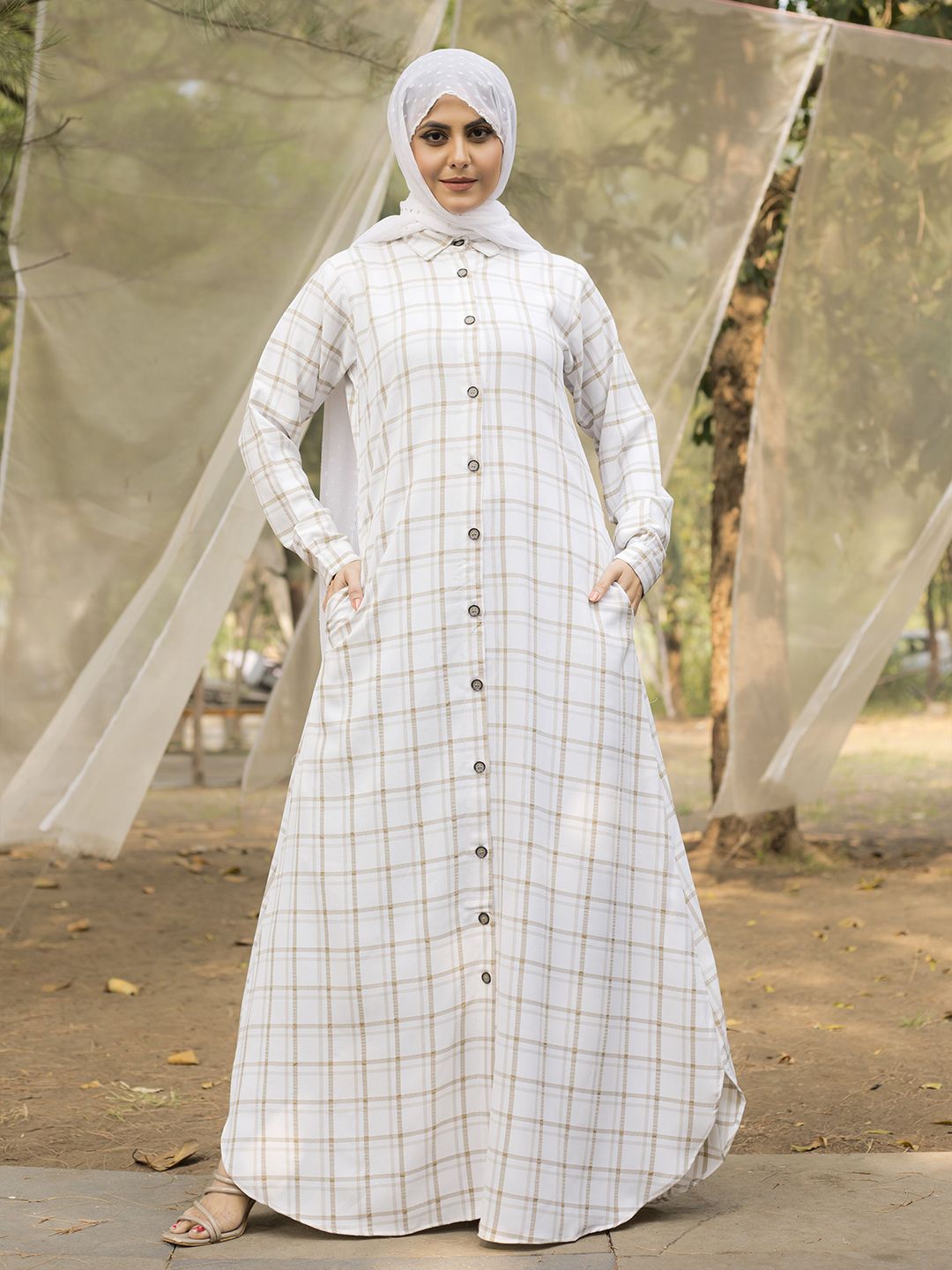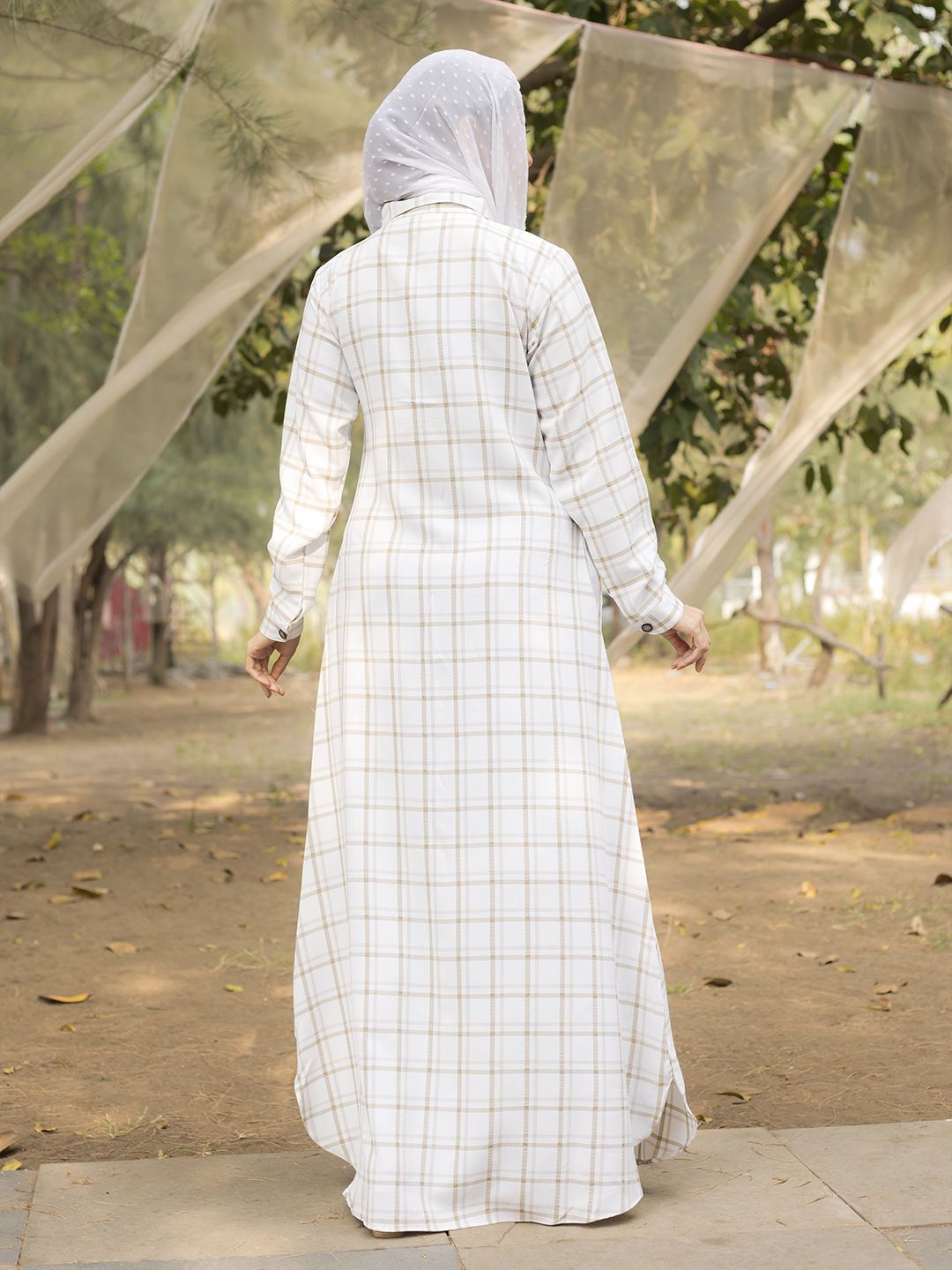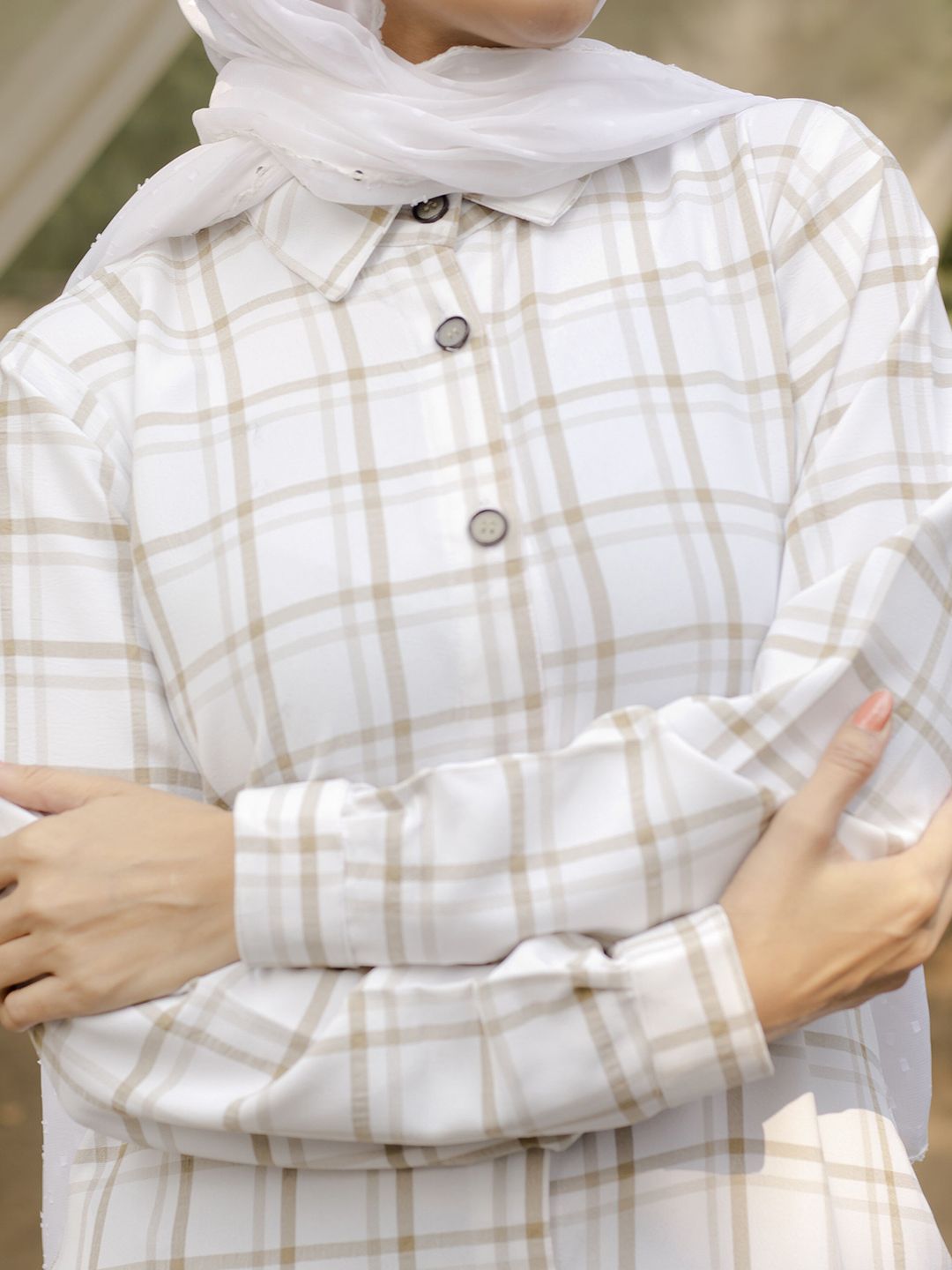 SARINKU Cotton Checked Shirt Abaya Maxi Dress