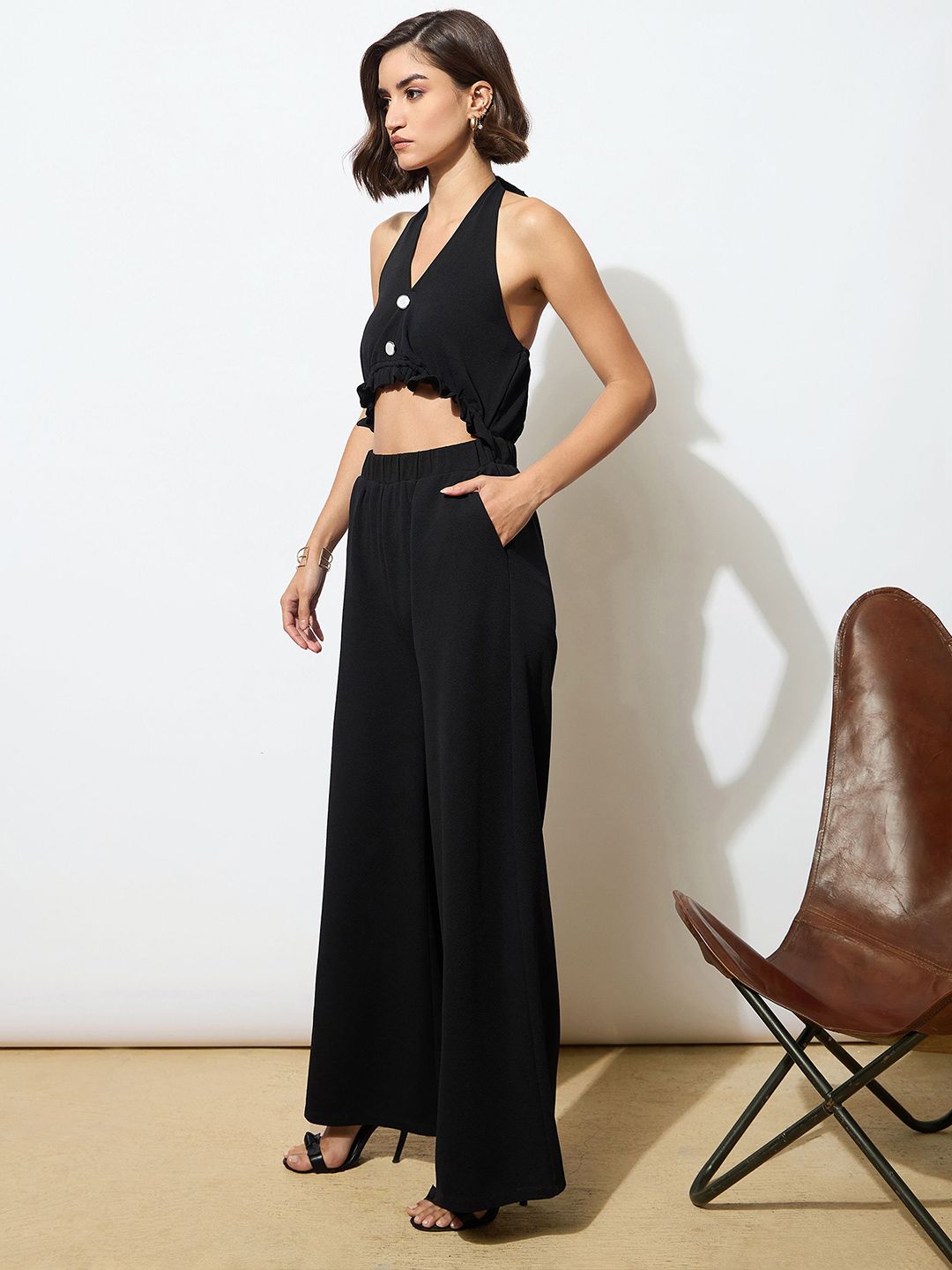 SASSAFRAS Women Halter Neck Cut-Out Jumpsuit