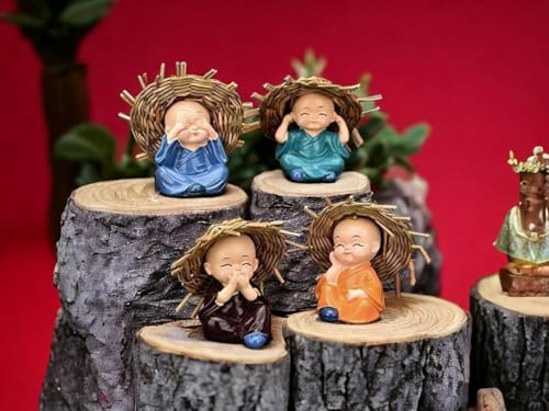 Unique Decor Piece: Set of 4 Baby Hat Monk Buddha Idol Statues for Home Decor and Car Dashboard Decoration. Thoughtful Gifting: These small Monk Figurines make a delightful gifting idea for occasions like Housewarming, Diwali, and more. Dimensions: Each Statue measures approximately 6 cm in height and 4 cm in width. Versatile Display: Perfect for adorning your home, office, car dashboard, or any desired spot. Durable Material: Crafted from high-quality resin for long-lasting use.