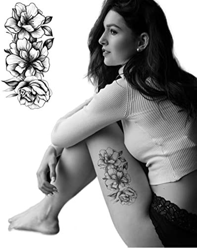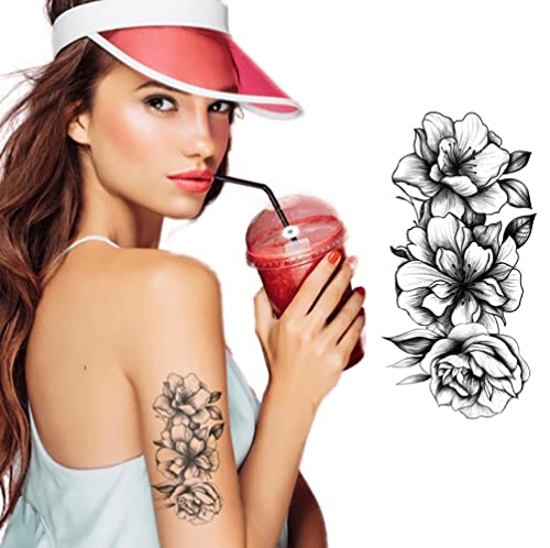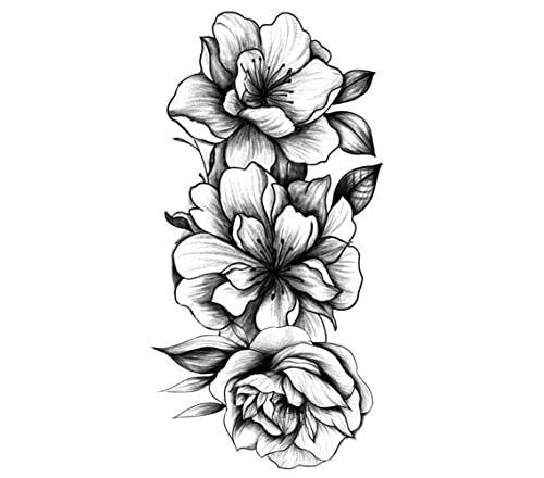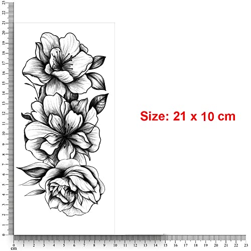 S.A.V.I Temporary Tattoo Stickers for Women, 3 Flowers, Leaves, Black Color Fake Tattoos For Girls, Size -21x10CM