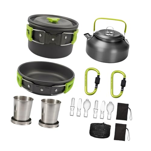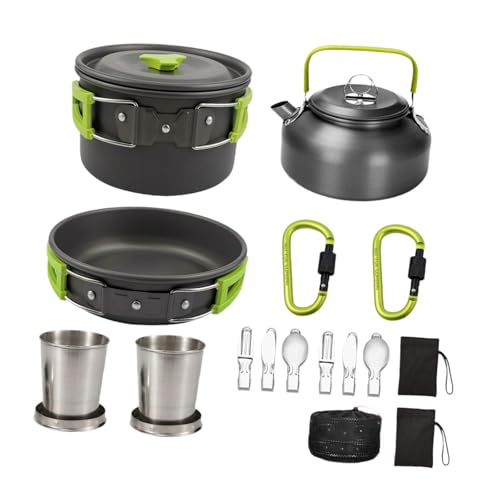 SAZ DEKOR Camping Cookware Set Portable Easy to Clean Frying Pan for BBQ Trekking Home Green
